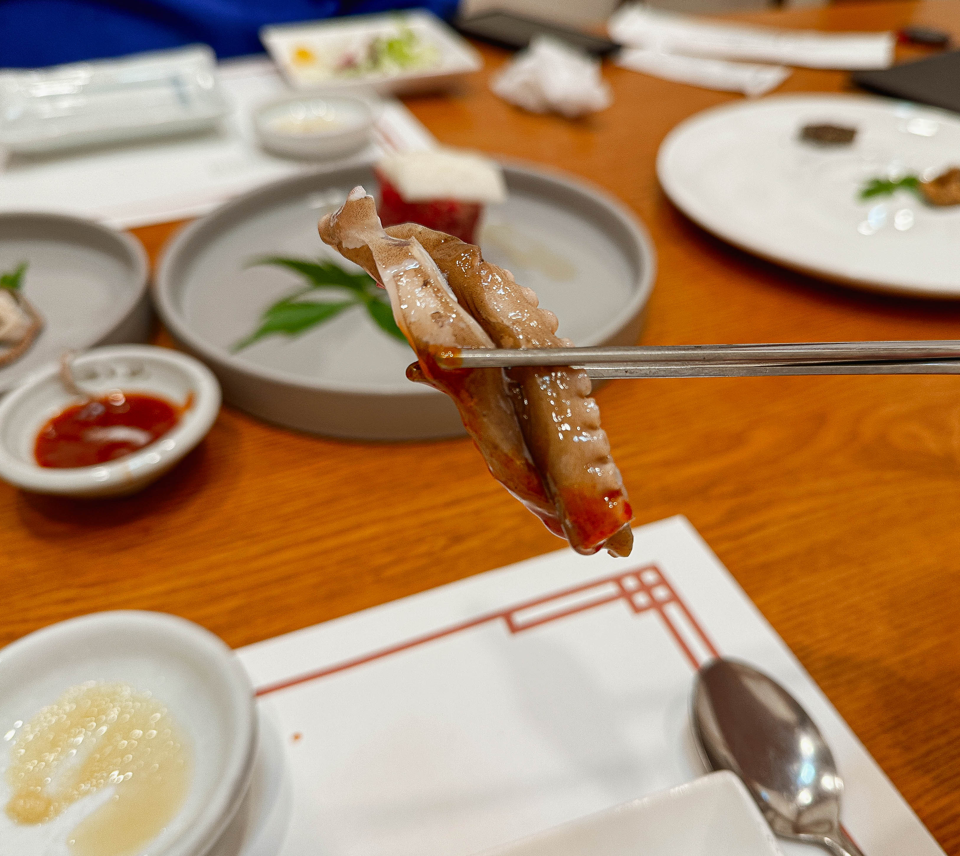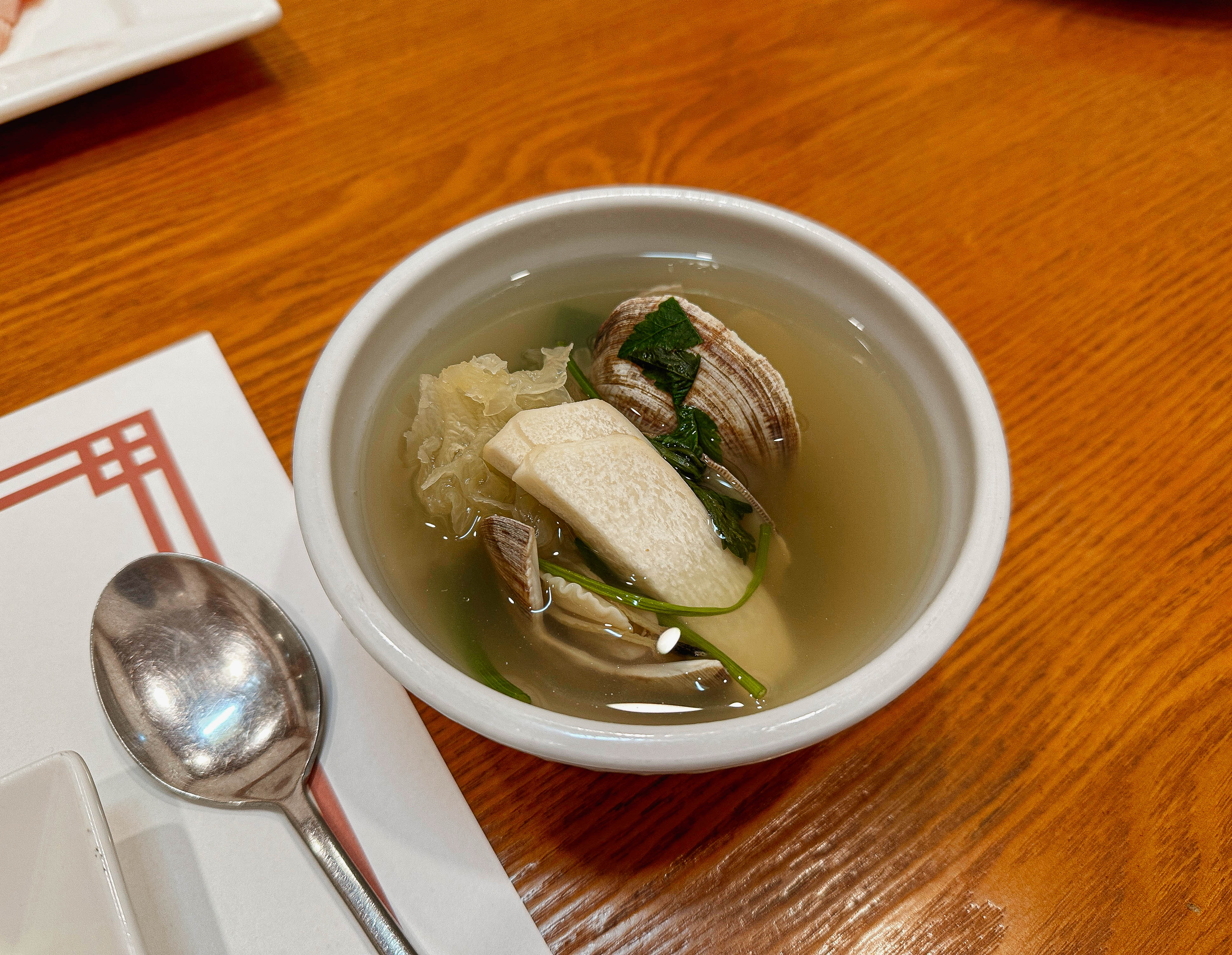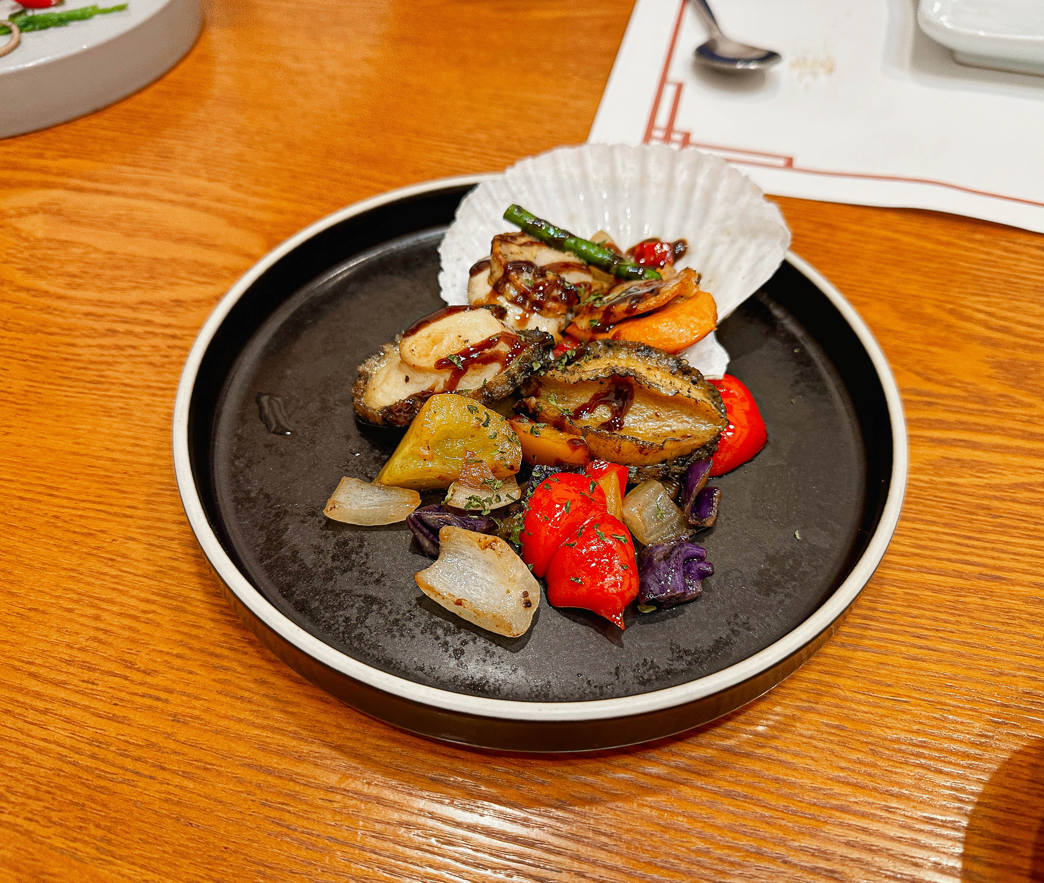 다음 메뉴들은 가리비전복구이, 홍어삼합, 백합탕입니다. 채소들과 함께 구워낸 가리비전복구이는 고소하면서도 부드러웠습니다. 비린맛 1도 없이 맛있었고, 홍어삼합의 경우 수육과 홍어가 갯수에 맞춰 나왔는데, 갓김치도 너무 맛있었고 톡쏘는 홍어의 맛과 수육과 잘 어울려서 좋았습니다. 같이 내어주신 백합탕은 약간 칼칼한 맛이었는데, 백합조개로 국물을 내어 시원하면서도 감칠맛이 너무 좋았습니다.