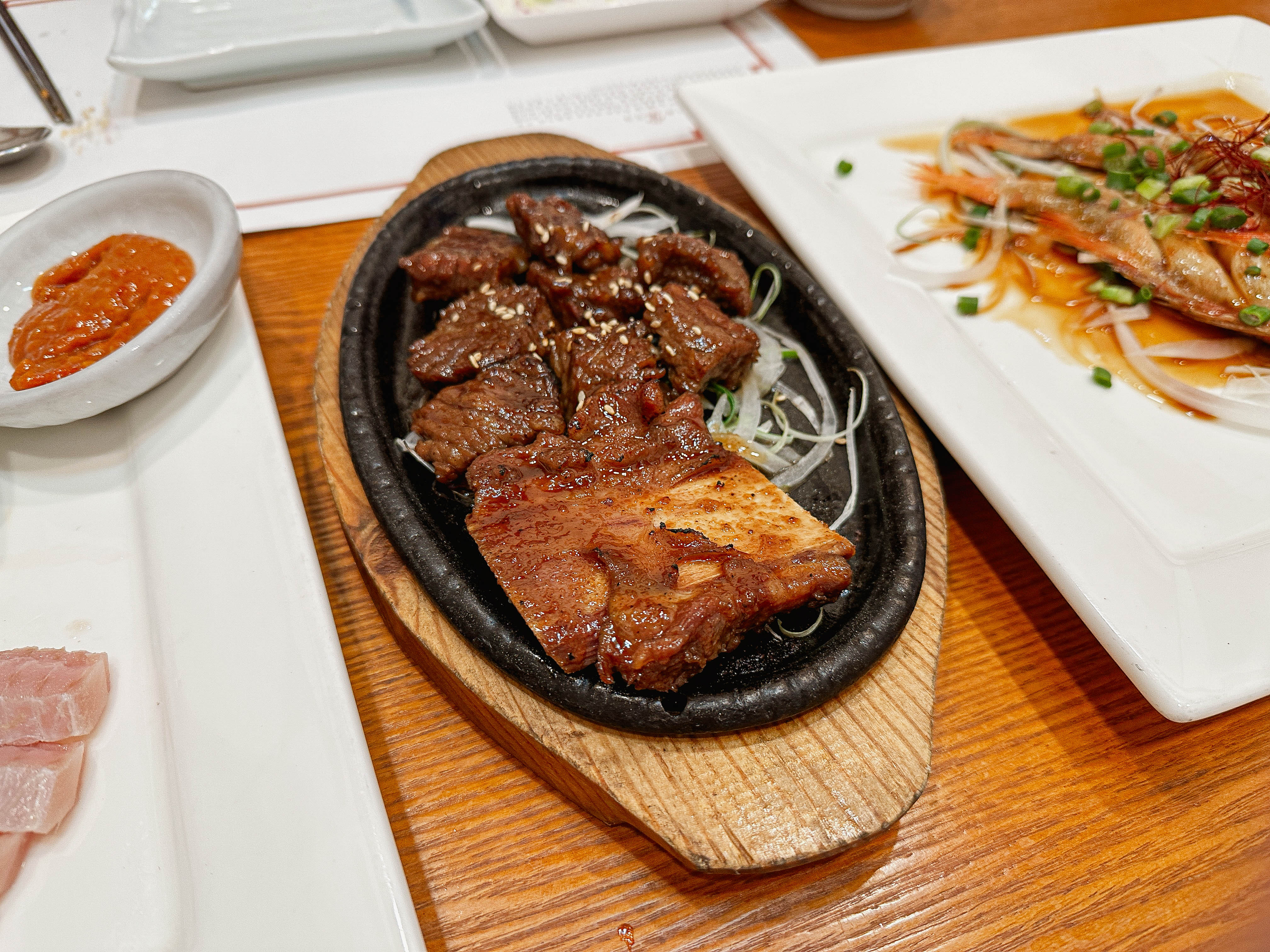갈비구이, 생선찜, 장어구이도 나왔습니다. 이쯤되면 배가 어느정도 차기 시작하는데, 갈비구이와 생선찜, 장어구이는 밥반찬으로 먹어도 괜찮아서 직원분에게 식사를 내어달라고 부탁드렸습니다.
