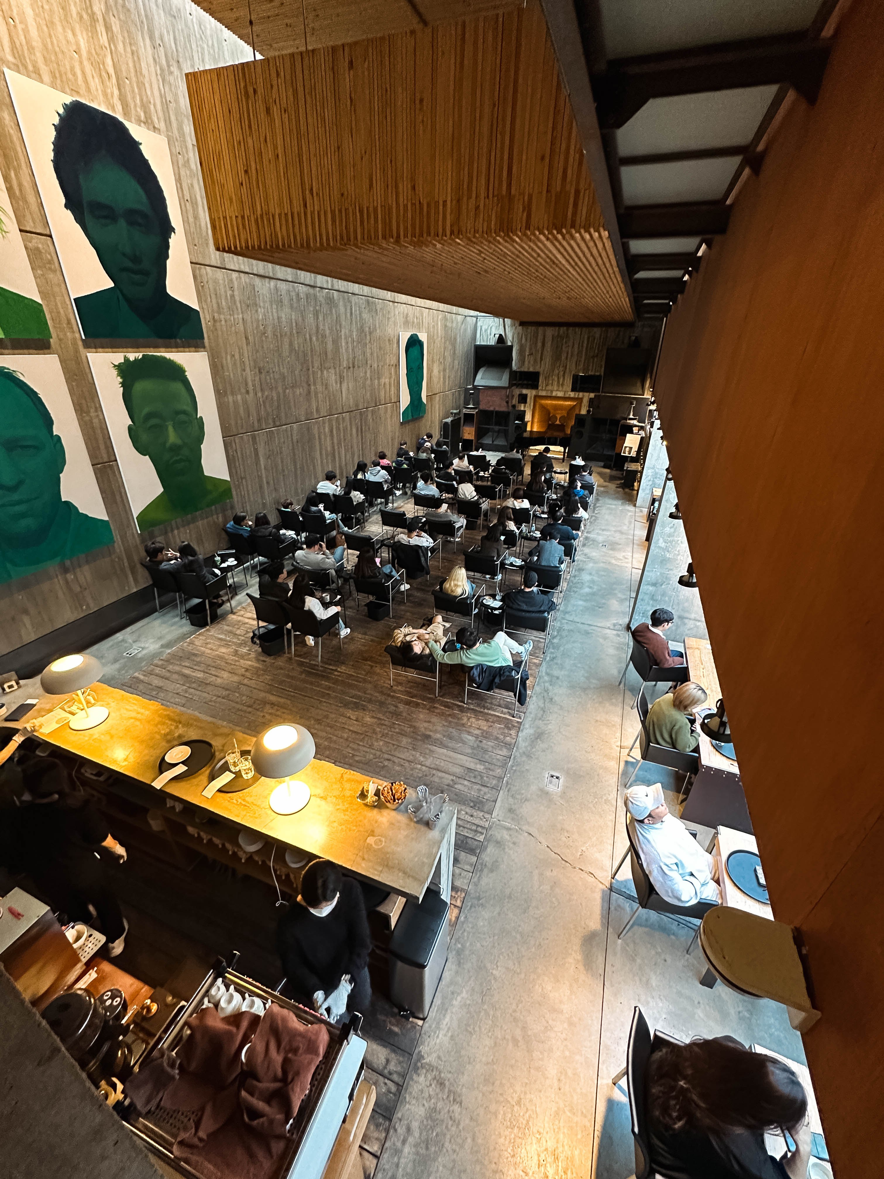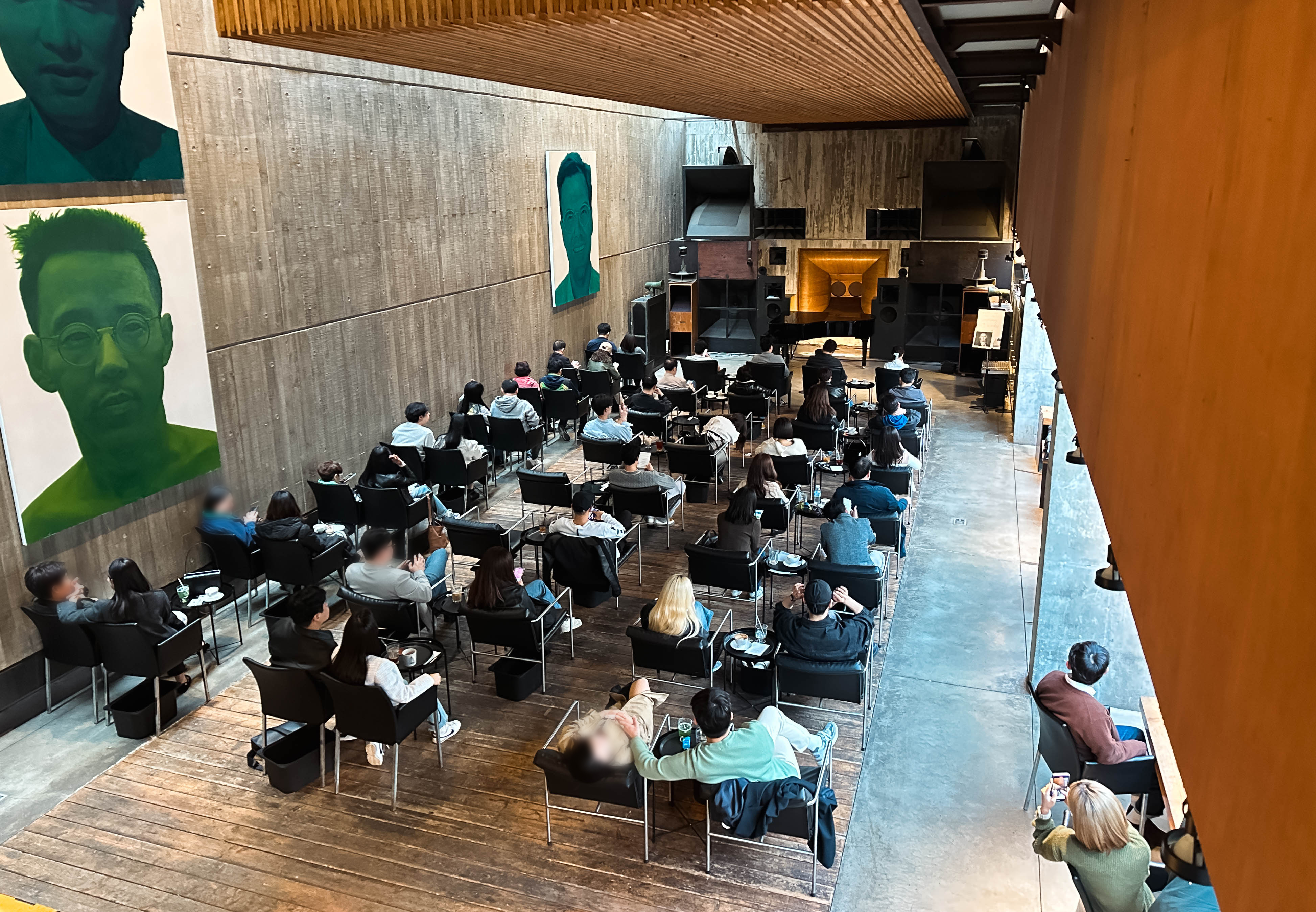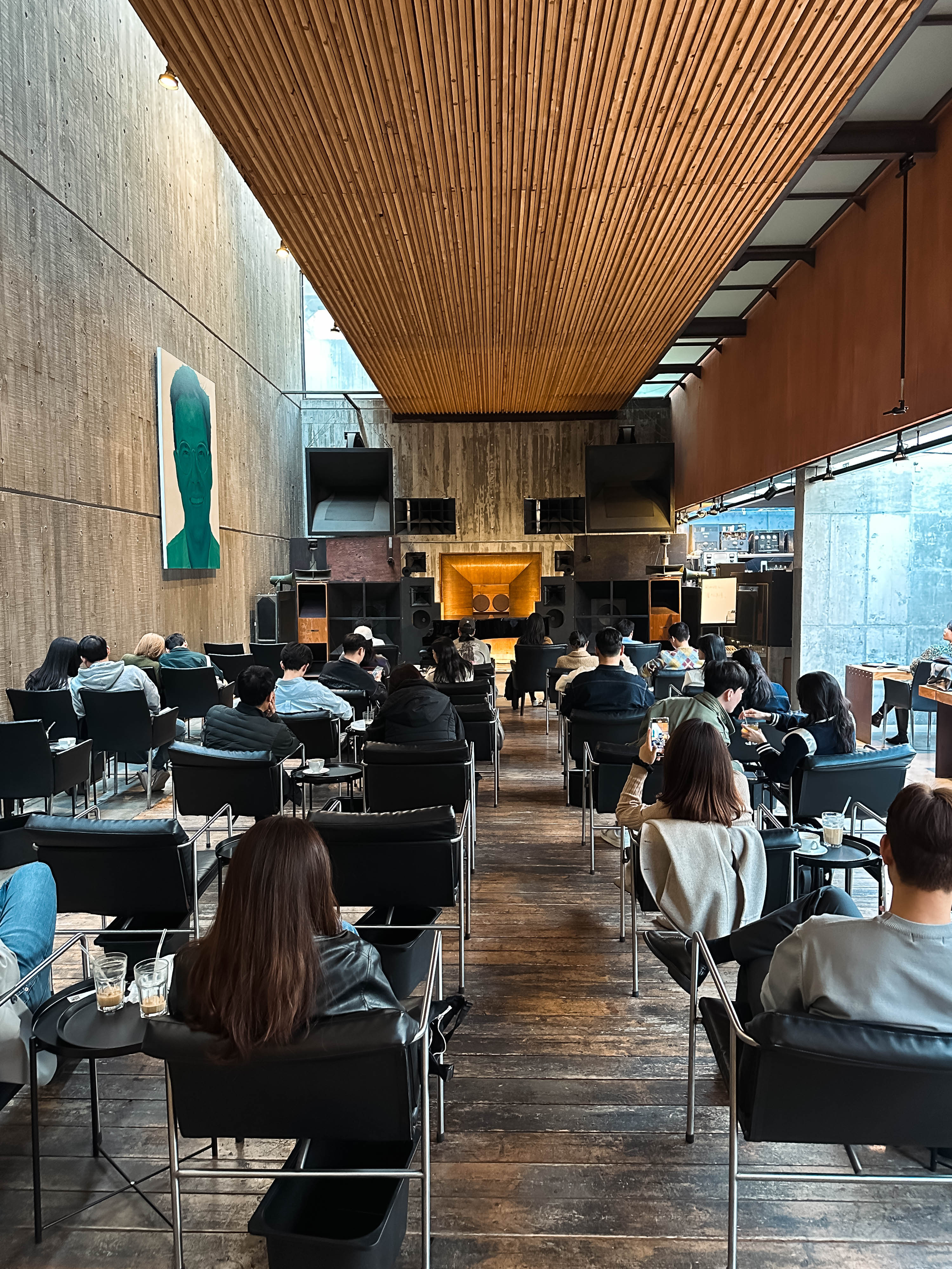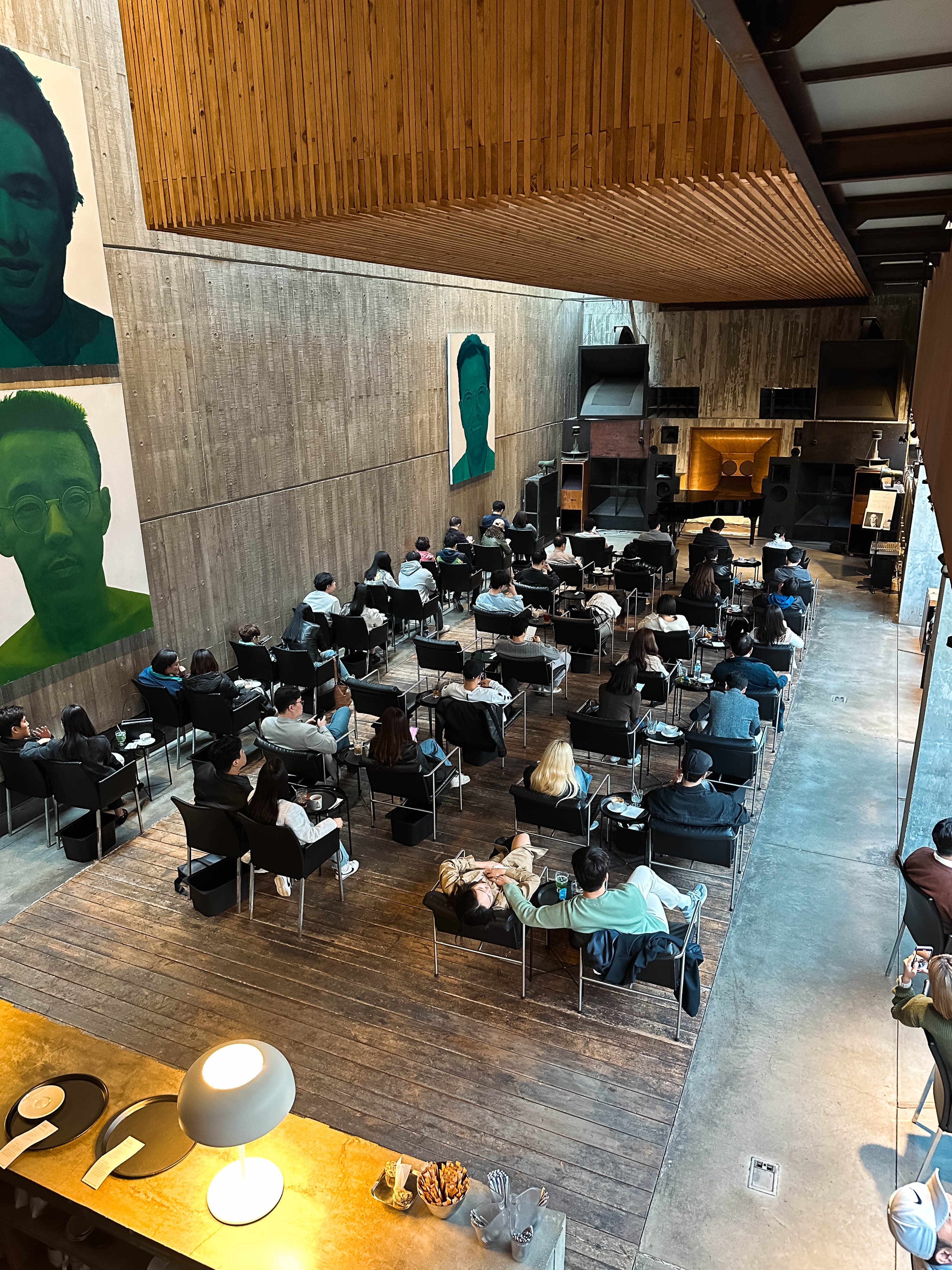 확실히 큰 공간에서 웅장한 스피커를 통해 듣는 것은 집에서 듣는 하이파이와는 또 다른 매력을 주었고, 공간을 가득 채우는 소리는 괜히 마음이 웅장해지는 느낌이 들더라고요. 1인 12,000원에 음료와 더불어 음악감상까지 할 수 있다는 점은 꽤 가격도 나쁘지 않고 좋았던 것 같습니다.