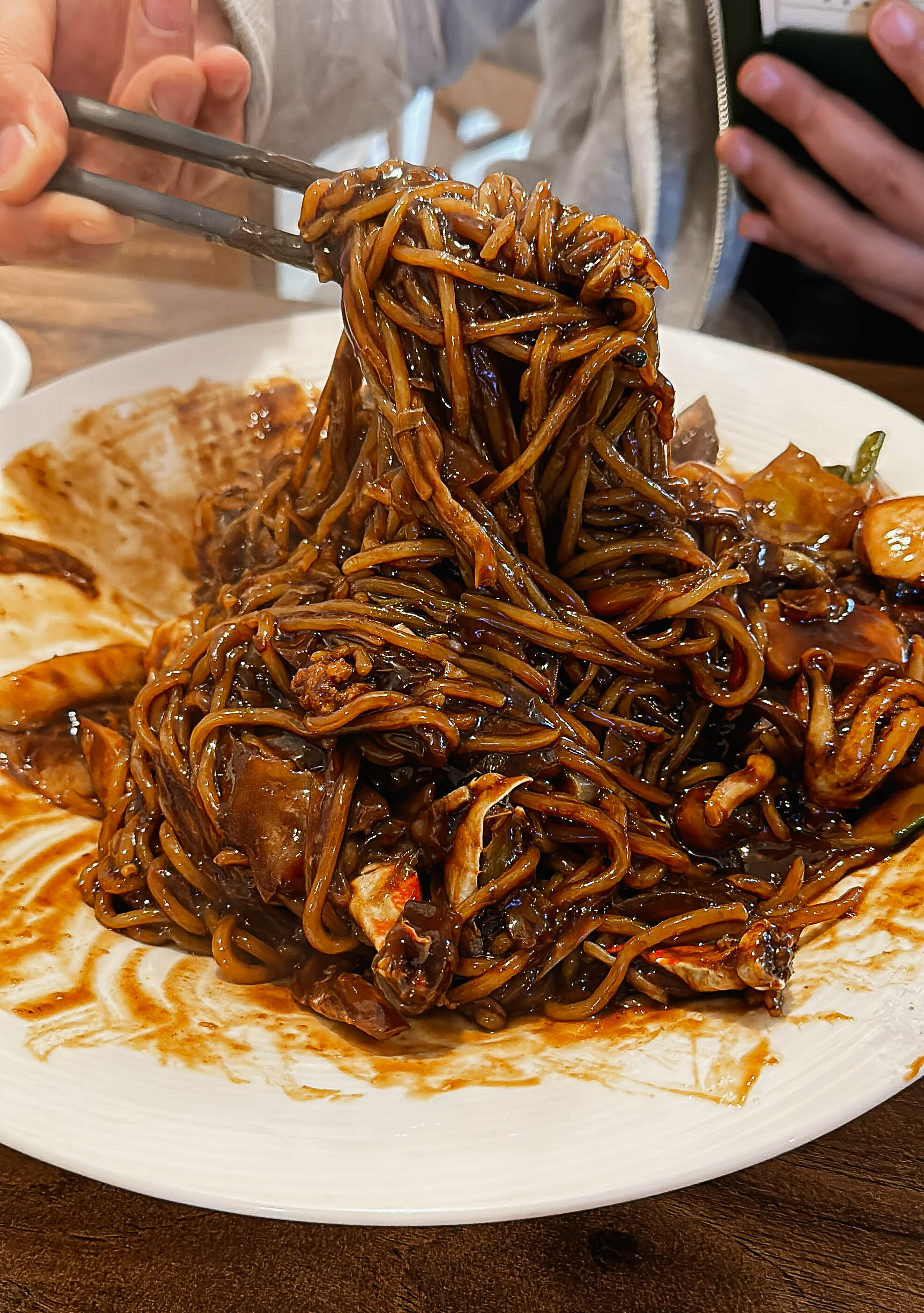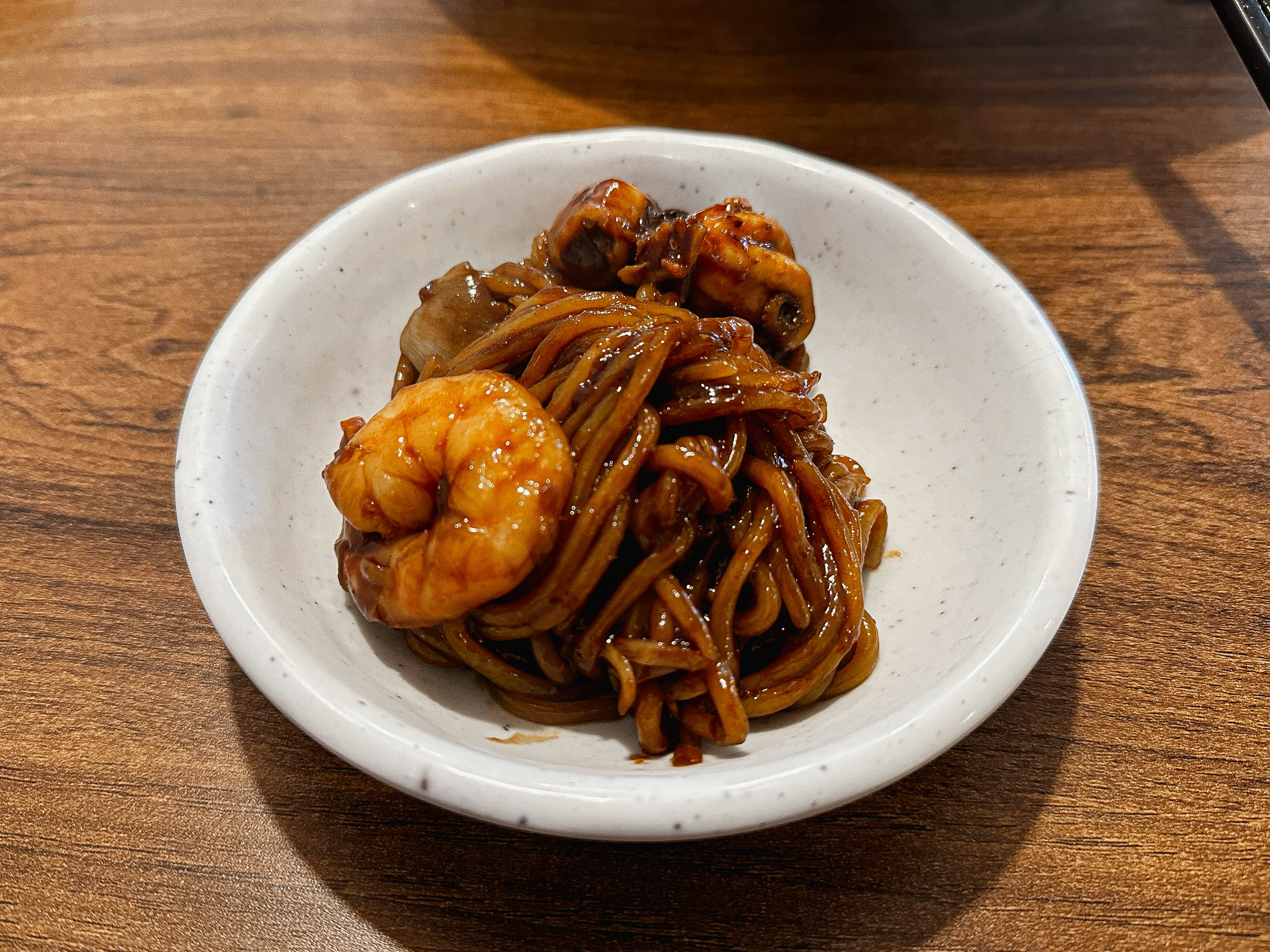왜냐하면 사장님께서는 솜사탕의 설탕을 염두에 두고 메뉴를 만들어 짜장면 자체의 단맛을 줄여, 섞어 먹을 경우 솜사탕의 단맛과 짜장면의 짠맛이 섞여 조화로울 수 있게 하였다고 합니다. 그래도 솜사탕의 설탕이 많이 들어가서 그런지 매콤한 맛의 짜장면이었지만 살짝 단 맛이 강했습니다. 그밖에 해물도 넉넉히 들어갔고, 맛은 괜찮았습니다.