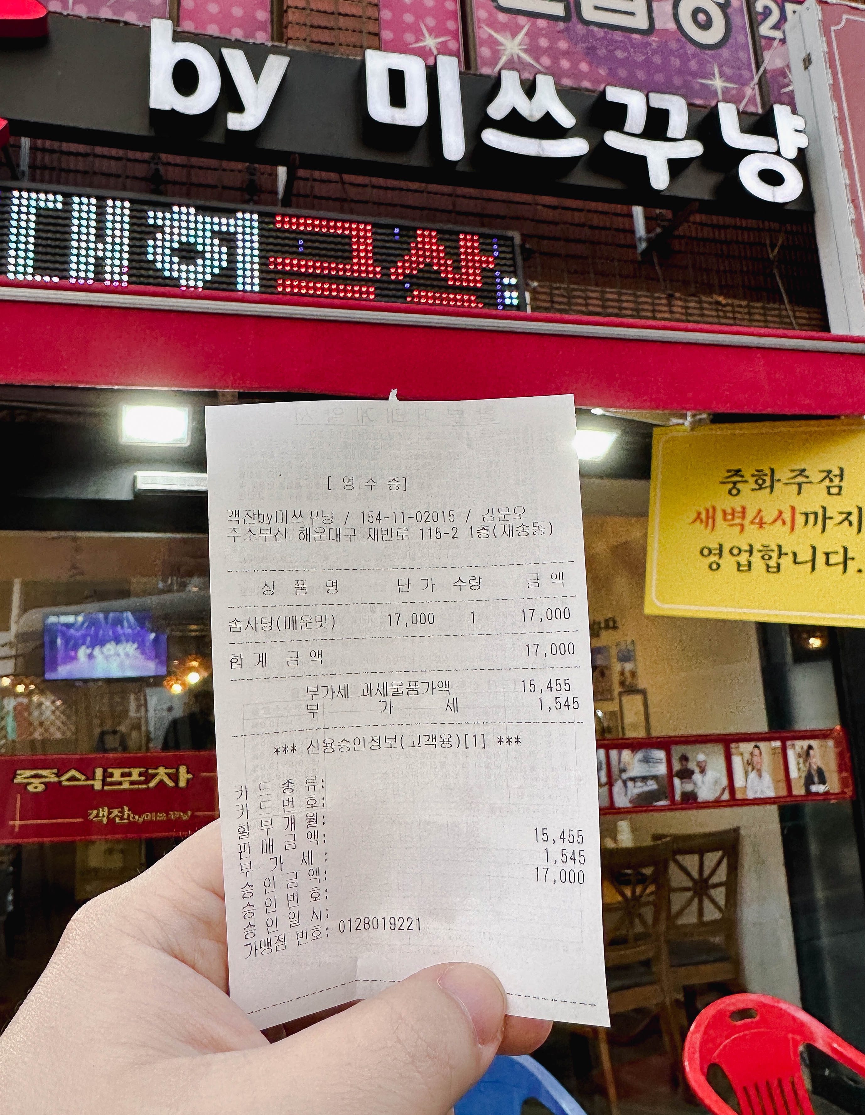 미쓰꾸냥의 위치는 앞서 언급한 것처럼 부산 해운대구 재송동 1059-18, 1층에 위치해 있습니다. 지도에는 2층으로 표기가 되어있던데, 1층이라고 보는 게 맞을 것 같습니다. 영업시간은 매일 17:00~03:00 까지였습니다. 인스타그램 참조(링크).