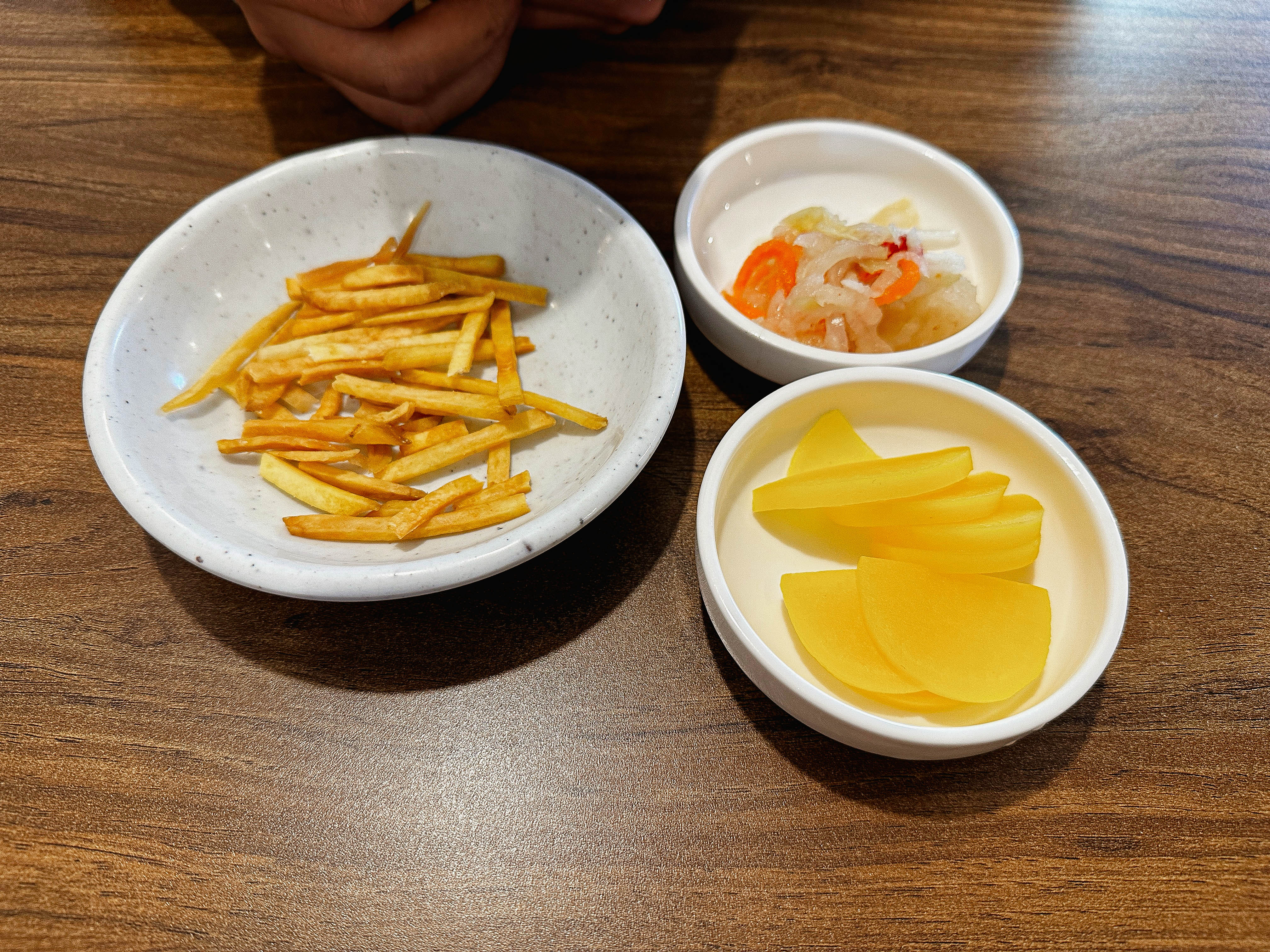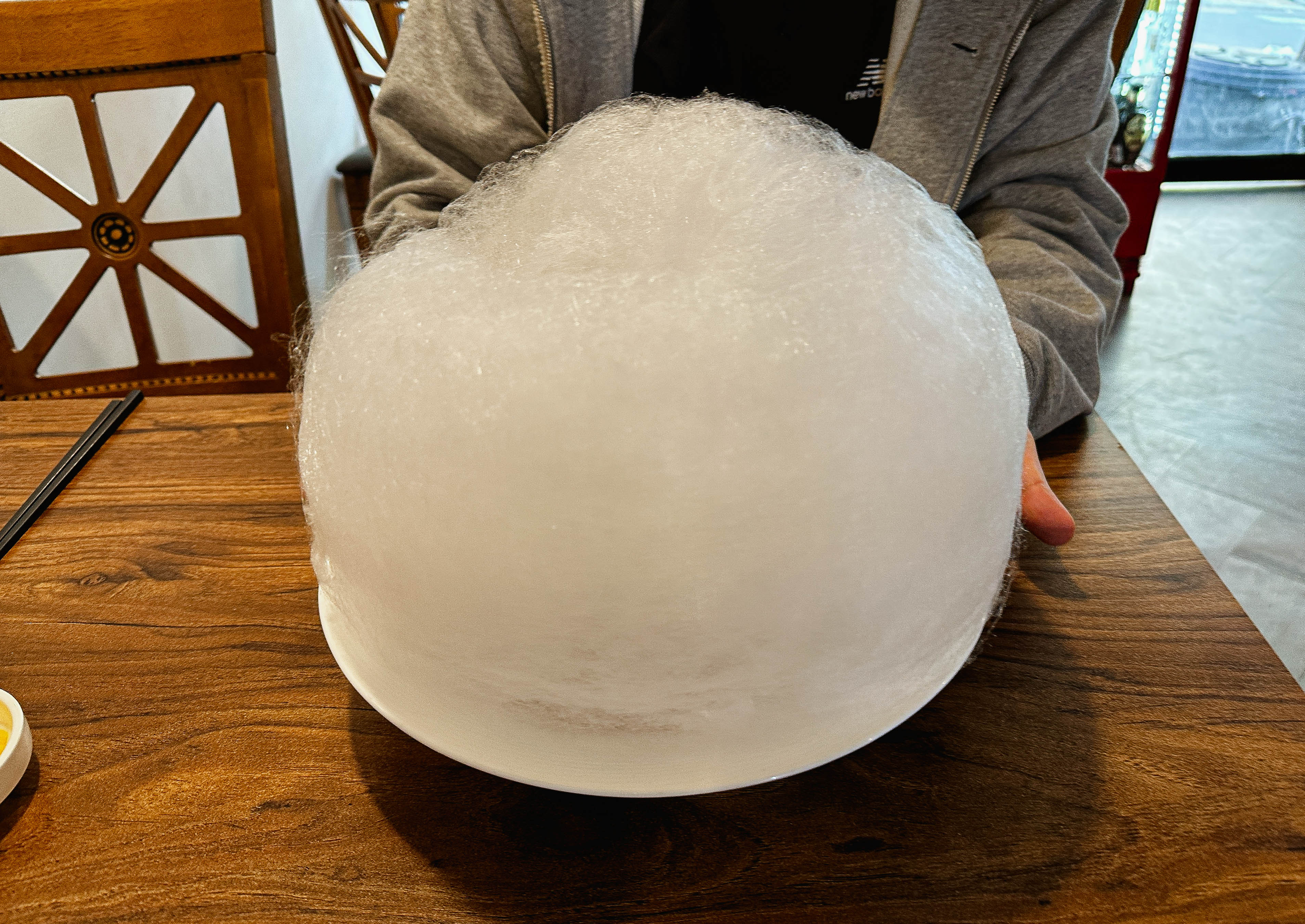 먼저, 고구마과자와 단무지 등이 반찬으로 나왔습니다. 저랑 상남자1(채널)은 솜사탕 만드는 과정도 함께 촬영하고 싶어서 사장님께 요청드리니, 직접 눈앞에서 솜사탕 만드는 과정을 보여주셨습니다. 매콤한 해물쟁반짜장면 위에 솜사탕을 얹어 짜장면을 만들고 계셨고, 재미있는 점은 솜사탕을 따로 먹어도 되지만 짜장면과 섞어서 먹으라는 사장님의 조언이었습니다.