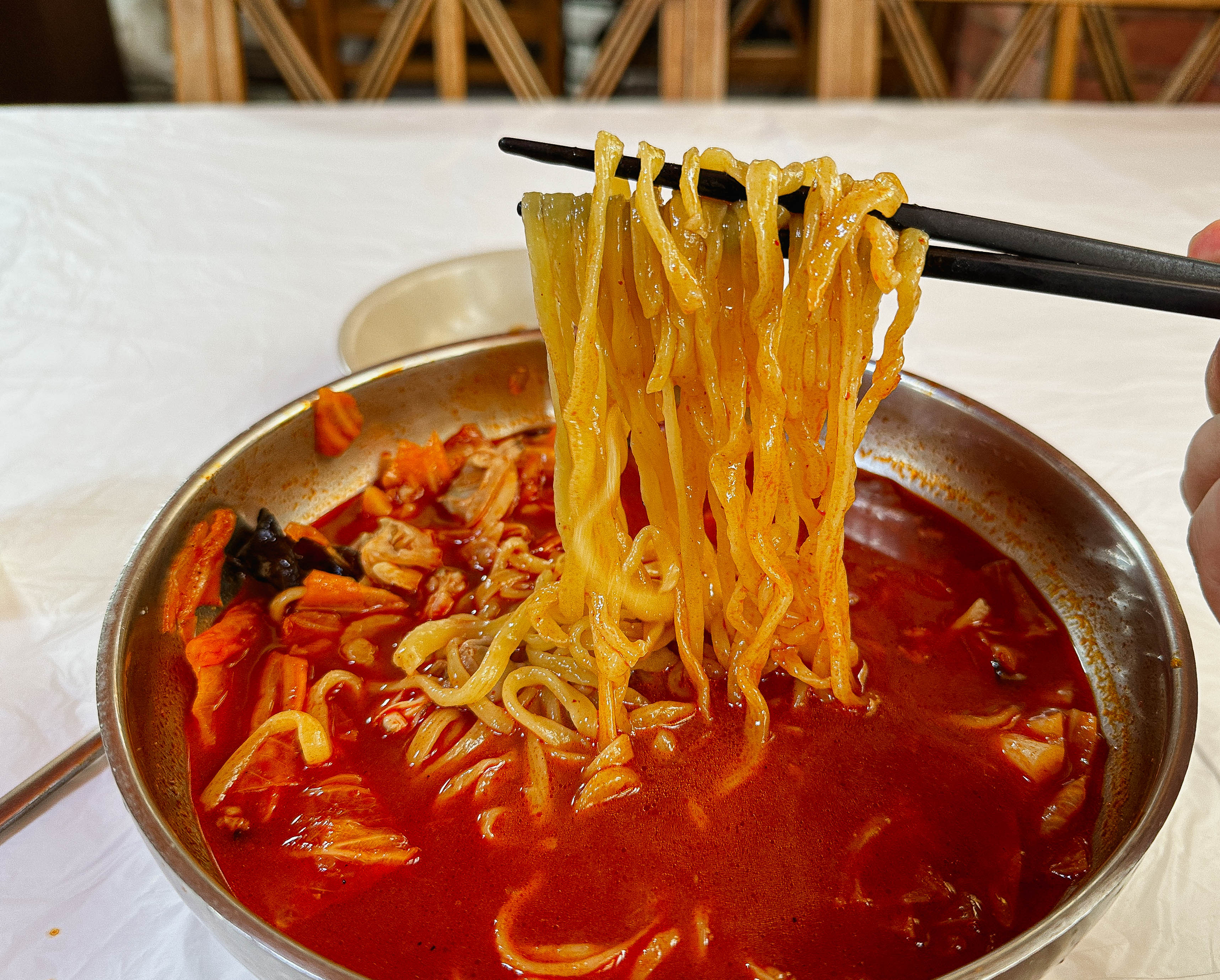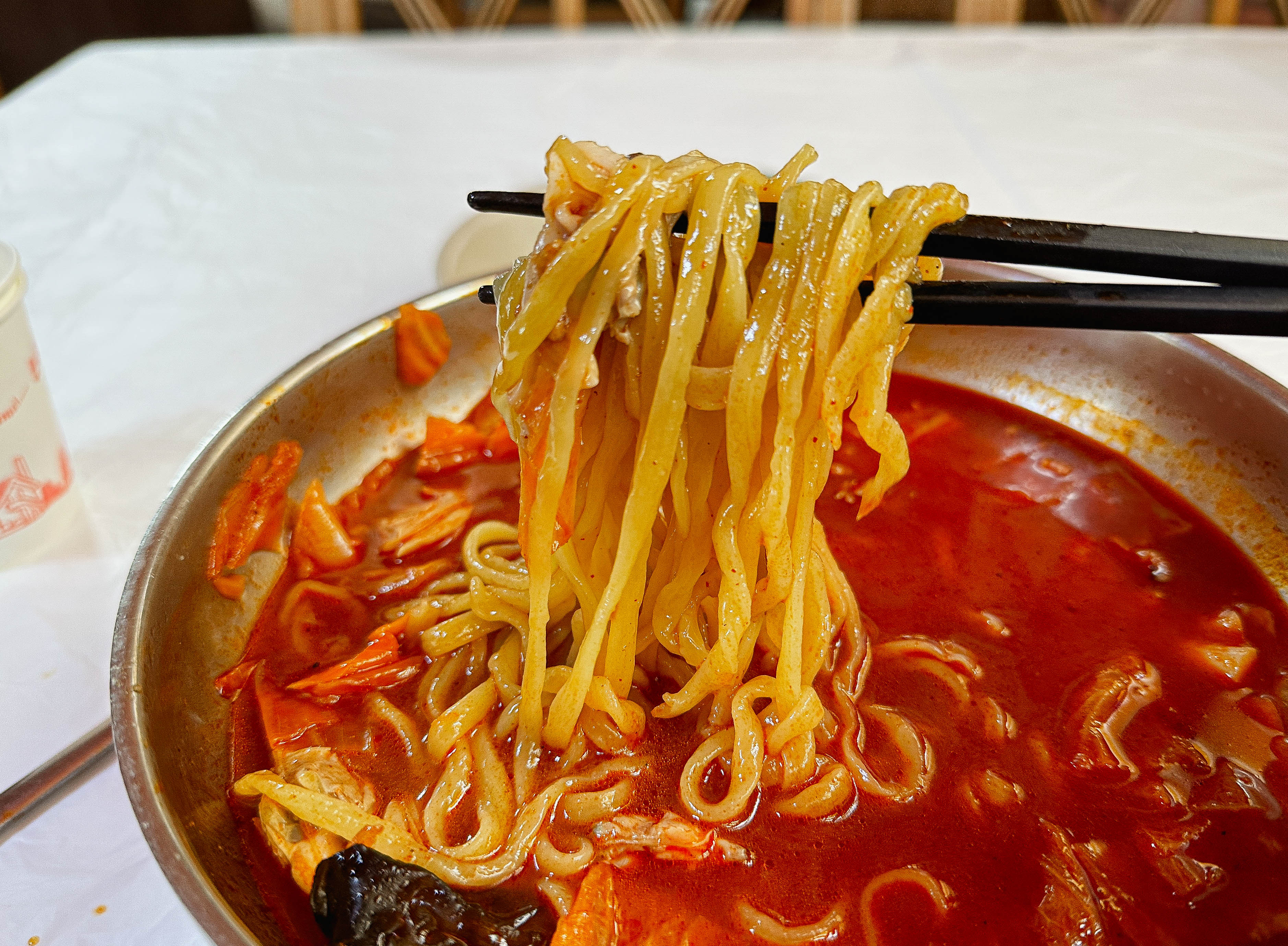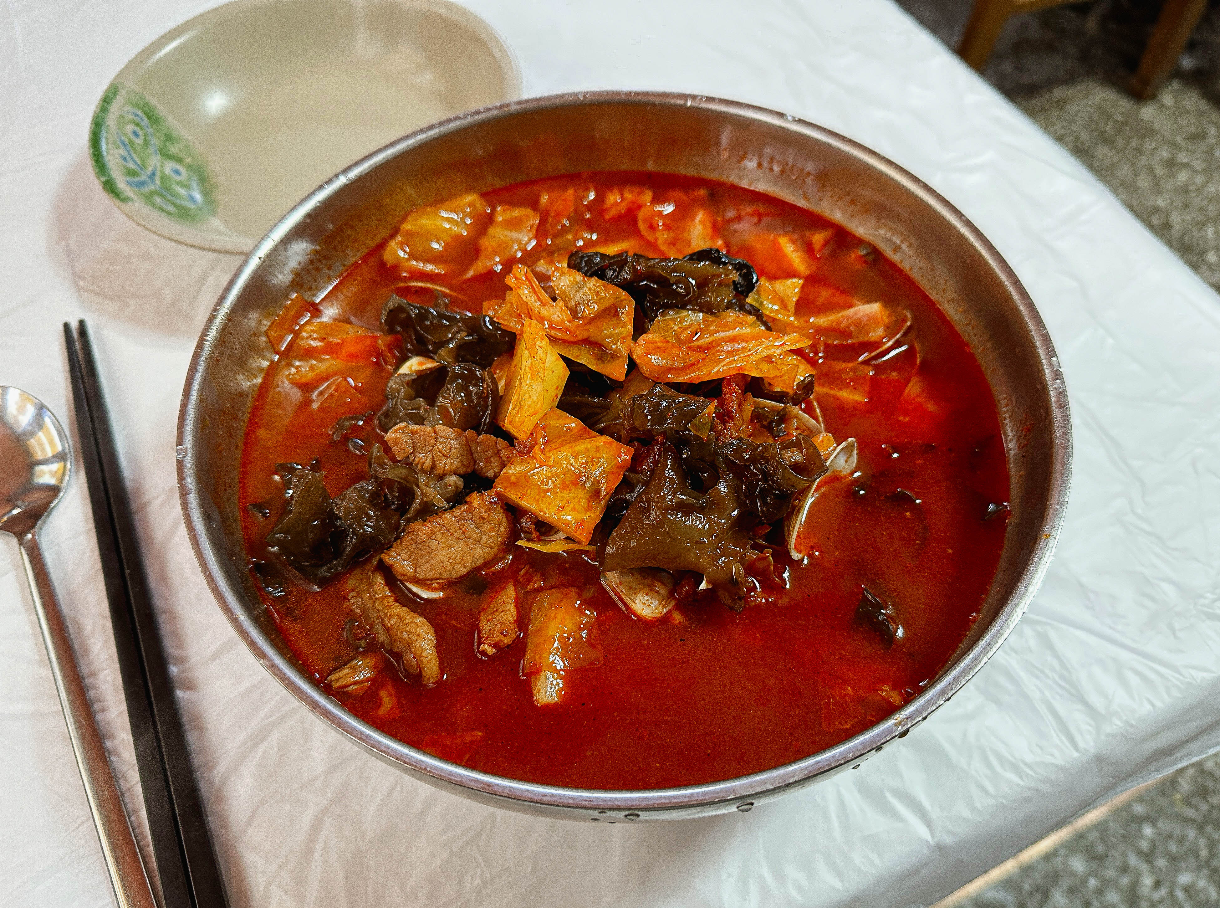 두 차례에 걸쳐서 이 가게에 방문했는데, 하루는 바지락 껍데기 깨진 게 너무 많아서 국물을 떠서 먹다 보면 계속 이에 계속 씹히더라고요. 솔직히 국물맛이랑 수타로 만든 면발이랑 잘 어울려서 맛있었지만, 요즘 프랜차이즈 중식당에 비하면 재료도 몇 안 들어가 있고, 아쉬운 점이 많이 보이는 가게였습니다.