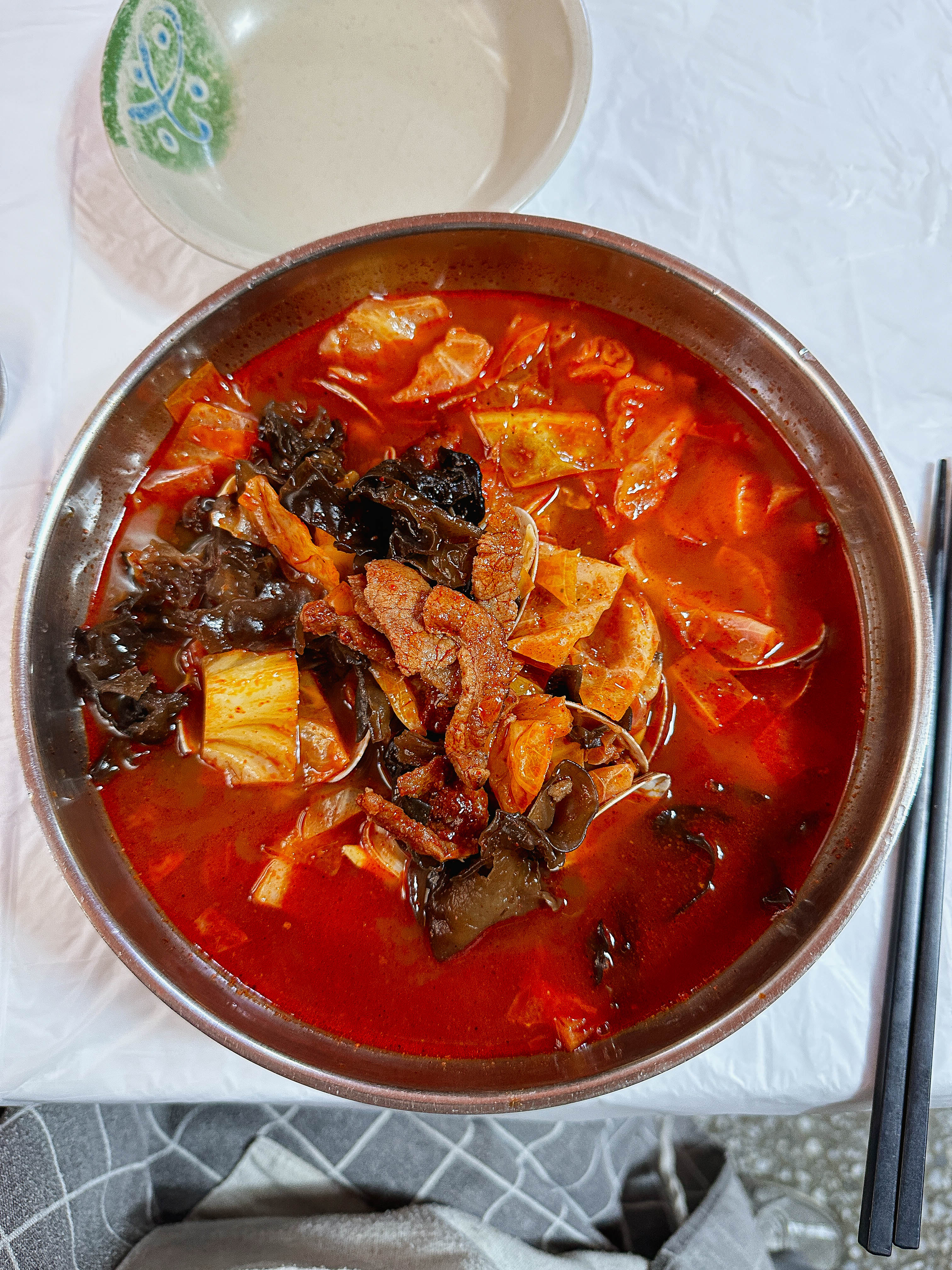 저는 신태루의 메인 메뉴인 '육짬뽕'을 주문했습니다. 양배추, 목이버섯, 고기가 고명으로 올라간 이 짬뽕은 국물이 기름지고 묵직한 느낌이 있었고, 바지락도 꽤 크고 탱글한 것을 사용해 식감이 좋았습니다. 조금 더 자세히 살펴보시죠.