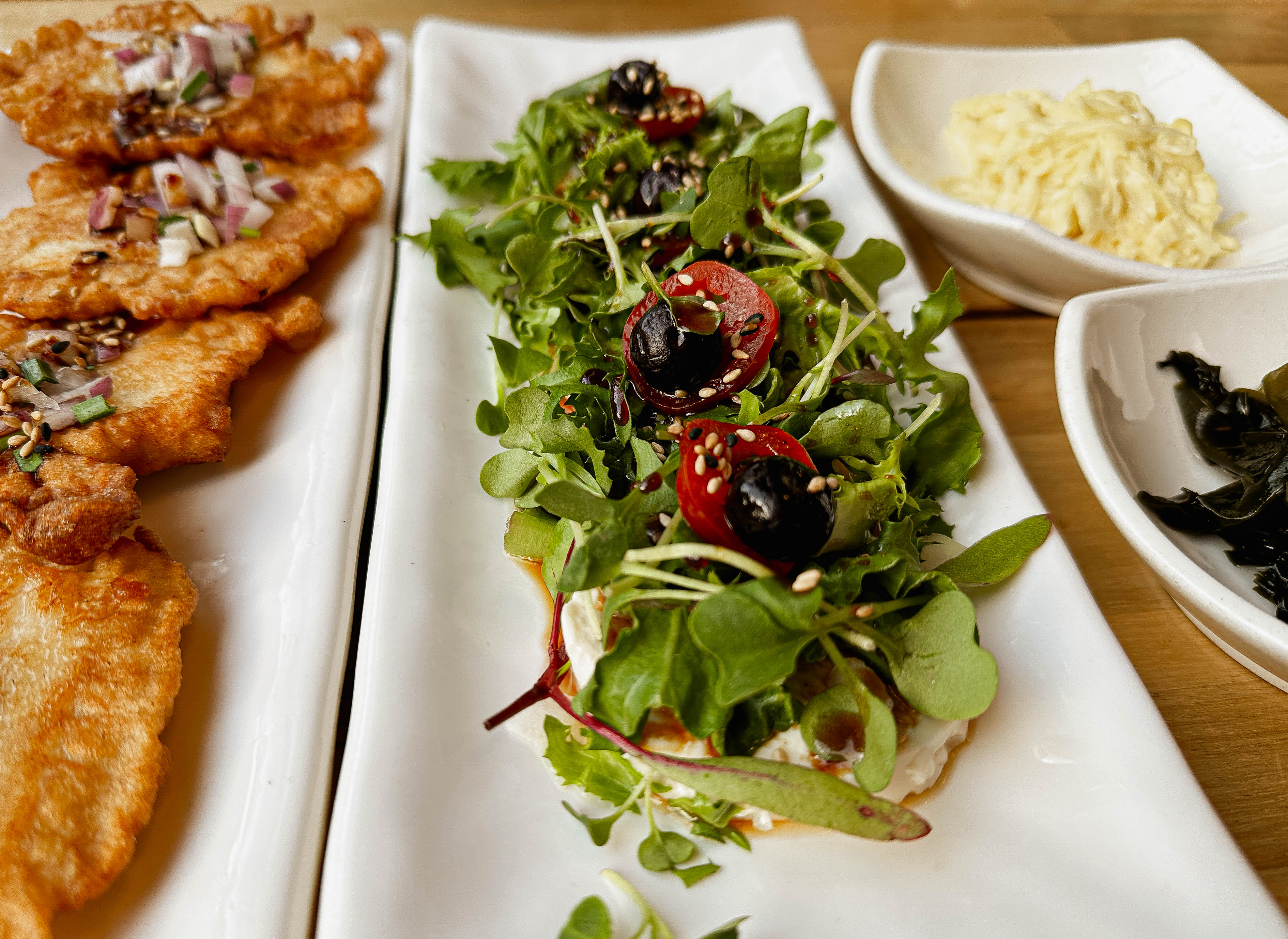 저는 개인적으로 강된장정식보다는 된장정식이 더 맛있는 것 같더라고요. 샐러드도 연두부로 만들어 부드러웠고, 두부부침도 입맛에 맞았습니다. 된장찌개도 우렁된장으로 구수하면서도 시원한 맛이 있었습니다. 부추전을 별도로 주문했는데, 솔직히 부추전은 더 바삭하면 좋았을 텐데, 약간 쫀득한 느낌이었습니다.