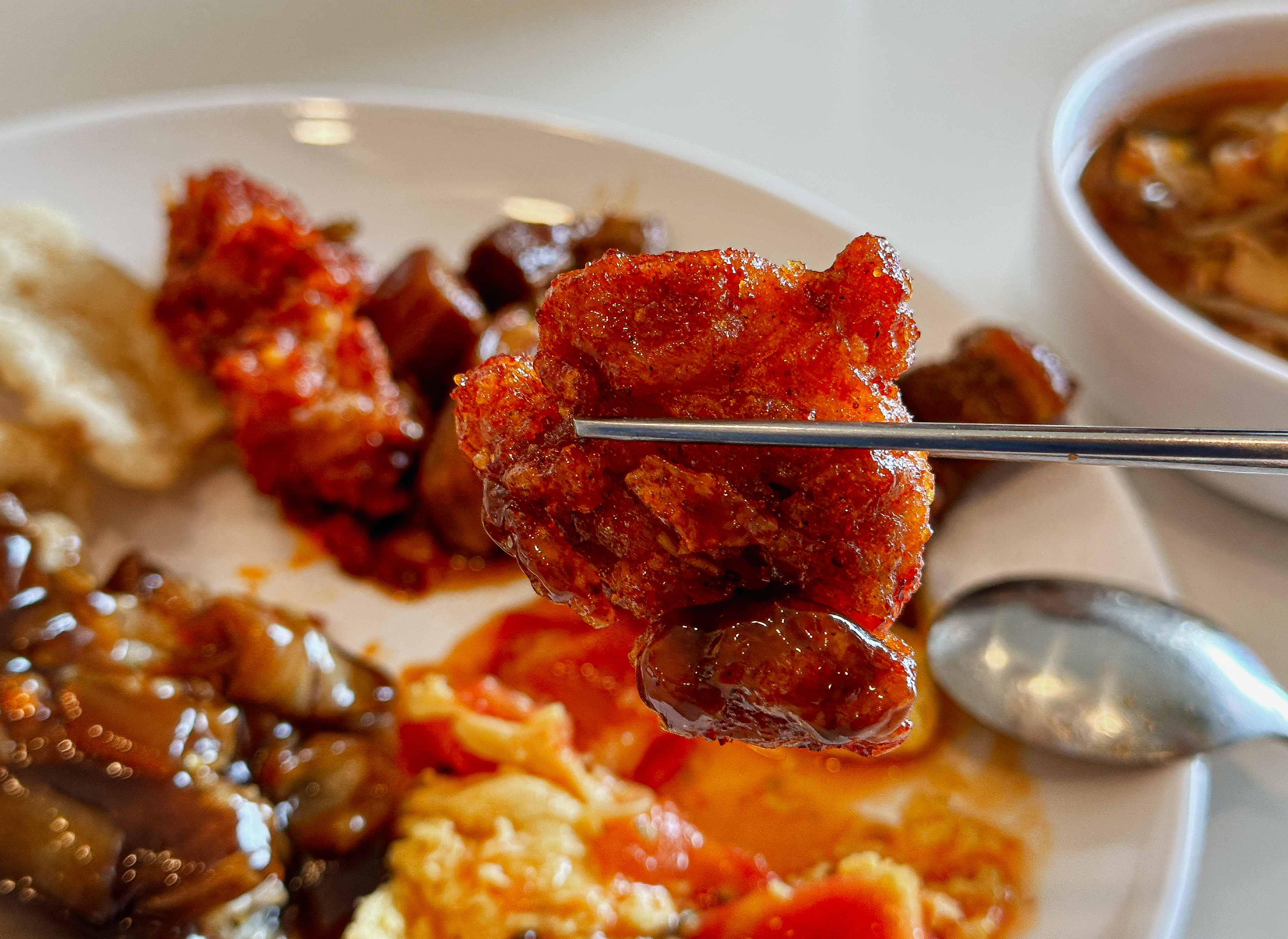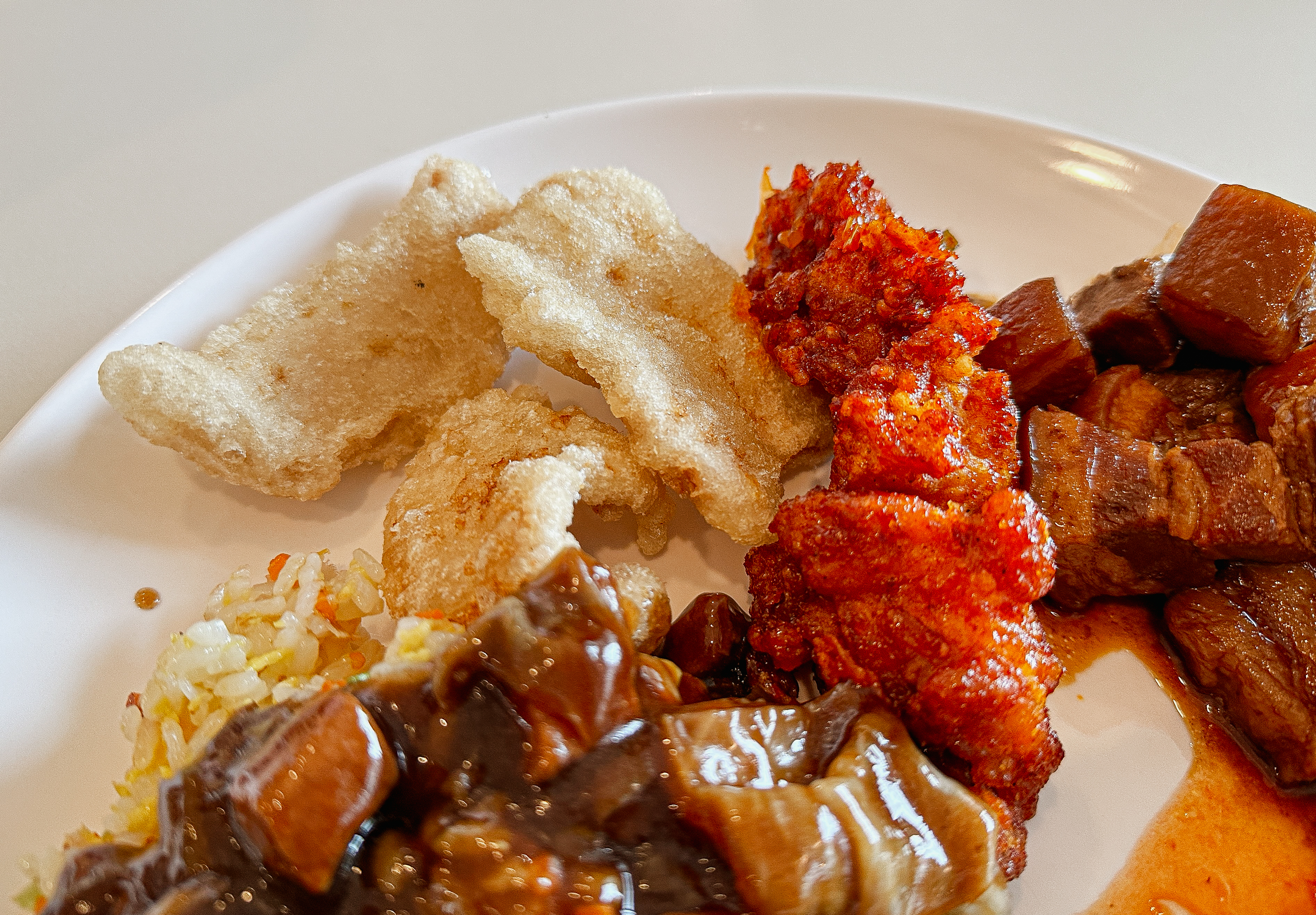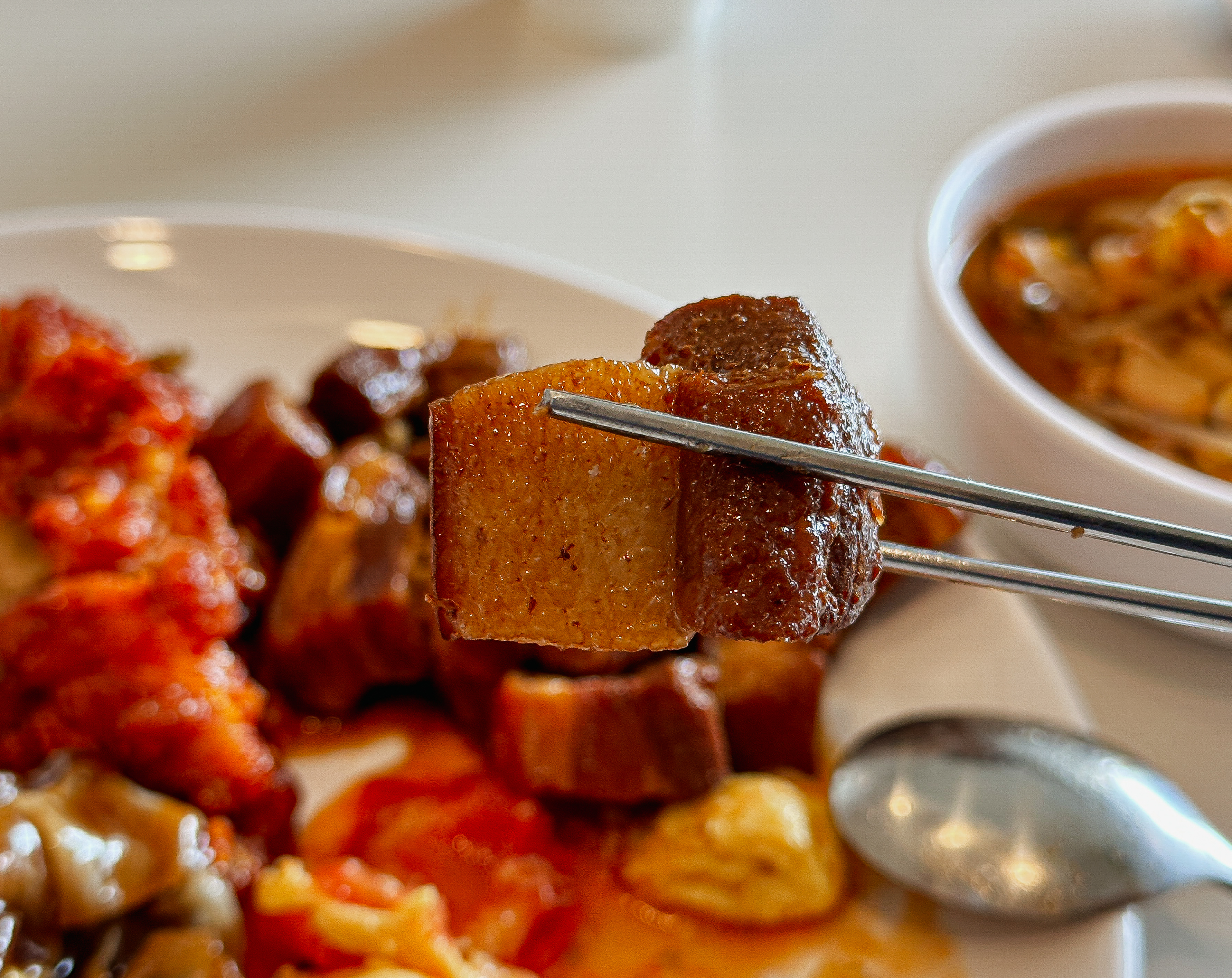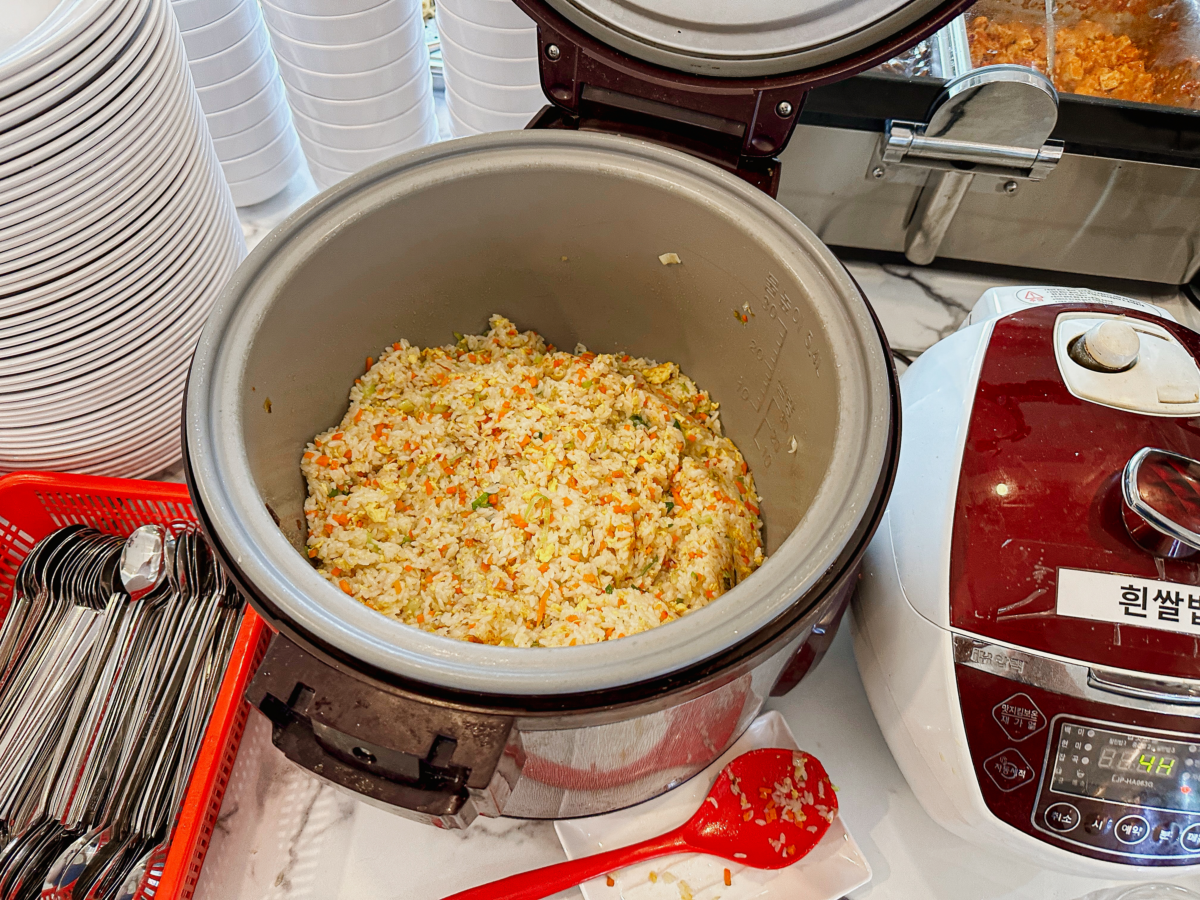 접시에 원하는 반찬을 덜어다 먹으면 되었는데, 맛이 좋았던 메뉴들을 나열해 보자면 깐풍기, 꿔바로우, 동파육, 토마토계란볶음, 마파두부 정도 있을 것 같았고, 짜장이나 짬뽕 같은 중식당의 대표 메뉴들은 학교 급식 같은 느낌이었습니다.
