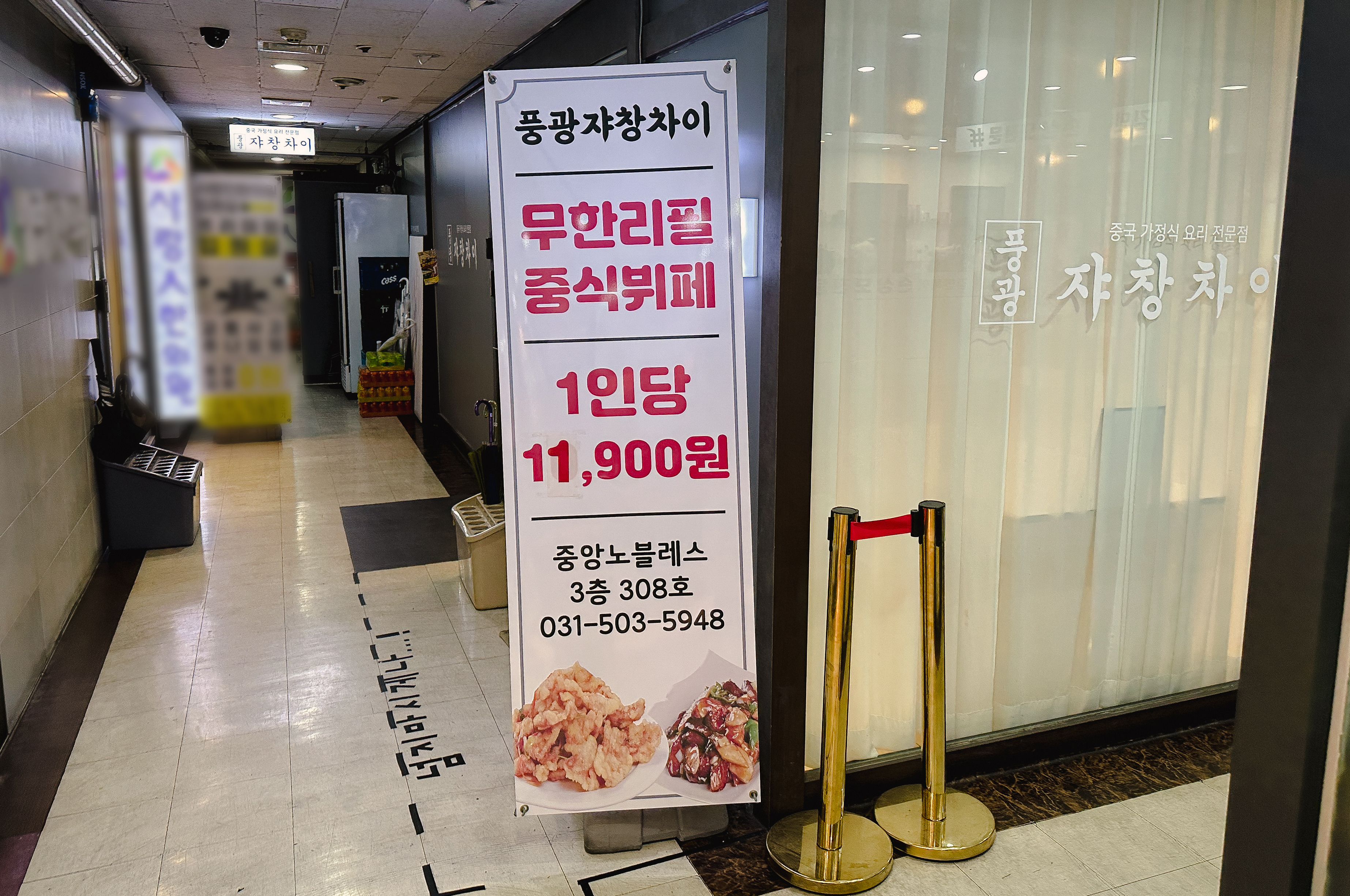 중식 무한리필 풍광 쟈창차이의 위치는 경기 안산시 단원구 고잔동 534-3, 중앙노블레스 308호에 위치해 있었습니다. 무한리필 중식뷔페 기준 1인 11,900에 이용이 가능했습니다. 메뉴판은 따로 없었고, 가게에는 별도의 이용에 대한 안내가 없었고, 직원분께 물어보니 바로 이용하시면 된다고 하시더라고요.