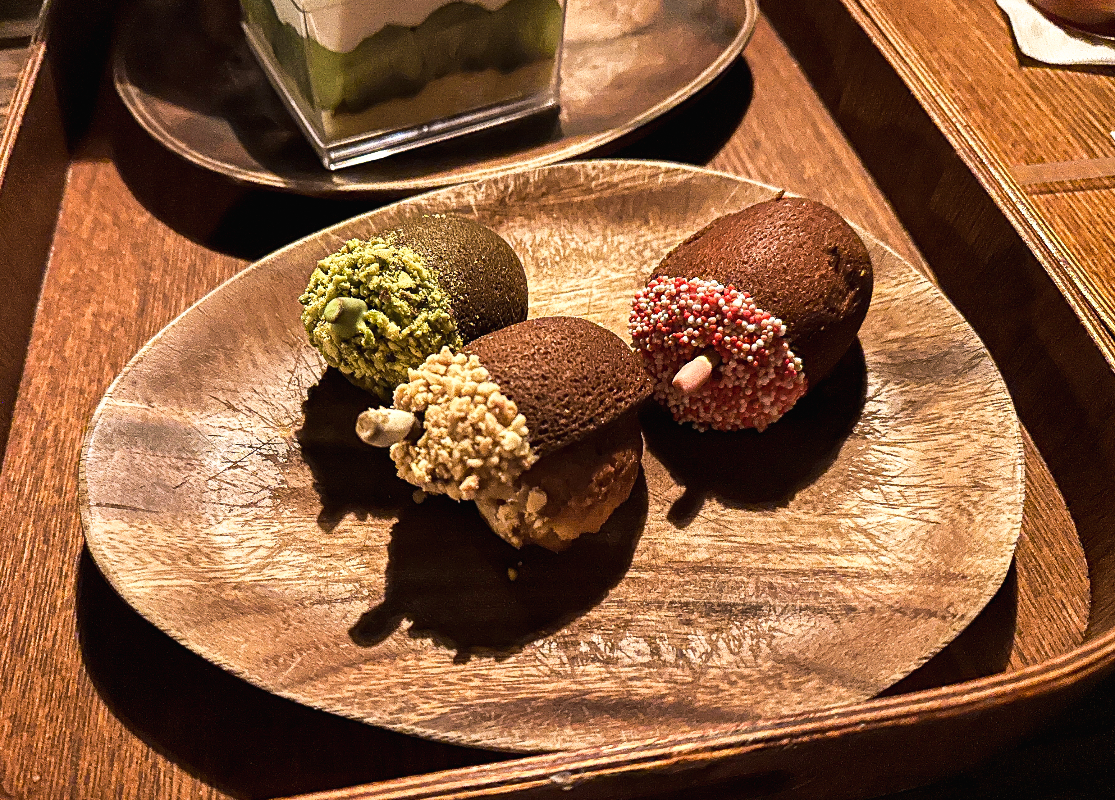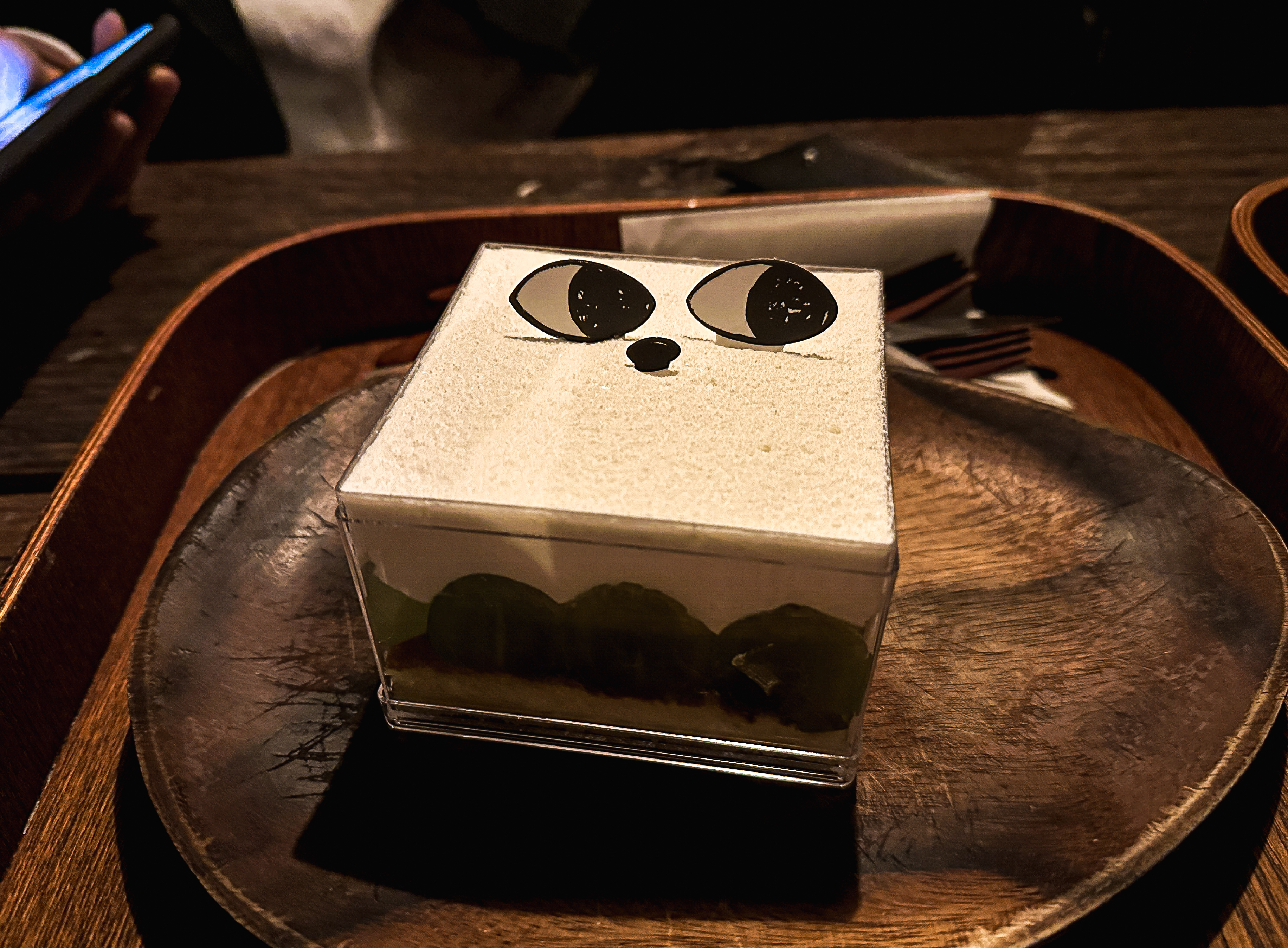 음료와 함께 주문한 디저트가 나왔습니다. 도토리 모양의 마들렌과 샤인머스캣이 들어간 케이크 등 모양은 참 이뻤는데, 실제로 먹어보면 기대와는 달리 맛은 좀 퍽퍽하고 맛이 별로였습니다. 마들렌 같은 경우에는 편의점에서 파는 에그볼이라는 빵이랑 비슷한 느낌이었습니다.