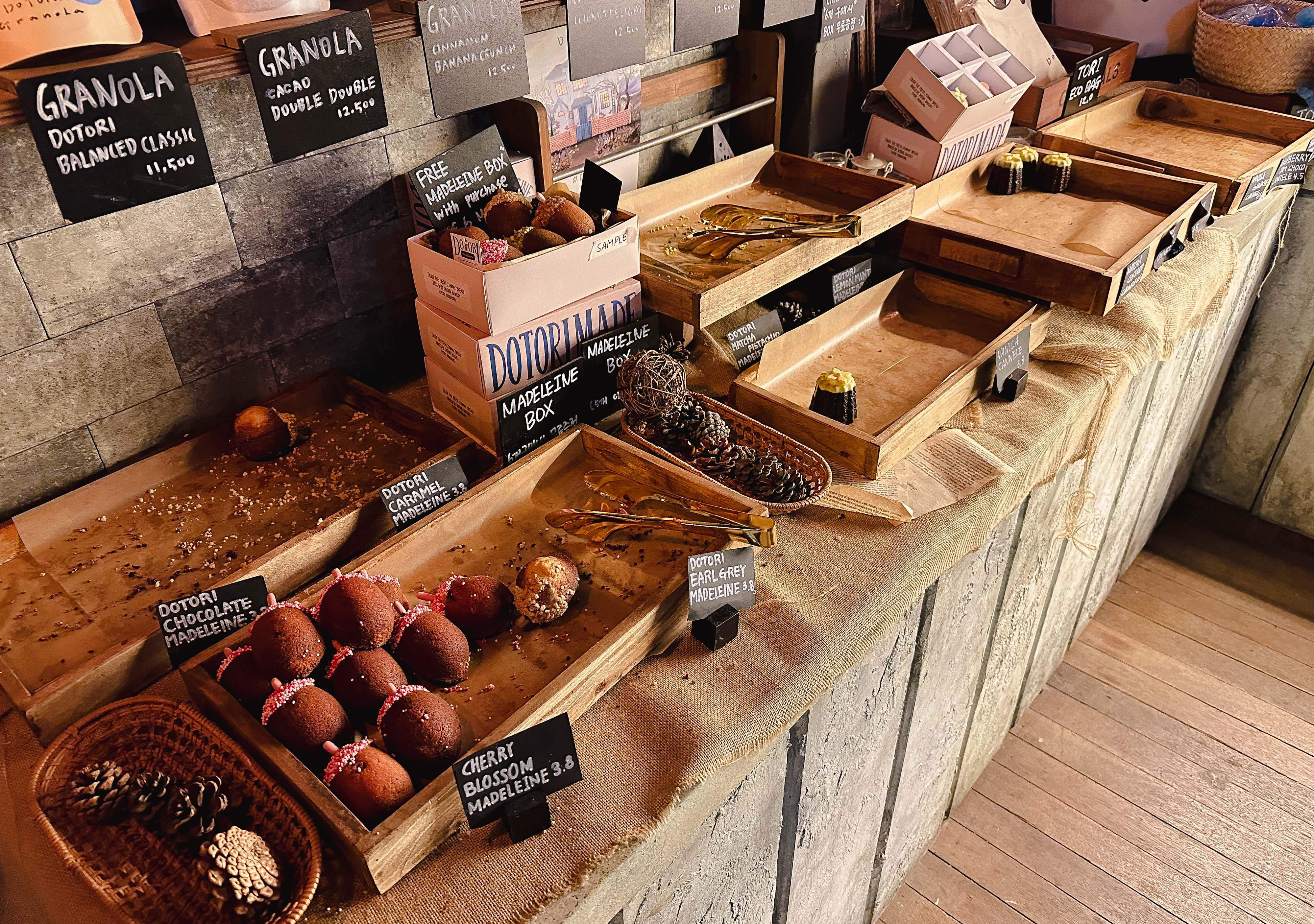 용산 카페 도토리의 메뉴는 간단한 디저트류와 커피・음료를 팔고 있었습니다. 간략하게 소개해드리자면 베이커리로는 마들렌, 까눌레, 소금빵, 프레즐, 케이크, 브런치류가 있었고, 음료는 커피, 차, 요거트, 주스류가 있었습니다.