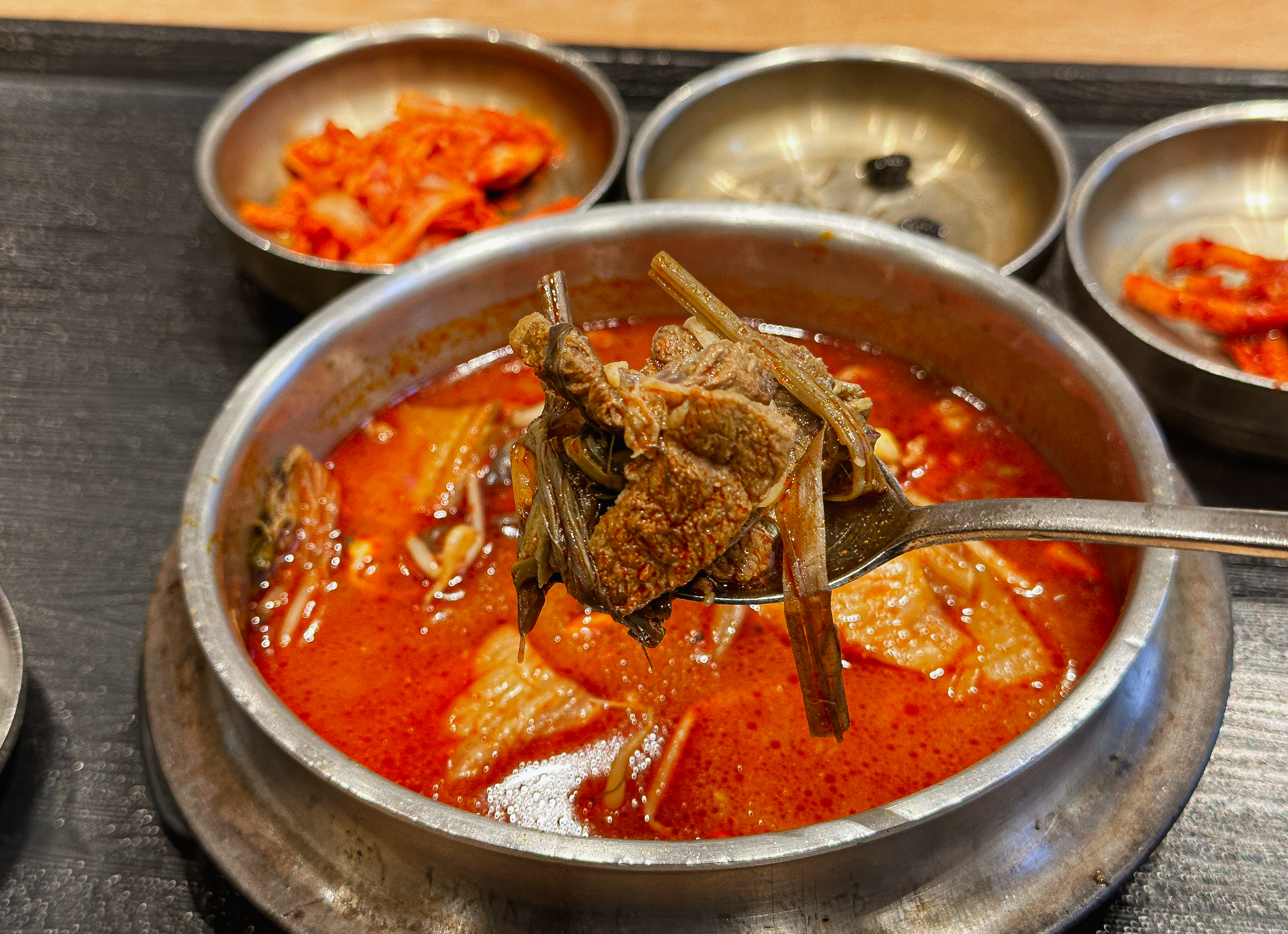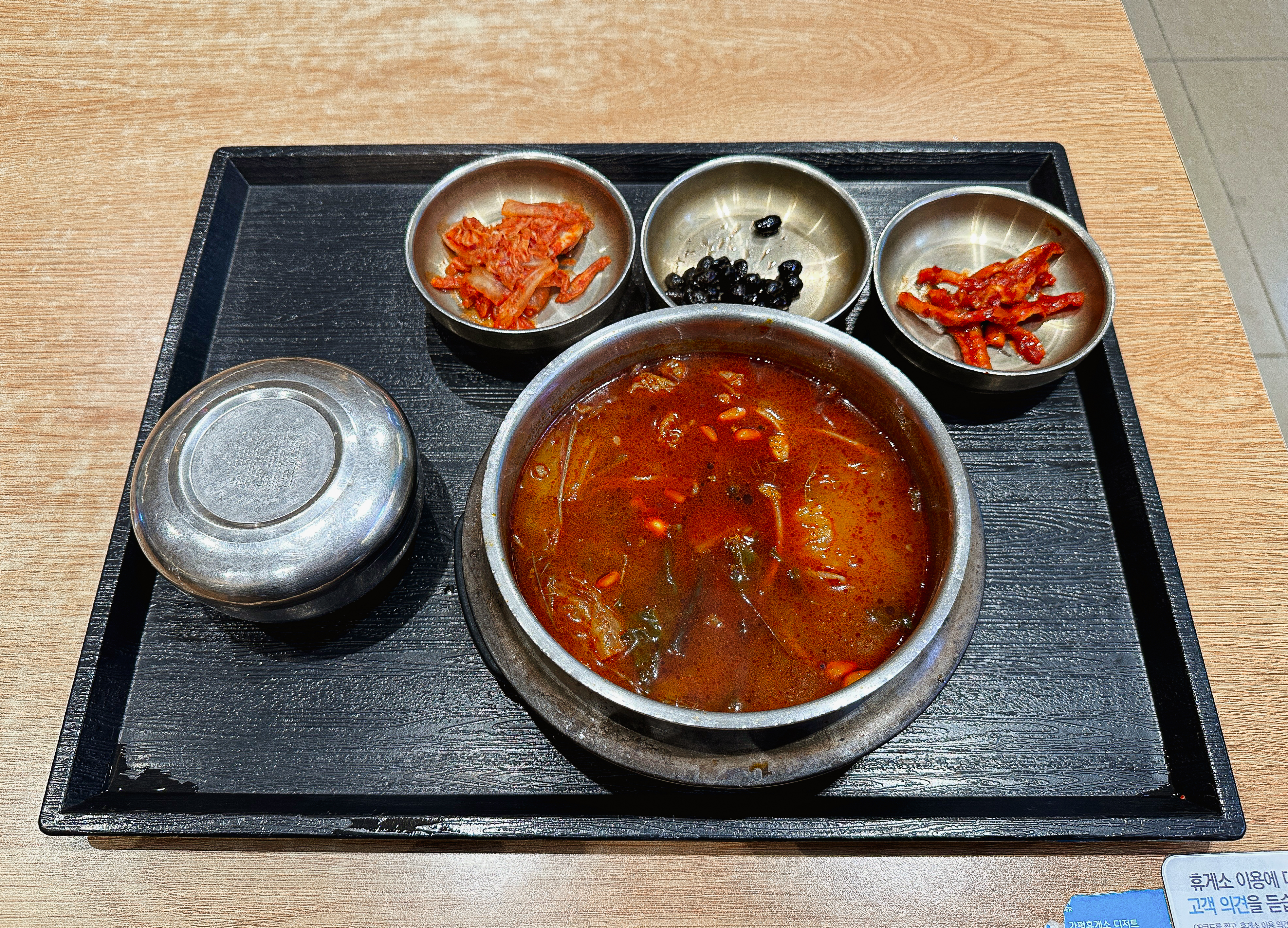 가평휴게소 푸드코트의 가평잣소고기국밥은 위와 같이 나왔습니다. 얼큰한 국물에 무와 소고기, 잣, 고사리 등이 들어가 있었습니다. 소고기와 잣이 메뉴 이름에 쓰였지만, 생각보다 해당 재료들이 많이 들어가진 않았더라고요. 그래도 허기를 잘 달랬으면 됐죠.