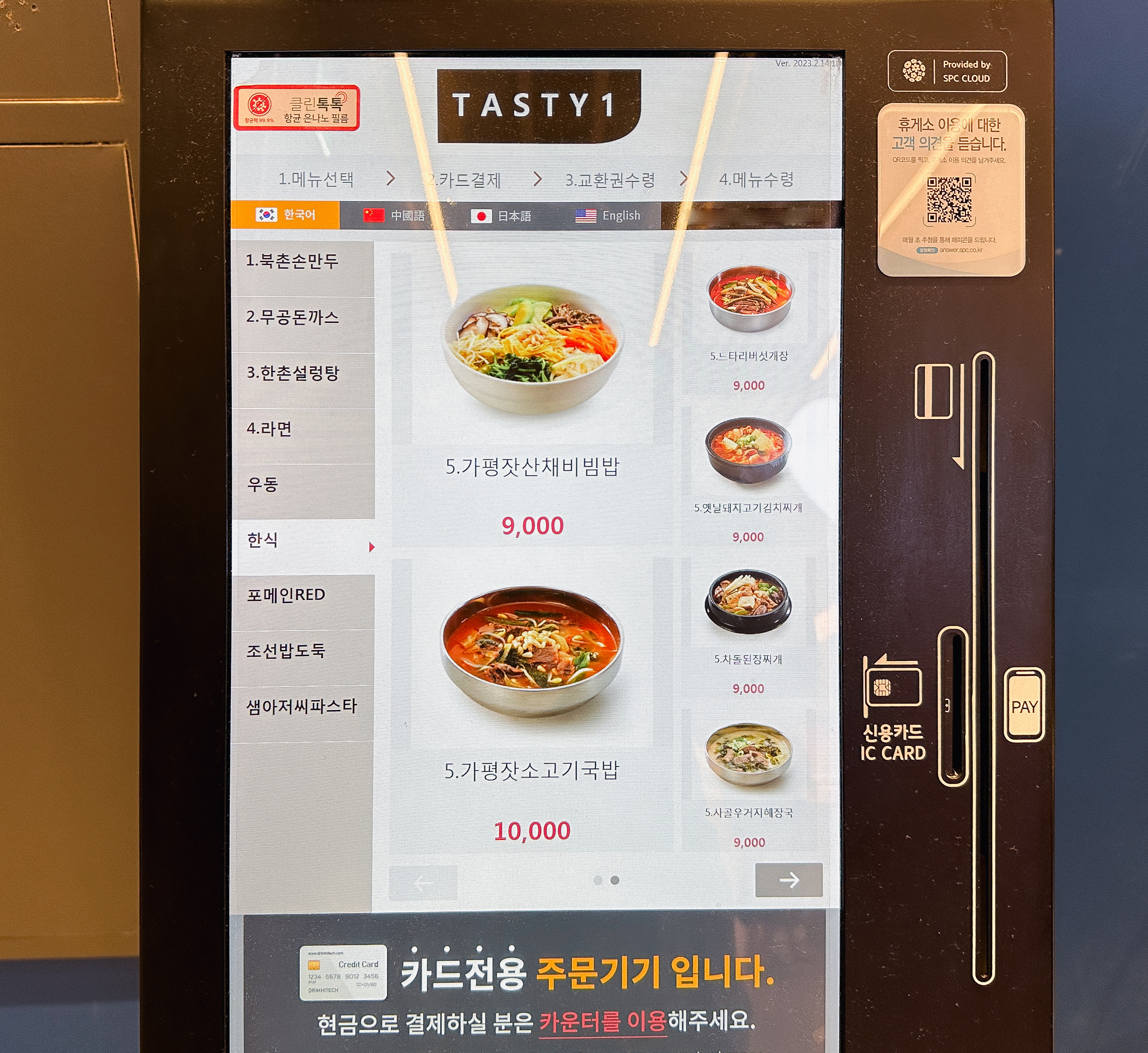 제가 방문한 가평휴게소의 위치는 경기 가평군 설악면 미사리 145-3에 위치해 있었고, 푸드코트에는 북촌손만두, 무공돈까스, 한촌설렁탕, 포메인, 조선밥도둑, 샘아저씨 등 프랜차이즈 가게들이 많이 들어서 있었습니다. 저는 그중에 한식코너의 '가평잣소고기국밥'이 눈에 들어오더라고요.