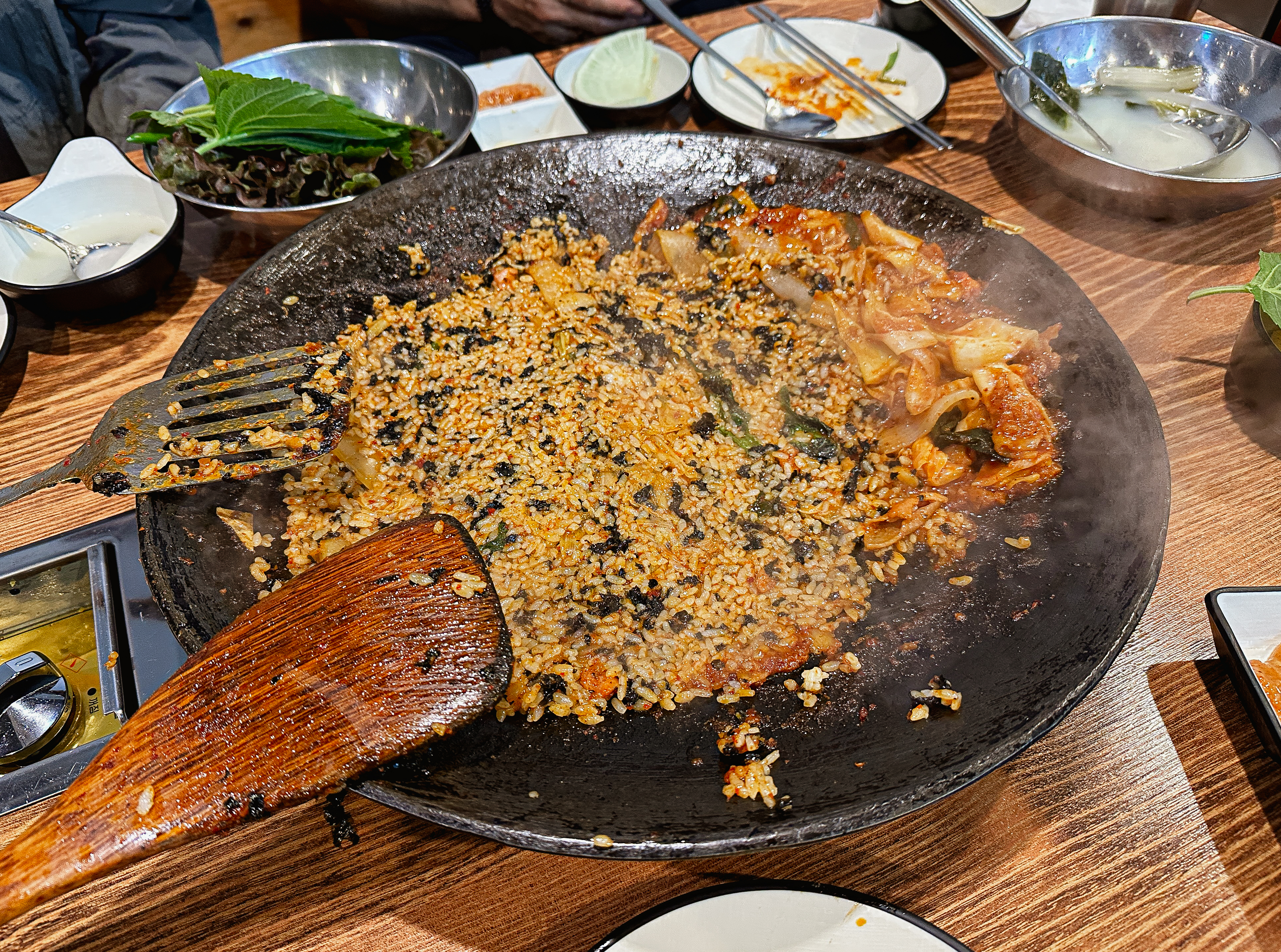 쌈채소를 별도로 주문하고 닭갈비를 어느 정도 먹은 뒤 밥까지 볶아주었습니다. 닭갈비에 볶음밥까지 먹으니 배가 은근히 차서 추가로 더 먹지는 못할 것 같더라고요.