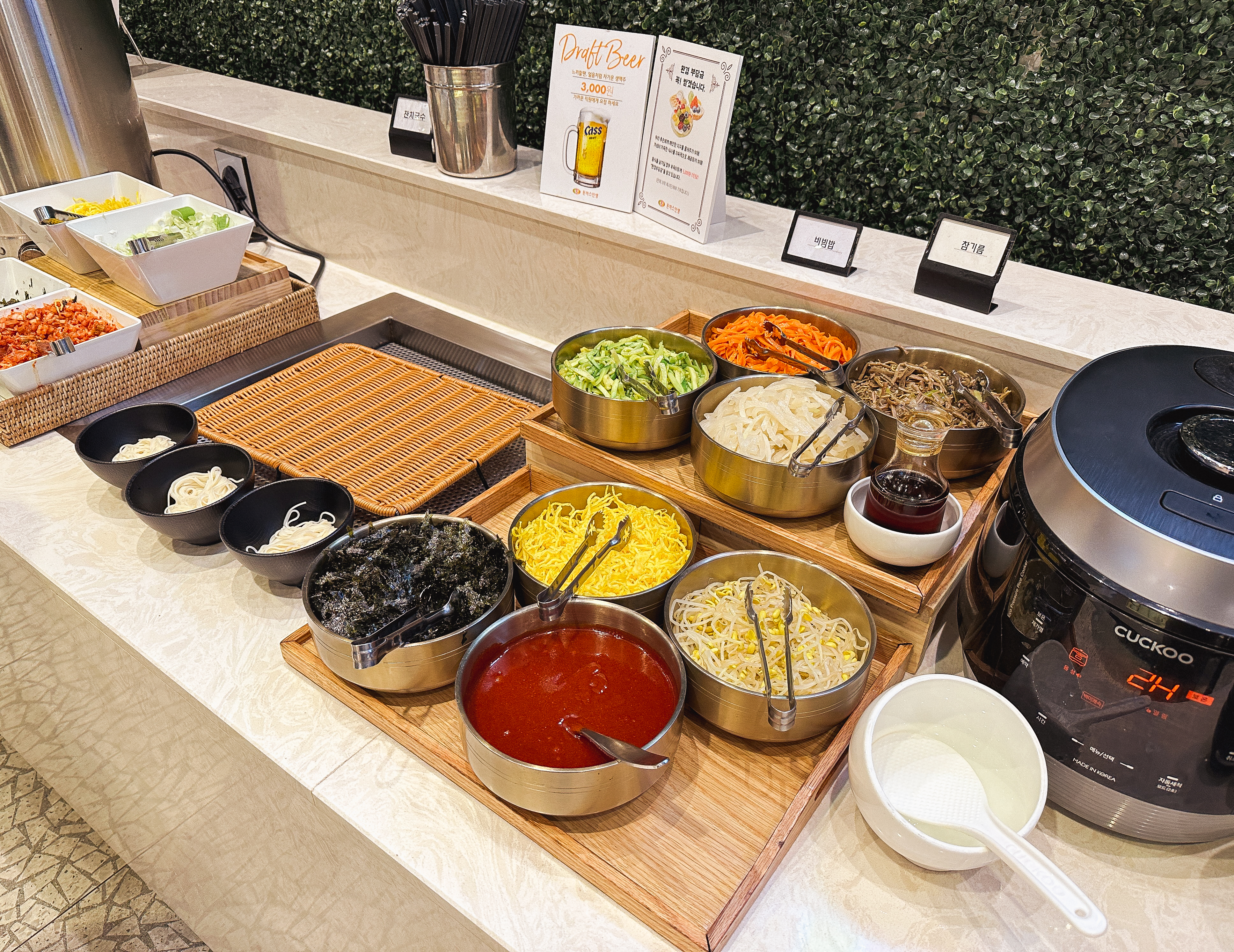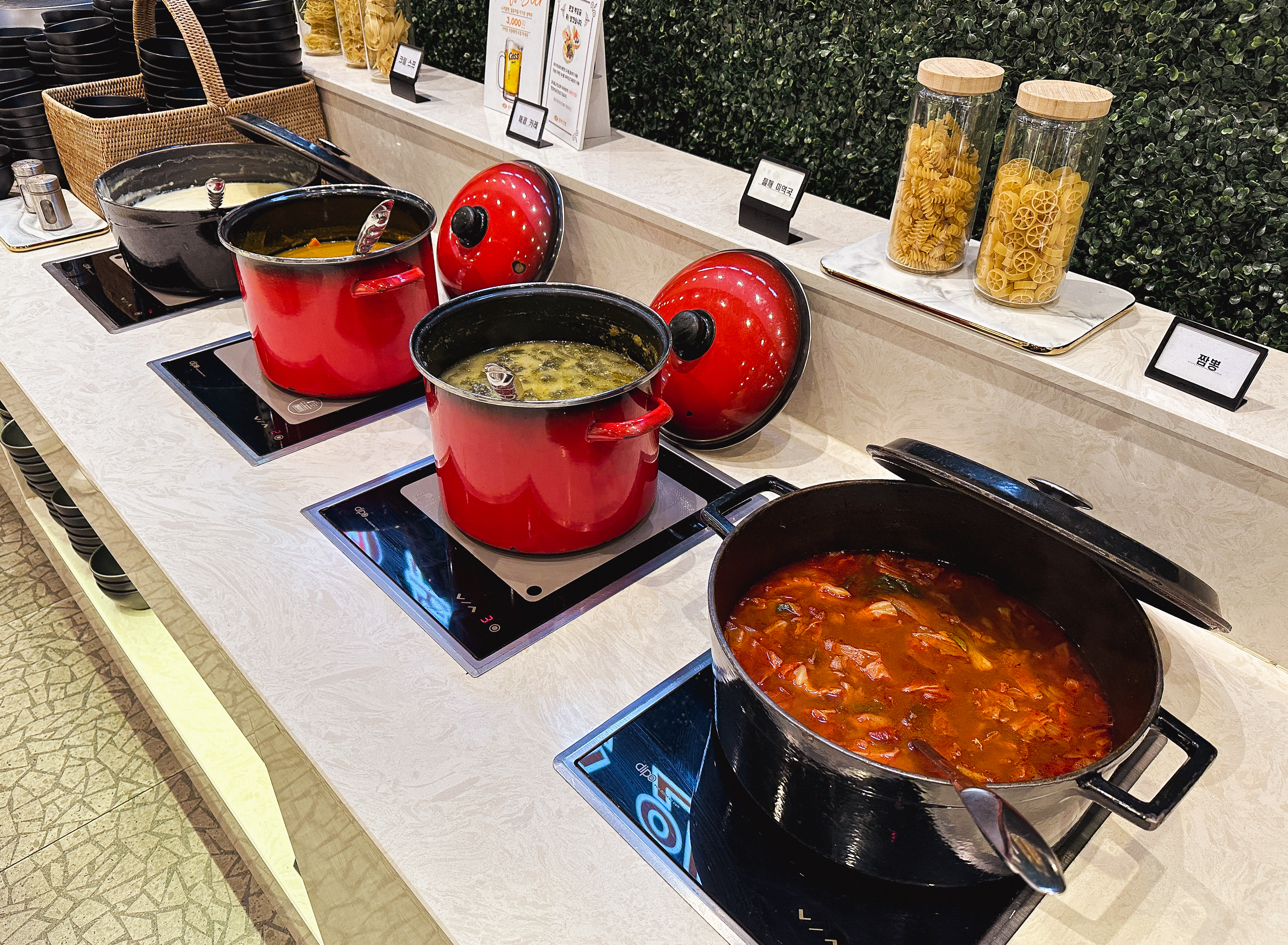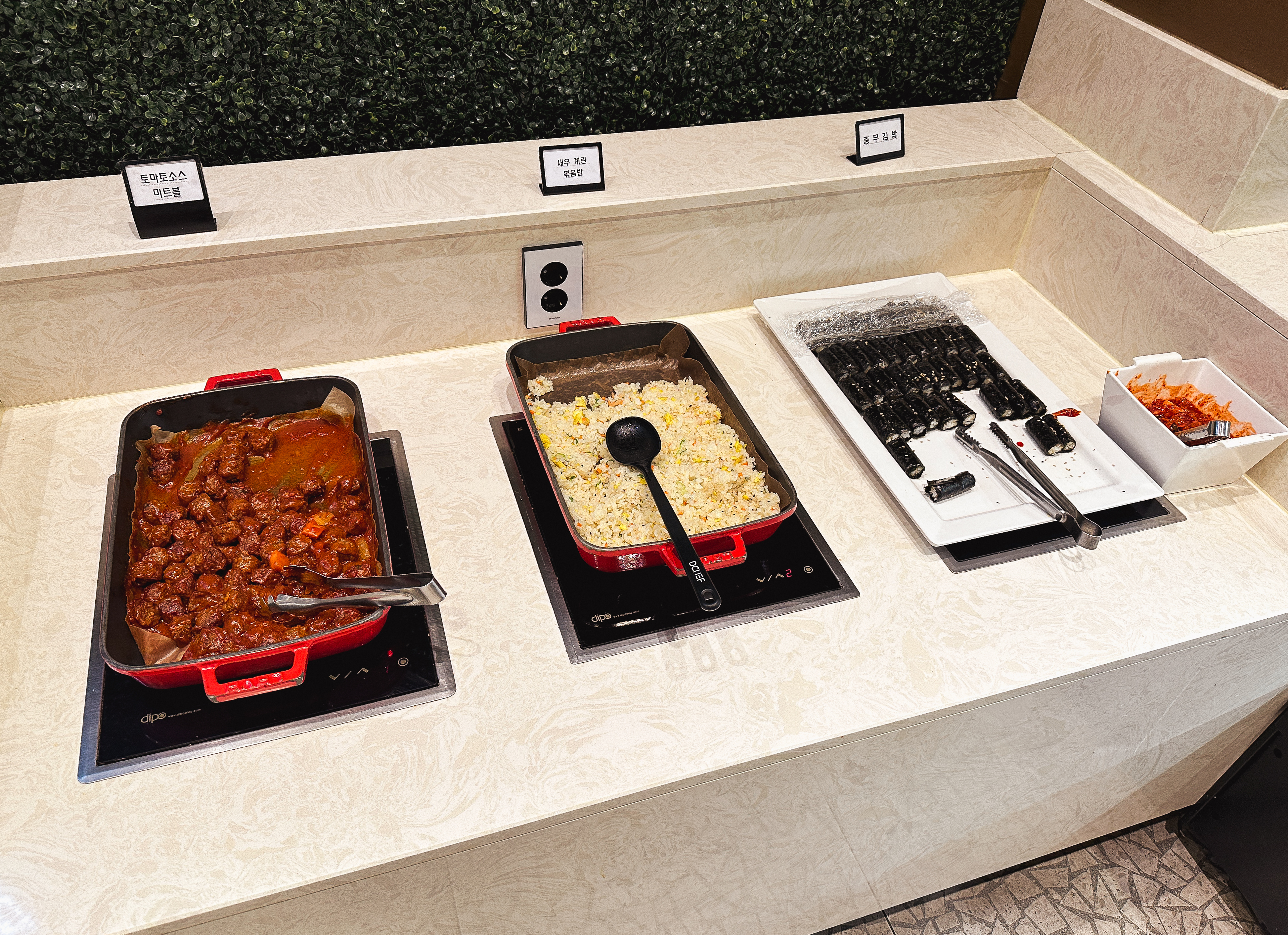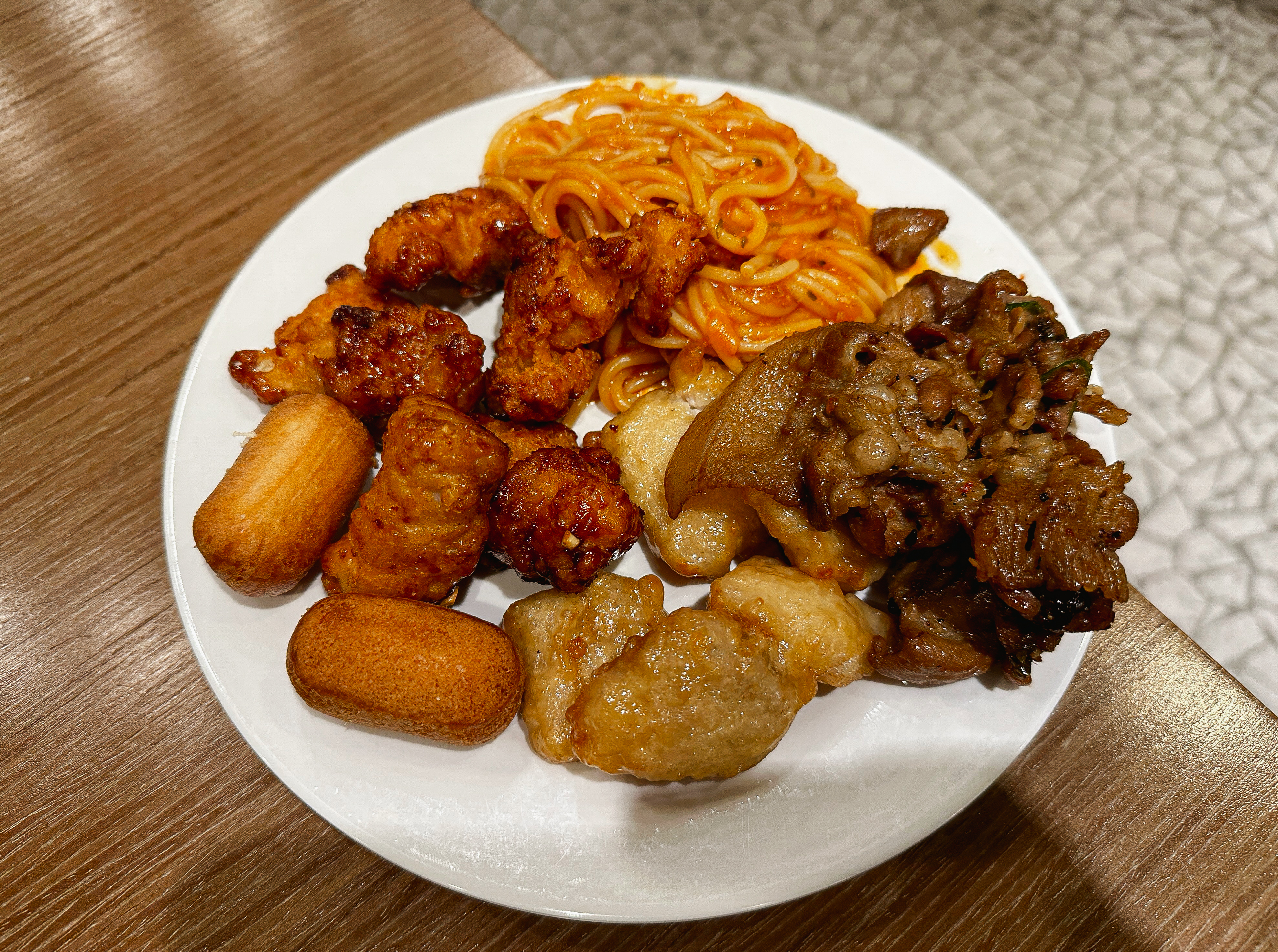그밖에 웬만한 프랜차이즈 뷔페 부럽지 않은 다양한 종류의 메뉴들을 뷔페로 이용할 수 있었습니다. 짬뽕, 미트볼, 볶음밥, 튀김, 비빔밥, 스프, 김치, 탕수육, 치킨, 소시지, 스파게티, 다과류, 슬러시, 커피 등 다양한 종류의 메뉴를 90~120분 사이로 식사할 수 있었습니다.