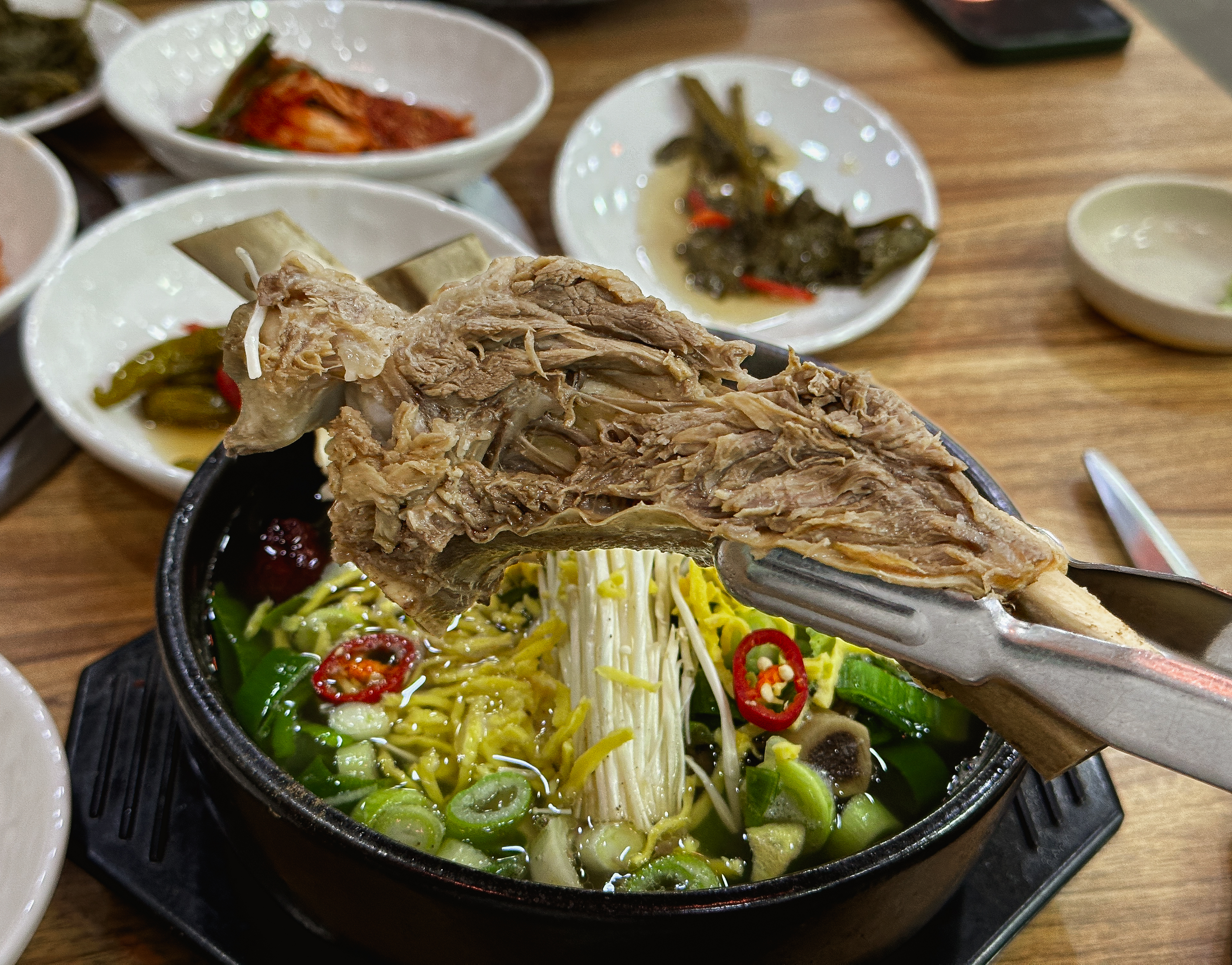 갈비탕의 고기는 뼈랑 살코기가 잘 분리되어 먹기 편했고, 고기 또한 부드러워서 맛있었습니다. 국물은 우리가 흔히 아는 갈비탕 국물이었고, 계란지단, 대추, 인삼 등 재료를 넣어 더 고급스러워 보이더라고요. 가격은 15,000원이었는데, 적당한 수준이었고 맛도 괜찮아서 만족스럽게 식사했습니다.