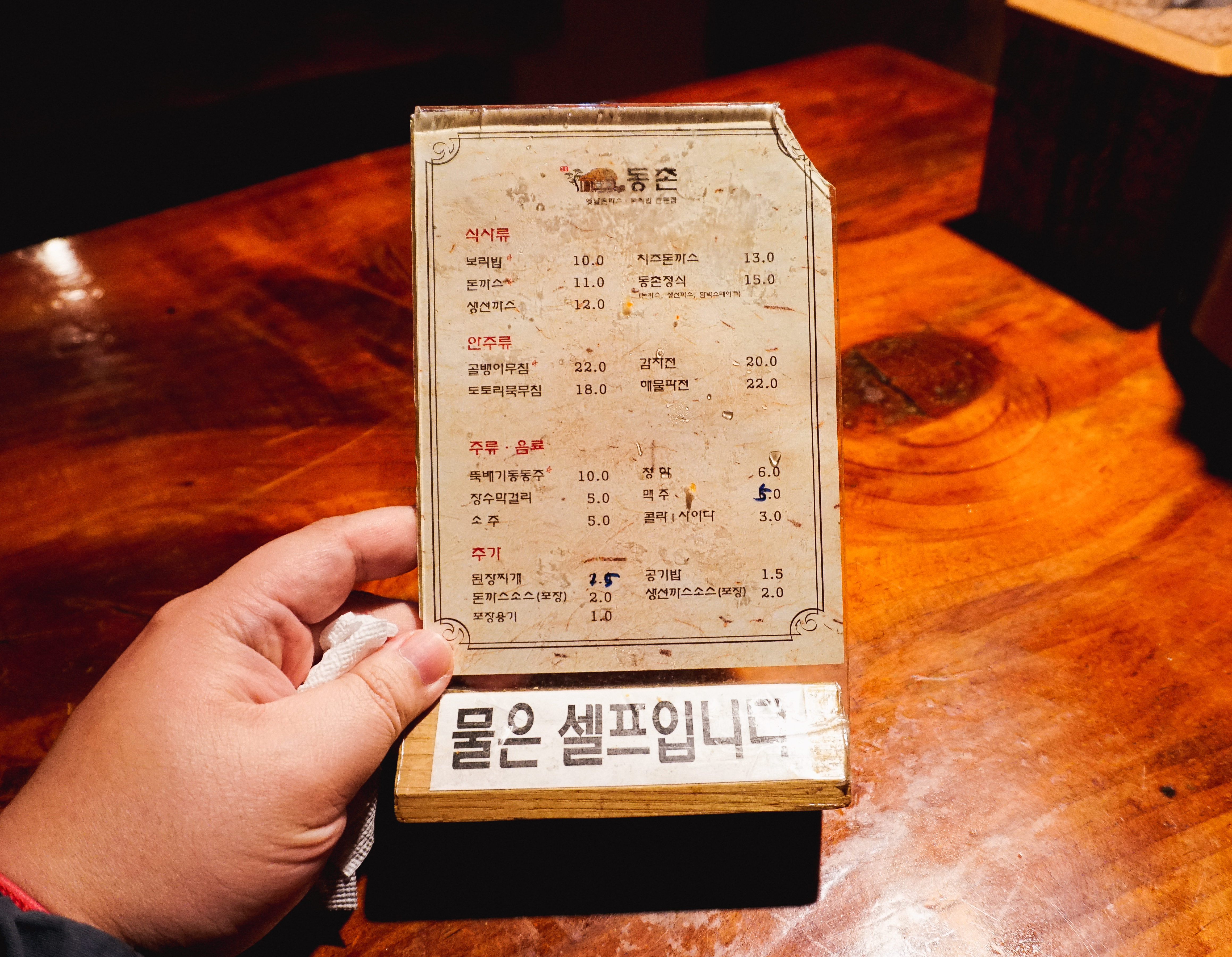 거여동 동촌은 사장님이 바뀌면서 서비스도 바뀌고 여러 가지 면에서 아쉬운 점이 많이 보이면서, 한동안은 안 갔던 가게인데 최근에 다시금 치즈가 흘러넘치는 돈까스가 생각이 나서 찾아가게 되었습니다.