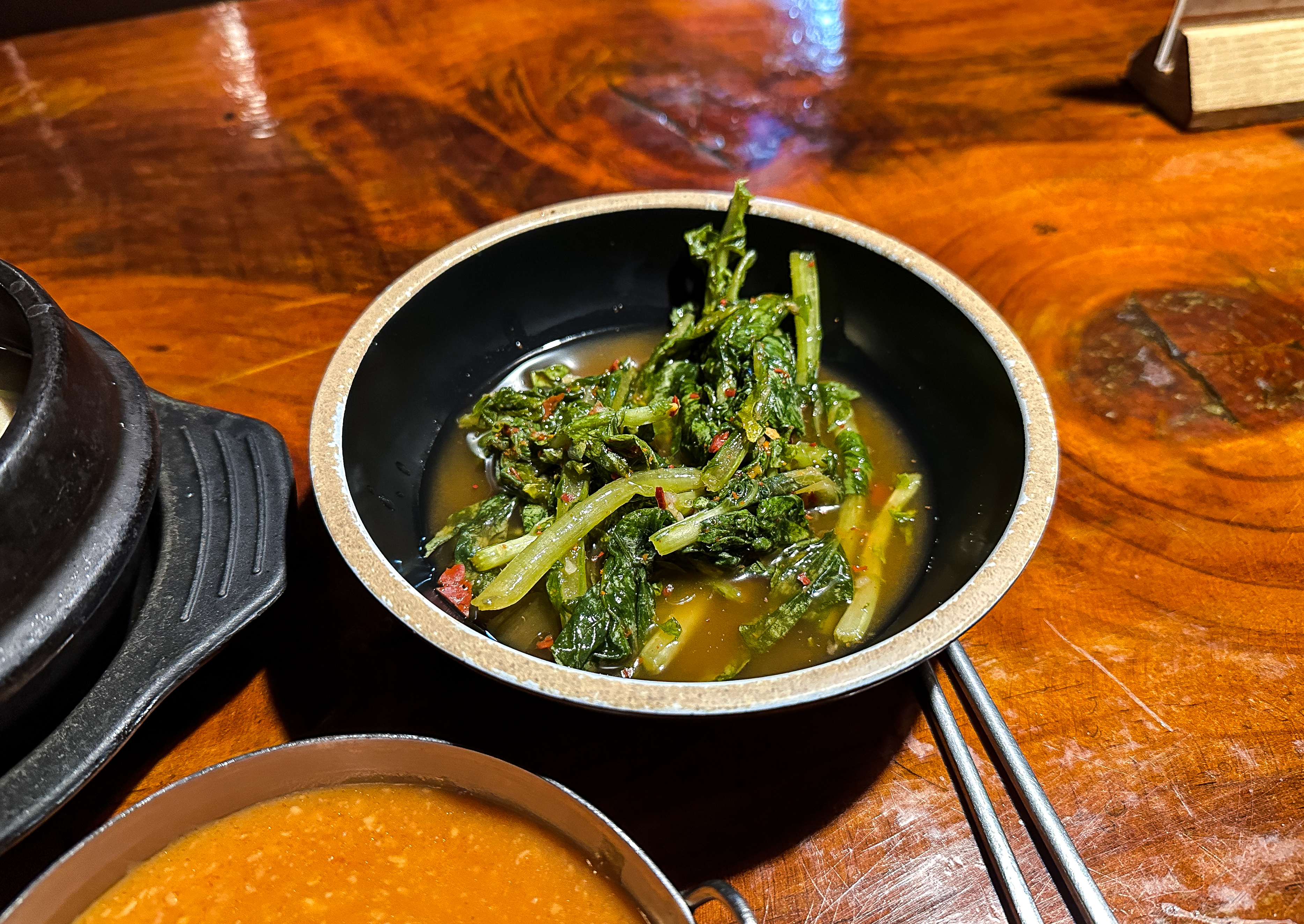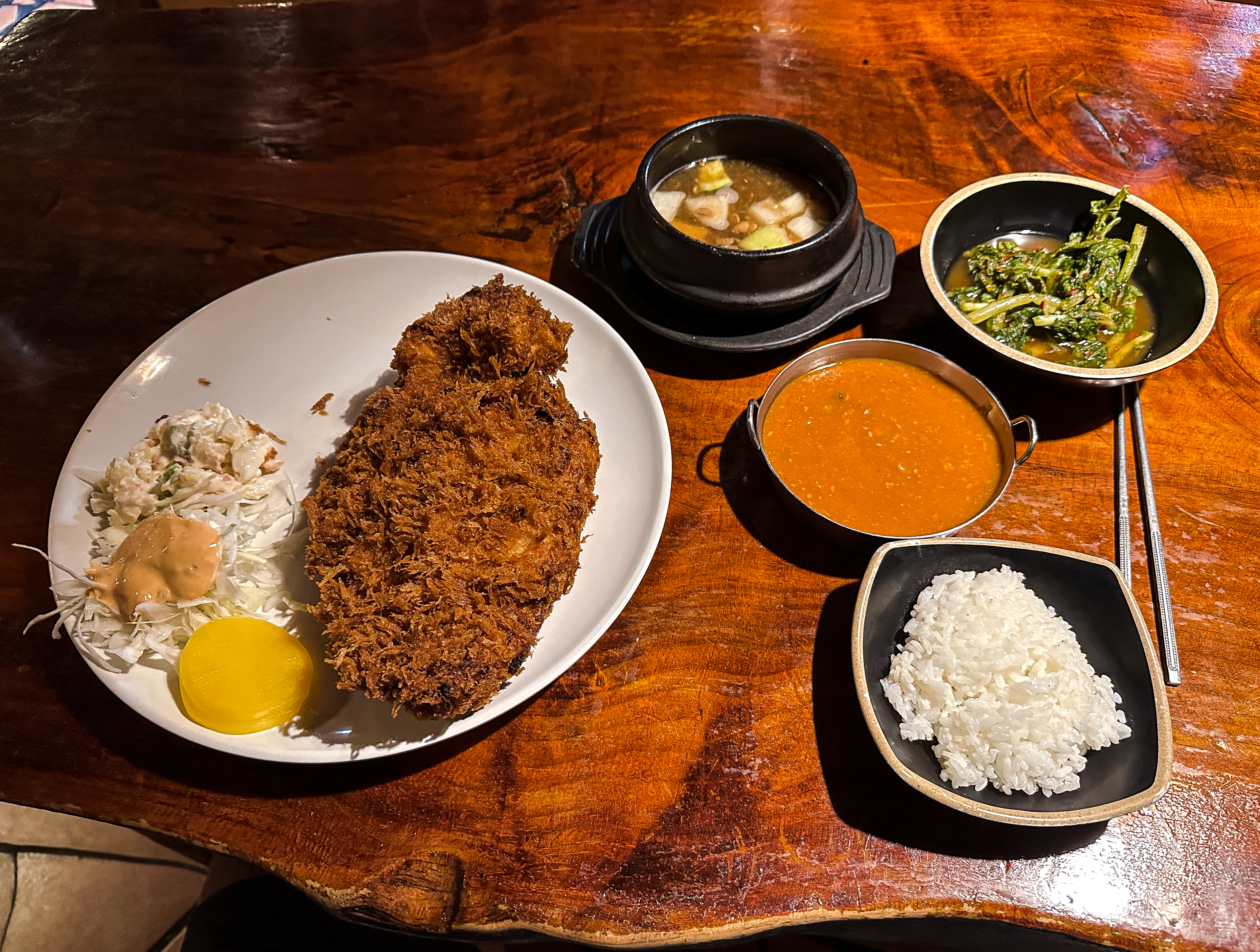 동촌의 모든 메뉴를 주문하면 기본적으로 밥과 함께 된장찌개, 열무김치가 나오는데 반찬들은 사장님이 바뀌고 맛이 변했을 수 있지만 전체적으로 비슷하게 잘 유지되고 있는 것 같았습니다. 거여동 동촌에서 원래는 돈까스를 주문하면 소스가 부어져 나오는데, 바삭하게 먹고 싶어서 별도로 달라고 부탁했습니다.