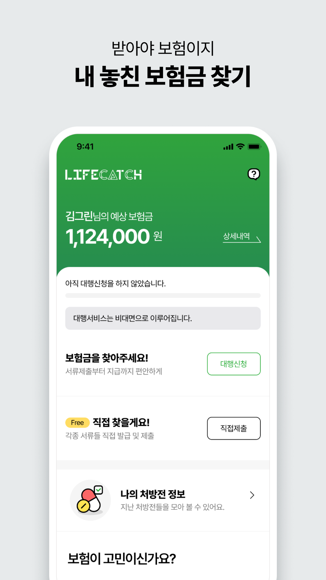라이프캐치 앱은 소멸시효 3년 이내의 미청구 보험금을 조회하고 찾을 수 있도록 도와주는 앱입니다. 이 앱은 단지 조회하는 것을 넘어서 일정 부분의 수수료(수령한 보험금의 22%, 서류발급비, 부가세 등 모든 금액 포함으로 이 외 발생하는 비용 없음)를 받고 대신 보험금을 청구하여 받아주는 대행서비스도 하고 있었습니다.