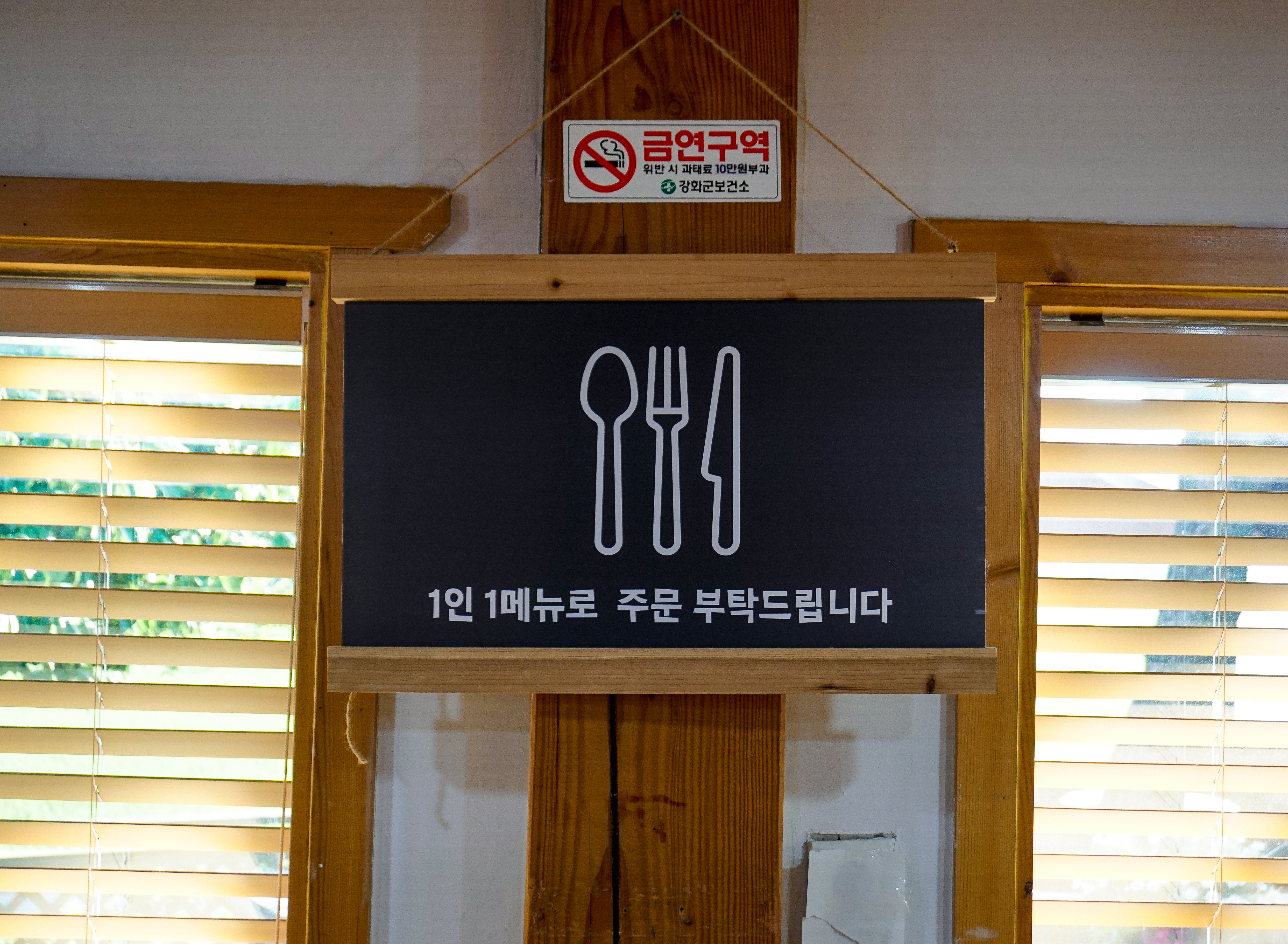 강화 마니온의 메뉴는 수제돈까스, 수제생선까스, 수제어니언돈까스, 냉모밀, 새우우동, 새우튀김 등이 있었습니다. 김치나베우동이라는 메뉴가 아무래도 겨울메뉴여서 그런지 냉모밀로 대체되었다는 것을 제외하고, 가격은 이전과 동일했습니다. 메뉴 주문은 1인 1메뉴로 하도록 되어있었습니다.
