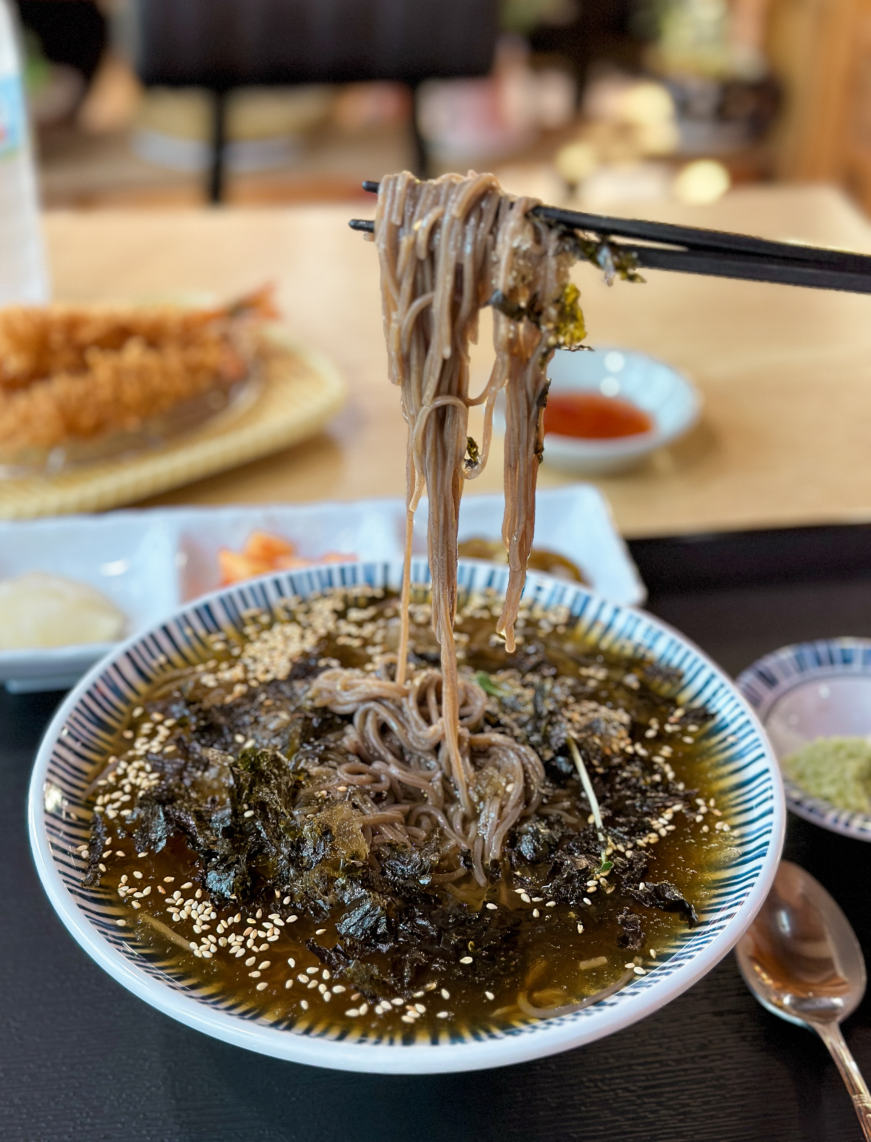 마니온의 냉모밀은 국물도 직접 내서 맛이 자극적이지 않았고, 새우튀김도 크기가 꽤 있어서 바삭하고 맛있었습니다. 가격도 부담스럽지 않은 편이라 사이드로 주문해서 먹어도 괜찮을 것 같습니다.