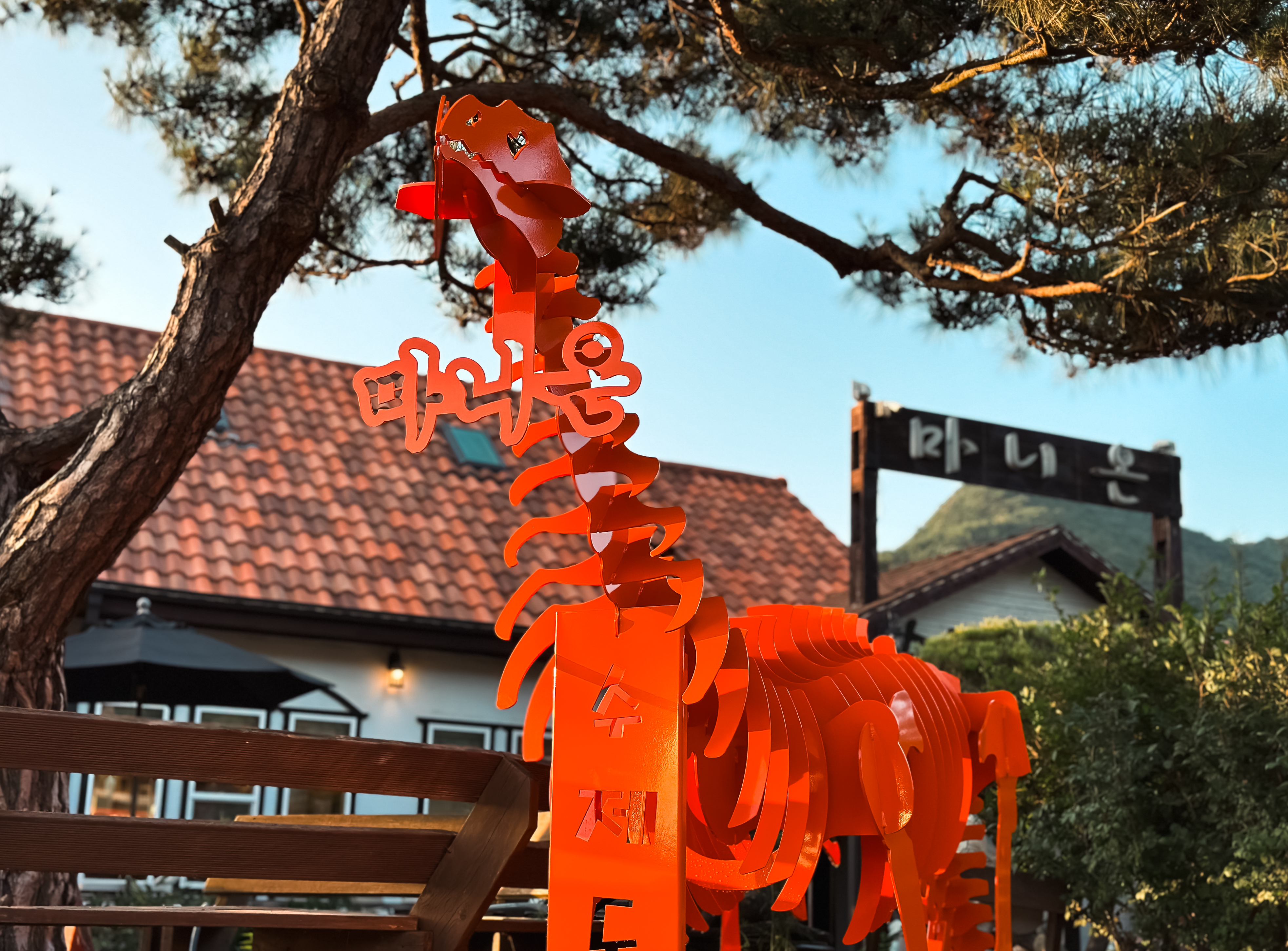 마니온의 위치는 인천 강화군 길상면 선두리 620-1 에 위치해 있습니다. 돈까스 맛집 마니온은 제 블로그와 인스타그램(@geniusjw_official)에 여러 차례 소개해드린 적이 있는 가게인데, 아무래도 여름에는 냉모밀을 먹어줘야겠죠? 최근에 마니온에 방문해 보니 어린 자녀를 데리고 오시는 부모님들이 많은지, 가게 앞을 공룡 모형이 지키고 있더라고요.