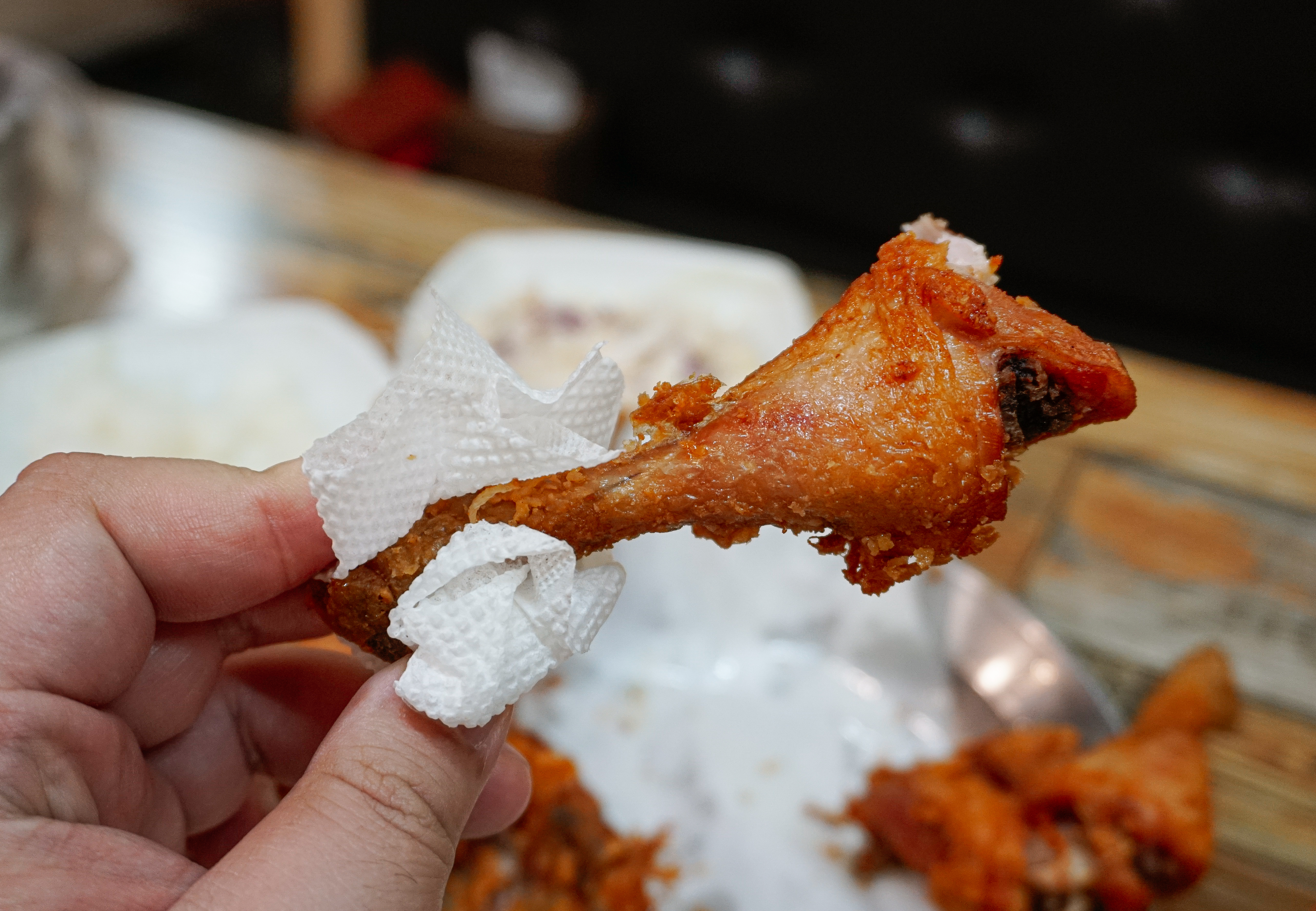 이제 궁금증도 해결되었으니 치킨을 먹어봐야겠죠. 사실 보드람치킨은 얇고 바삭한 튀김옷과 은은하게 느껴지는 양파(?)맛 염지가 특징인 치킨집입니다. 닭 크기는 크지는 않은데 적당히 먹기 좋은 크기의 치킨이었습니다. 왜 한 마리로 아쉬운지 느껴지는 크기라고 할까요??