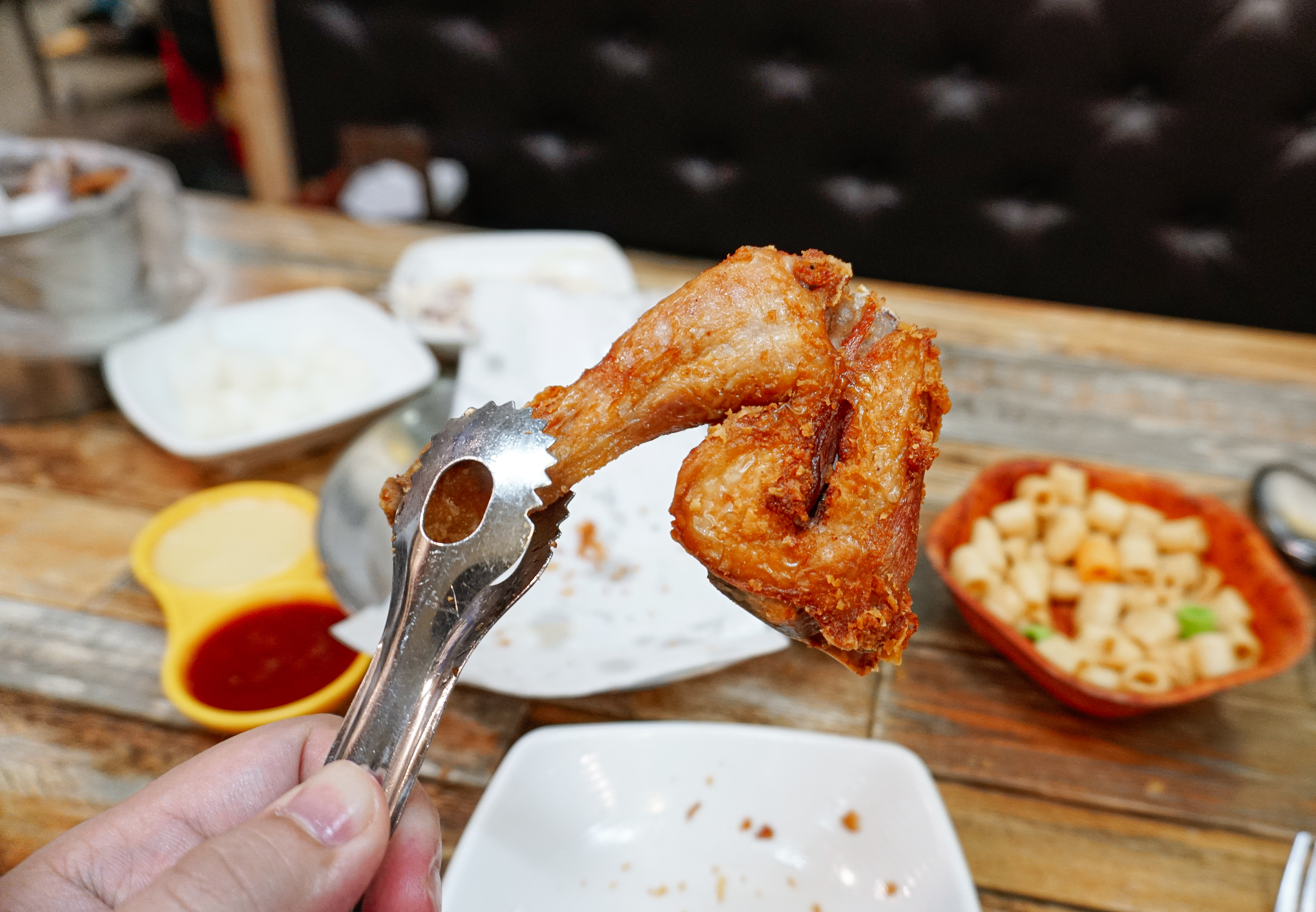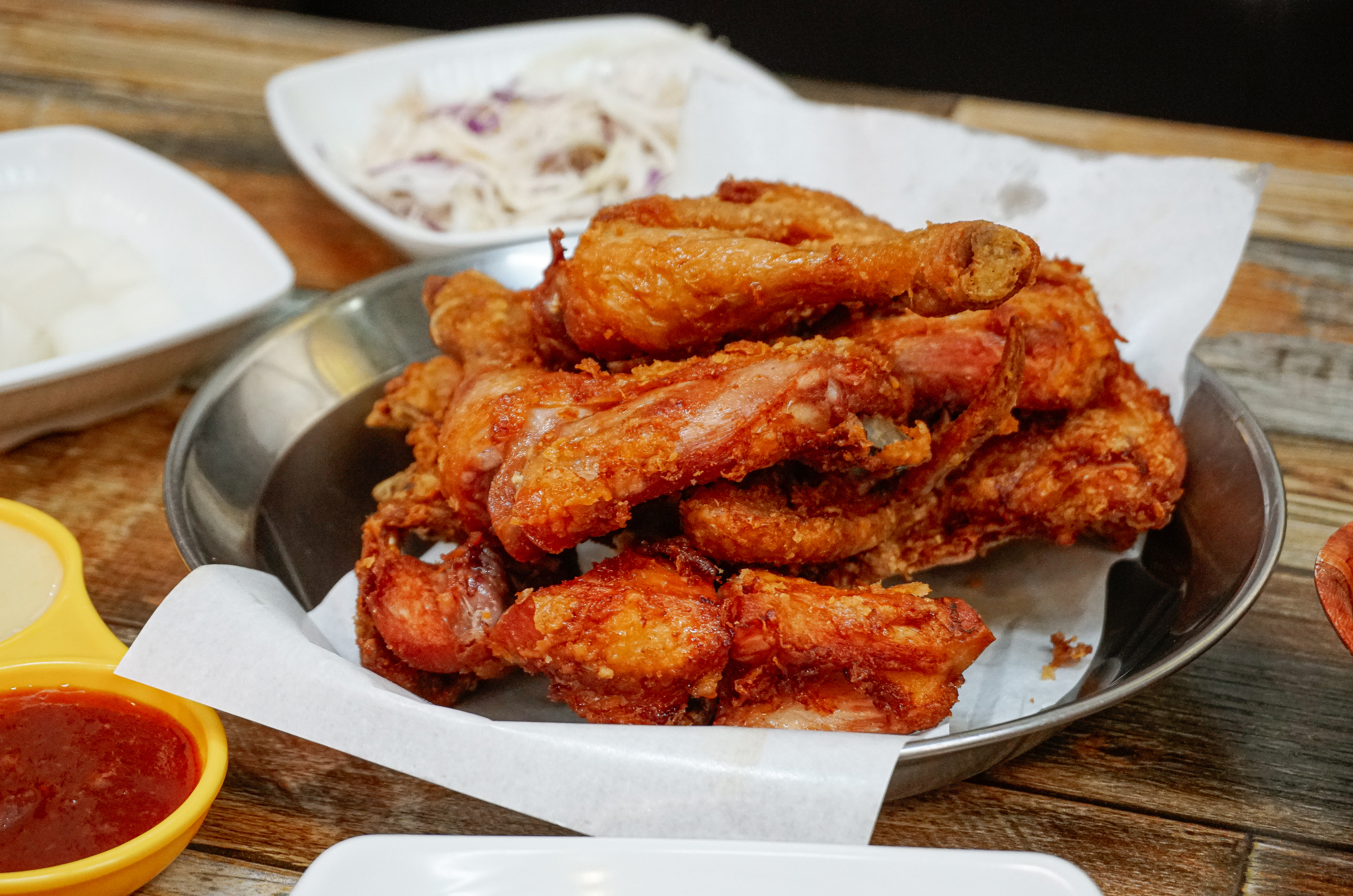 이제 궁금증도 해결되었으니 치킨을 먹어봐야겠죠. 사실 보드람치킨은 얇고 바삭한 튀김옷과 은은하게 느껴지는 양파(?)맛 염지가 특징인 치킨집입니다. 닭 크기는 크지는 않은데 적당히 먹기 좋은 크기의 치킨이었습니다. 왜 한 마리로 아쉬운지 느껴지는 크기라고 할까요??