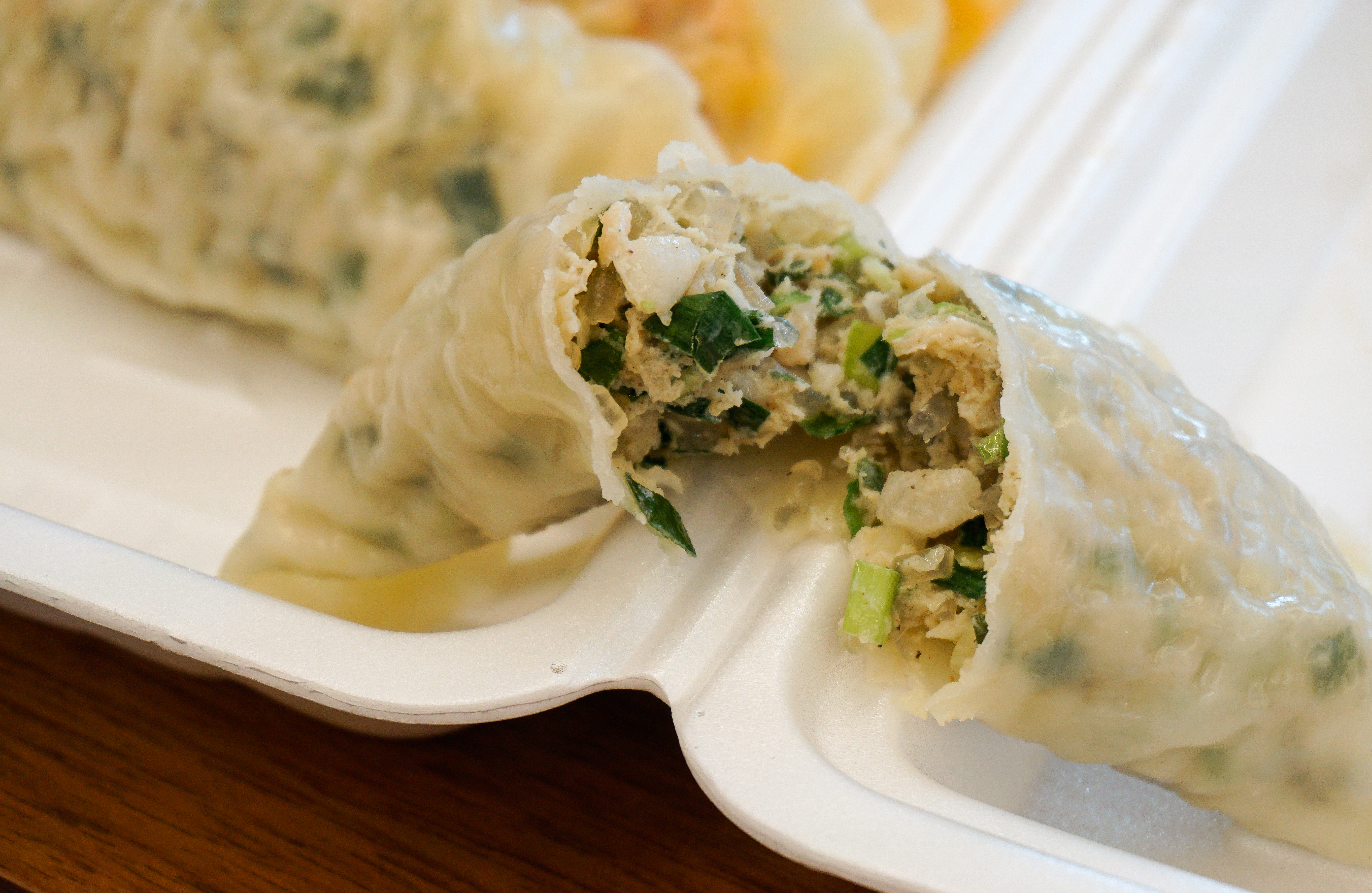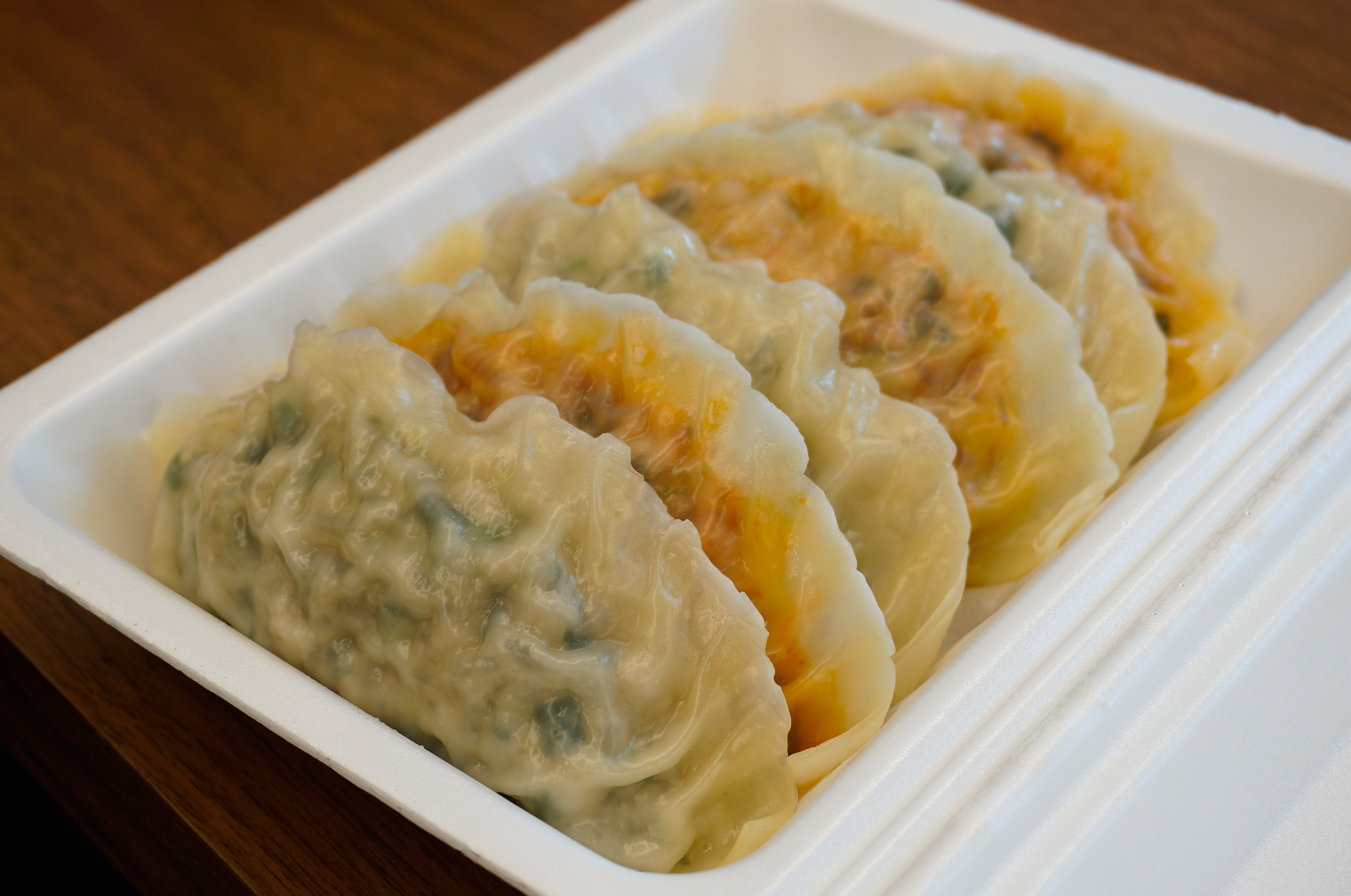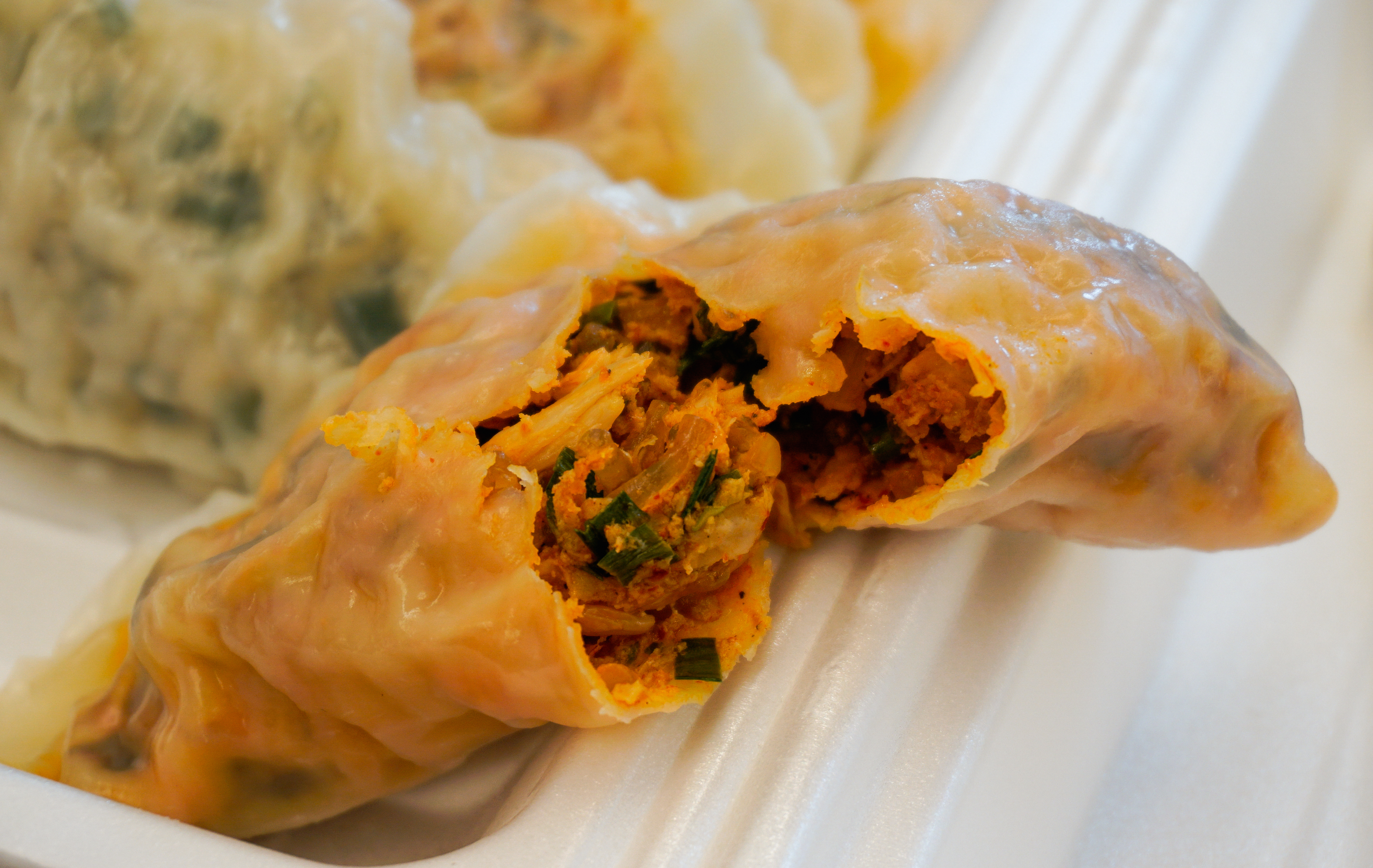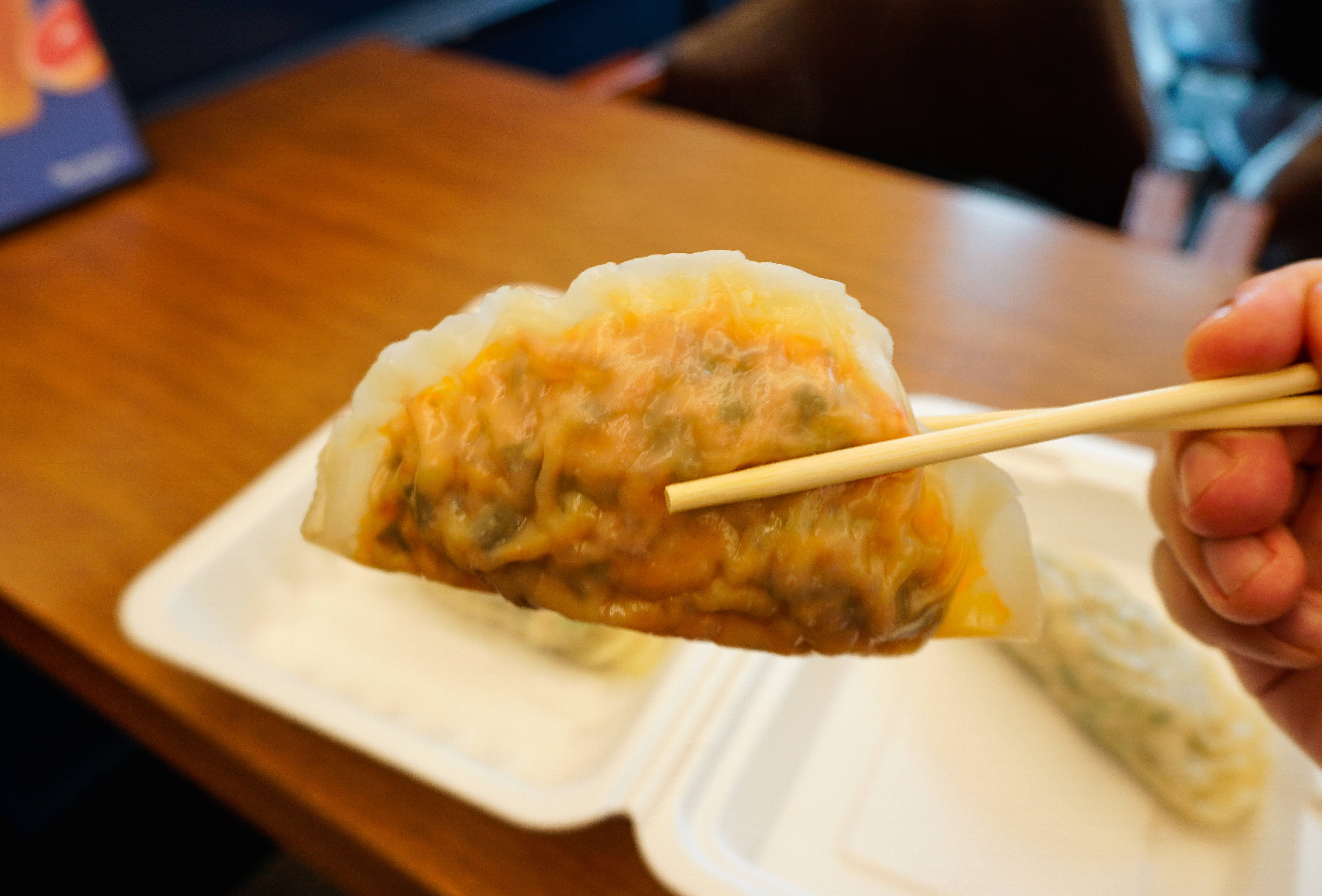 수경왕만두찐빵의 얇은피고기만두는 위와 같이 나왔습니다. 만두의 속이 비칠 정도로 얇은 만두피가 인상적이었고, 생각보다 쫀득한 식감의 만두피는 조금 오래 보관하여도 잘 찢어지지 않아서 좋더라고요.