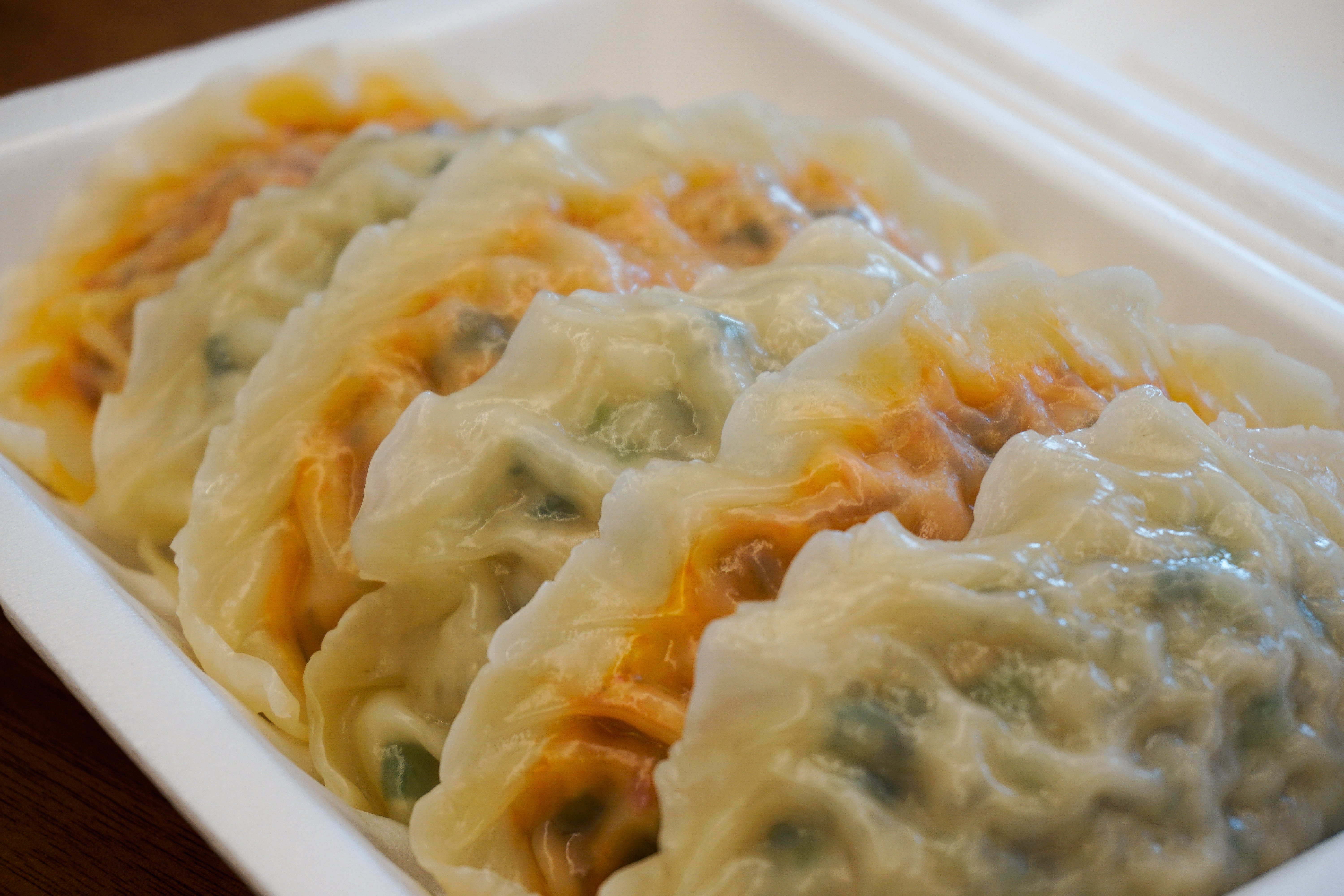 수경왕만두찐빵의 얇은피고기만두는 위와 같이 나왔습니다. 만두의 속이 비칠 정도로 얇은 만두피가 인상적이었고, 생각보다 쫀득한 식감의 만두피는 조금 오래 보관하여도 잘 찢어지지 않아서 좋더라고요.