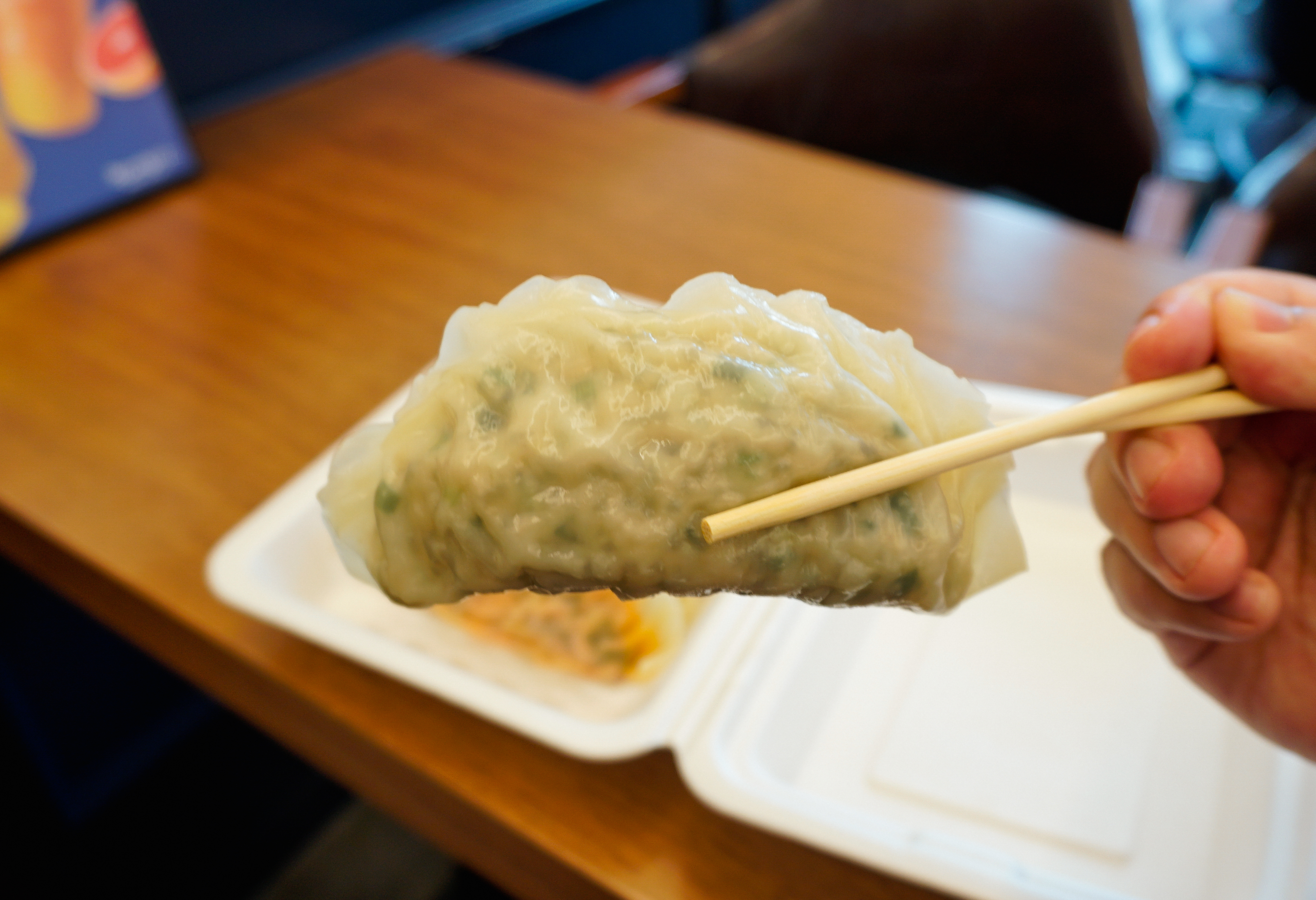 고기만두와 김치만두를 각각 손으로 찢어보았습니다. 만두소는 당면과 채소 고기가 들어가 있었고, 김치만두는 매콤한 양념의 김치가 추가로 들어있었습니다. 보통 만두 먹을 때 마늘(?) 같은 재료들 때문에 먹고 나서 트림(?)을 하면 고약한 냄새가 나는데, 수경왕만두찐빵의 만두는 그런 게 덜 하고 담백한 느낌이었습니다. 저는 좀 더 진한 맛을 좋아하는데, 만두에 육즙도 좀 적은 것 같고 맛이 굉장히 단조롭더라고요.