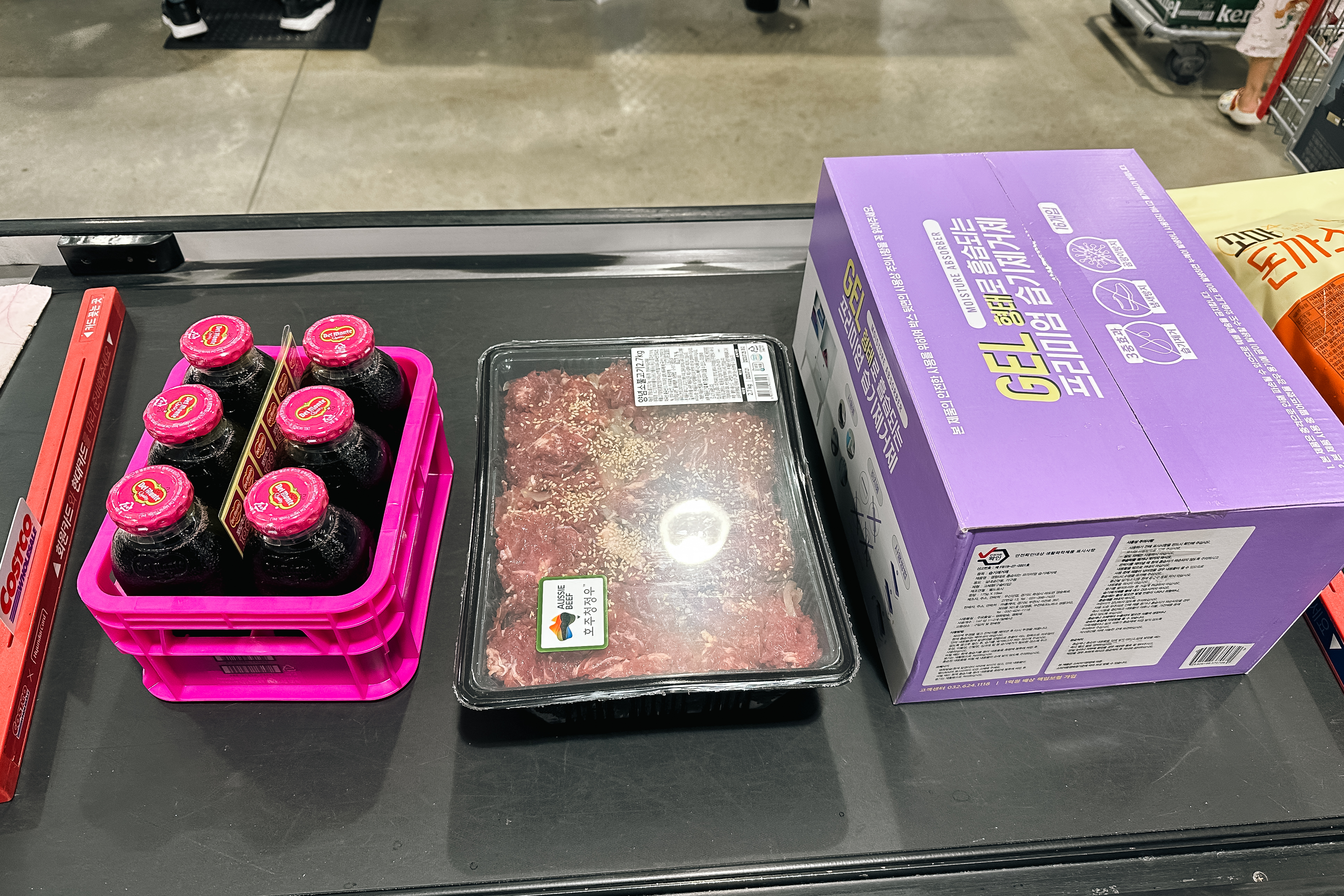 코스트코에서 델몬트 미니병에 담긴 포도주스를 구입하고, 동네 편의점에서 주스병에 담을 보리차도 구입했습니다. 겸사겸사 요즘같이 잦은 장마를 대비해 차에다 두고 쓸 습기제거제와 가족들이랑 같이 먹을 소불고기도 좀 샀습니다.