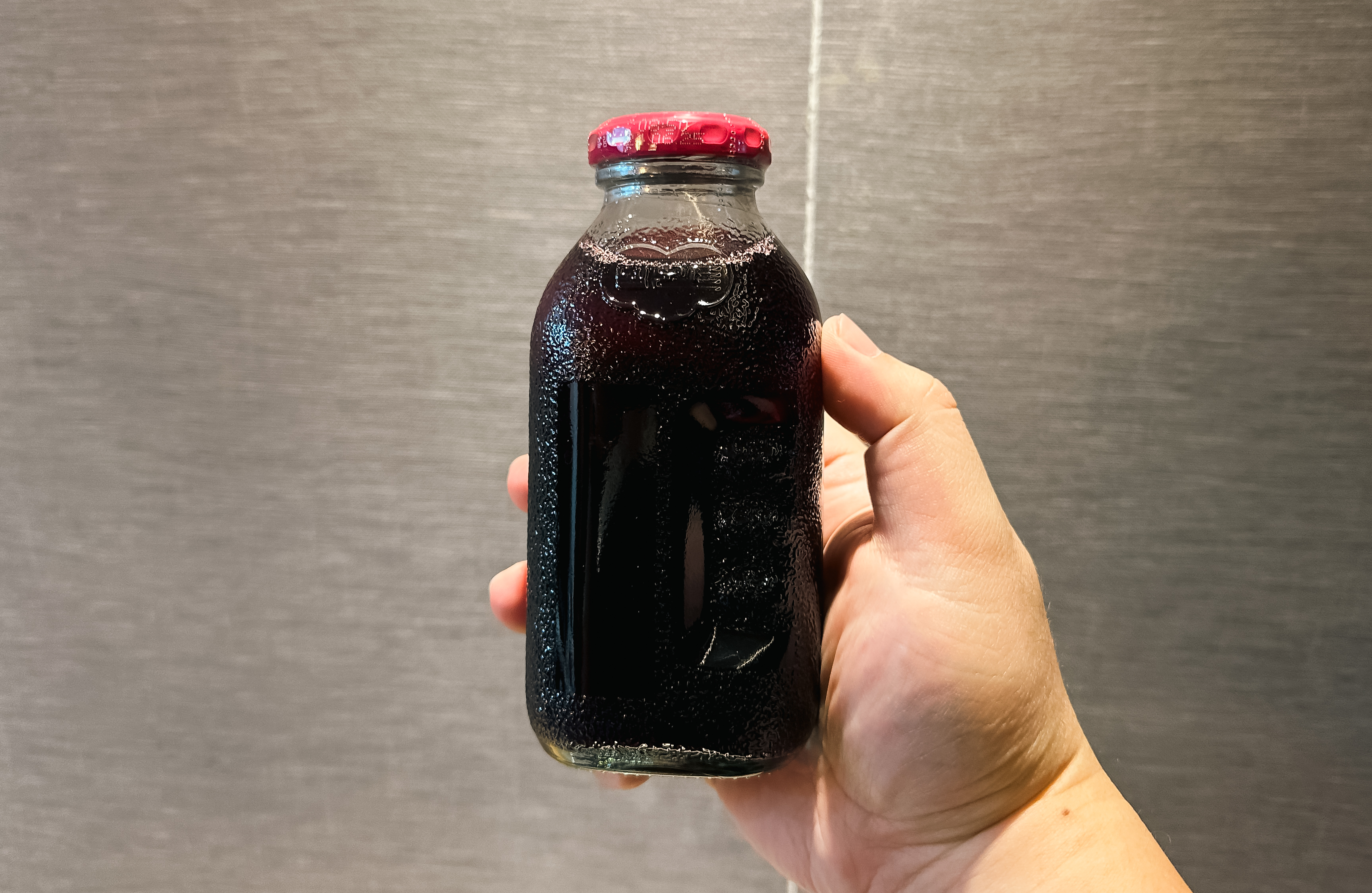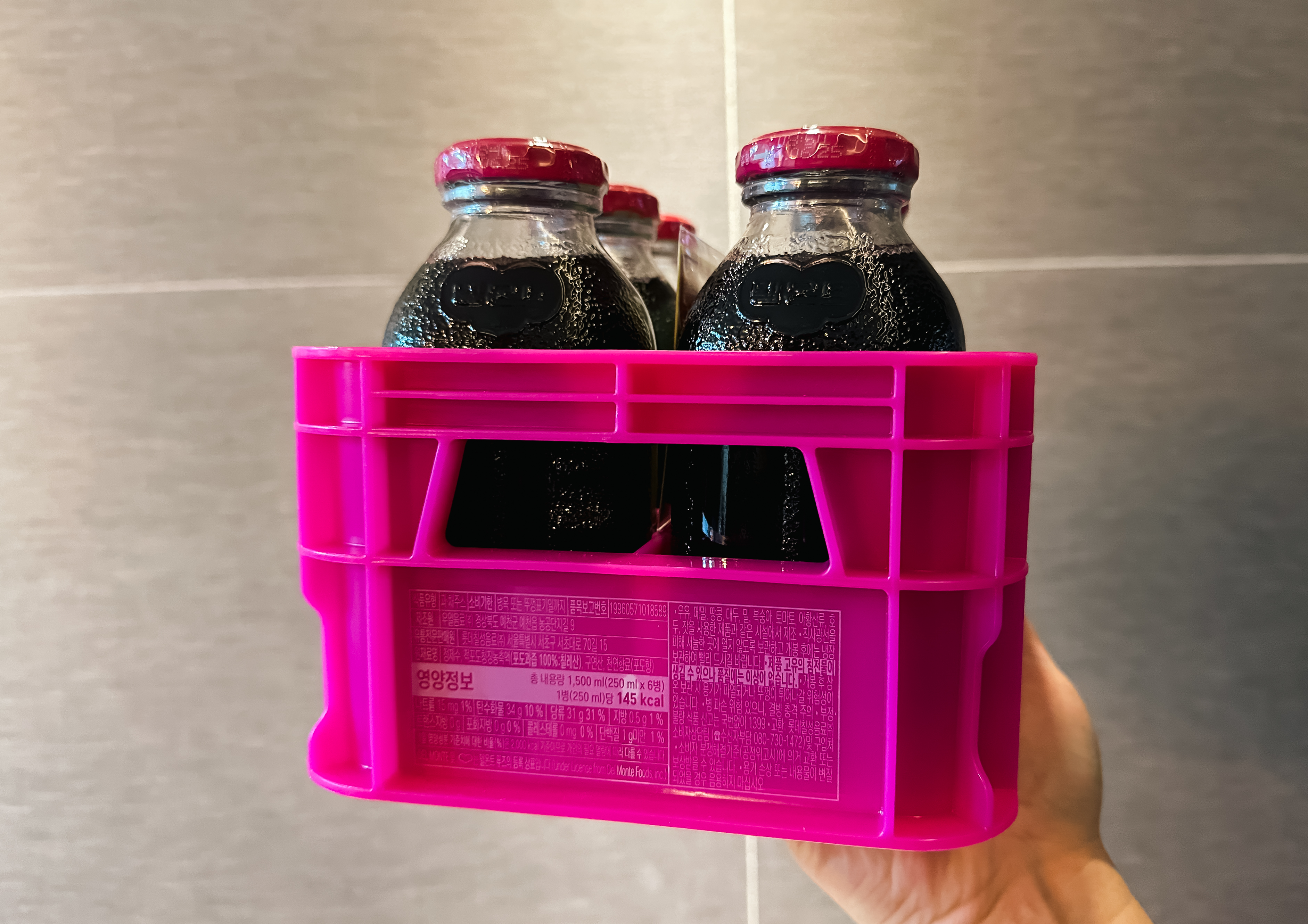 델몬트 미니 주스병과 주스병을 담은 트레이가 보라색으로 참 이쁩니다. 유리병 1개의 용량은 250ml 였고, 유리병에 붙일 스티커도 별도로 들어있었습니다. 스티커를 붙여 병을 꾸며줄까도 싶었지만, 어차피 병을 세척하고 보리차를 담을 거라 스티커는 따로 보관하기로 했습니다. 포도 주스를 따로 덜어내고 델몬트 미니병을 깨끗이 씻은 다음 말려주었습니다.