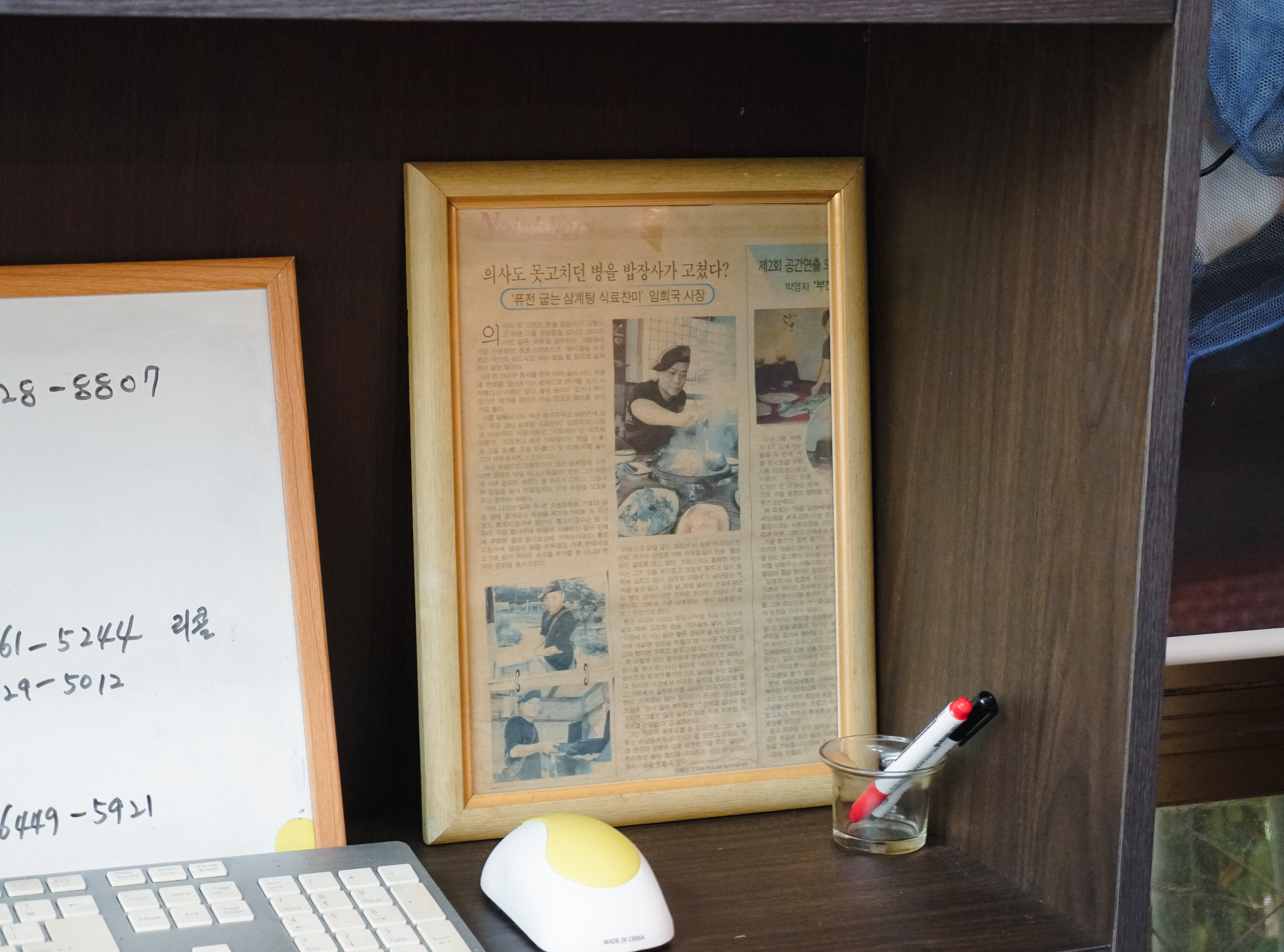 퓨전 굽는 삼계탕은 경기 시흥시 월곶동 216-3 에 위치해 있었습니다. 영업시간은 평일 11:30~15:00, 주말 11:30~20:00 까지였습니다. 매주 월요일은 휴무로 운영된다고 합니다. 이용에 참고하시기 바랍니다. 가게 한편에는 식이요법으로 건강을 개선시킨다는 내용의 기사가 전시되어 있었습니다.