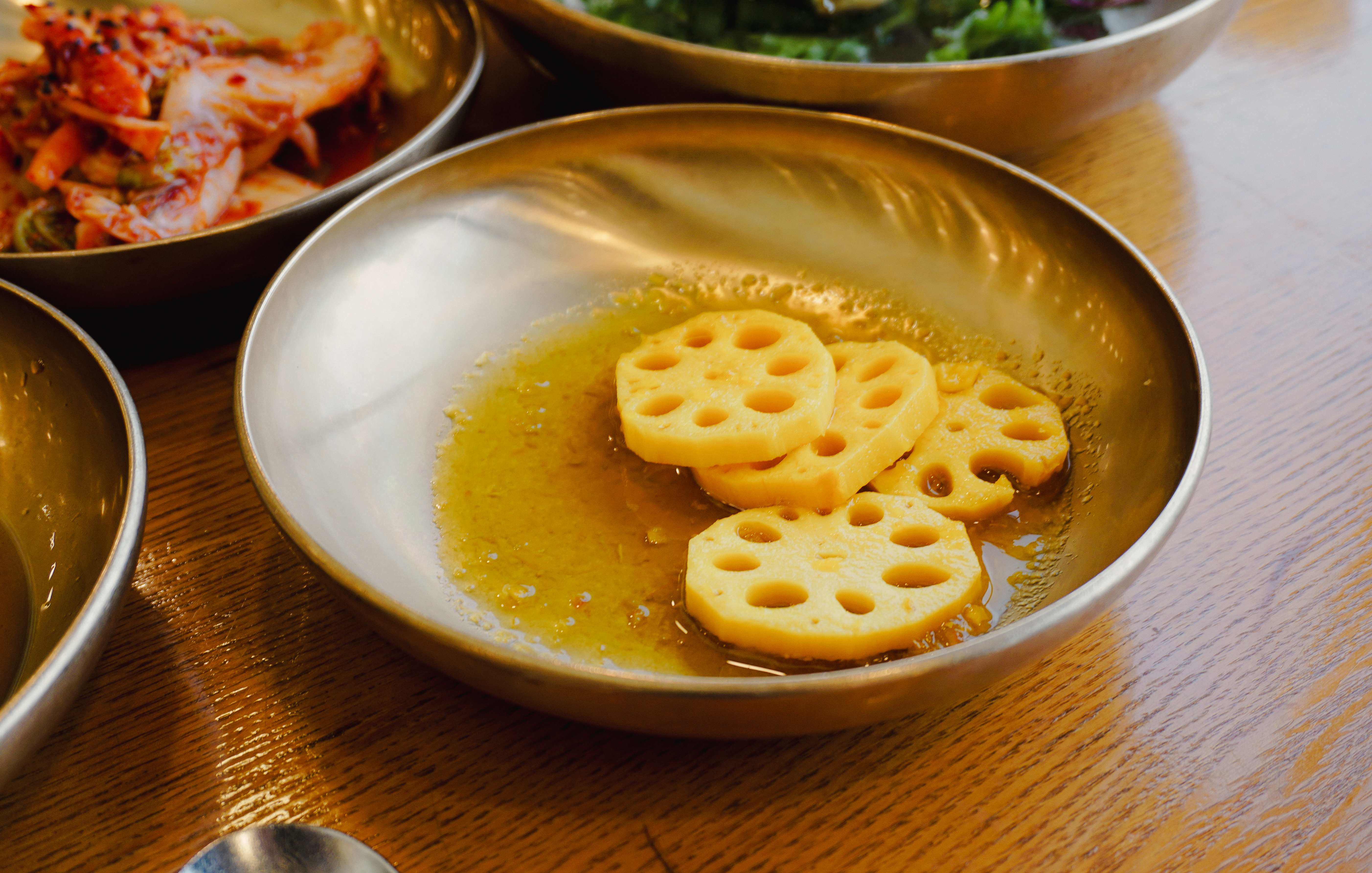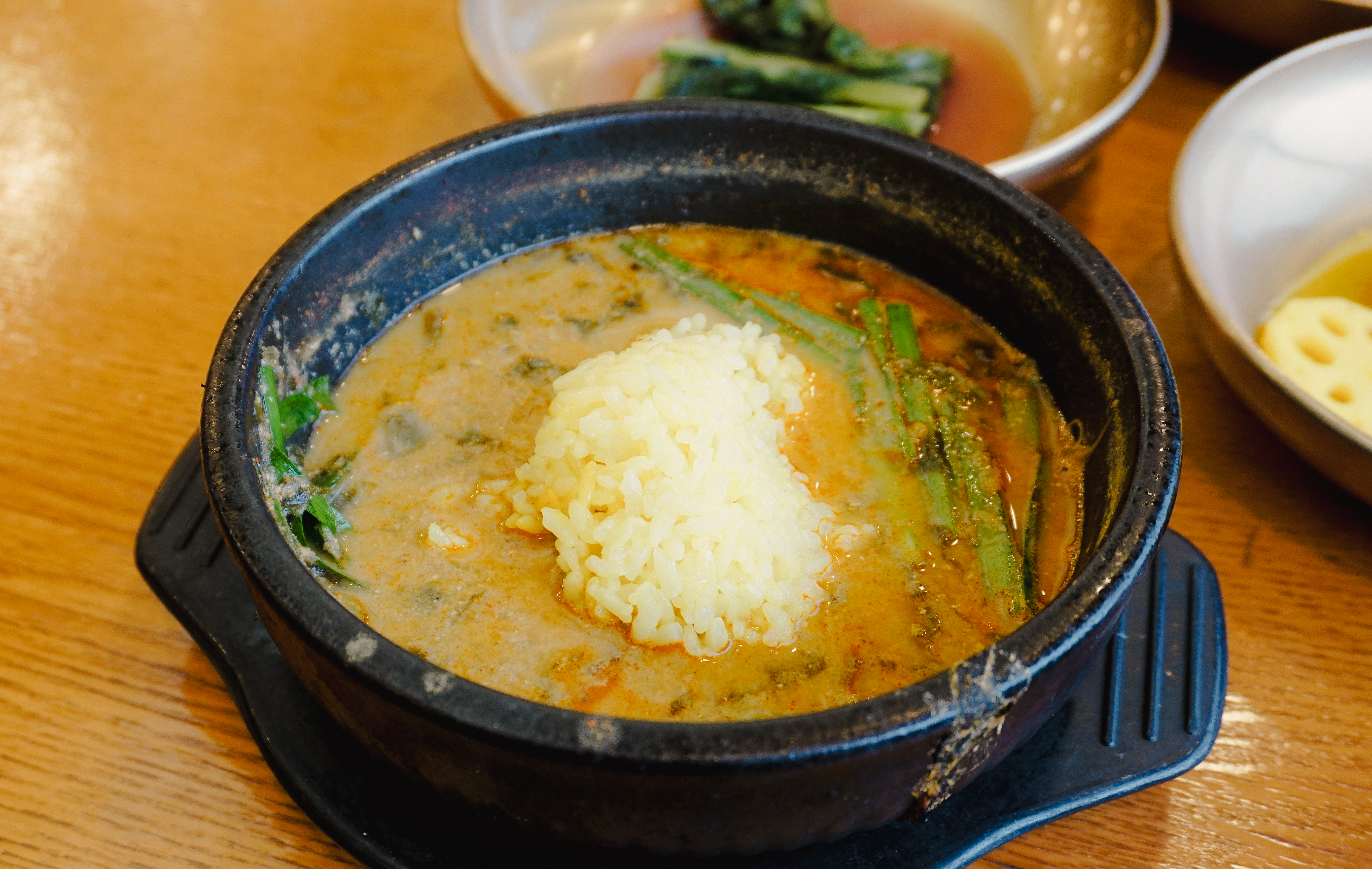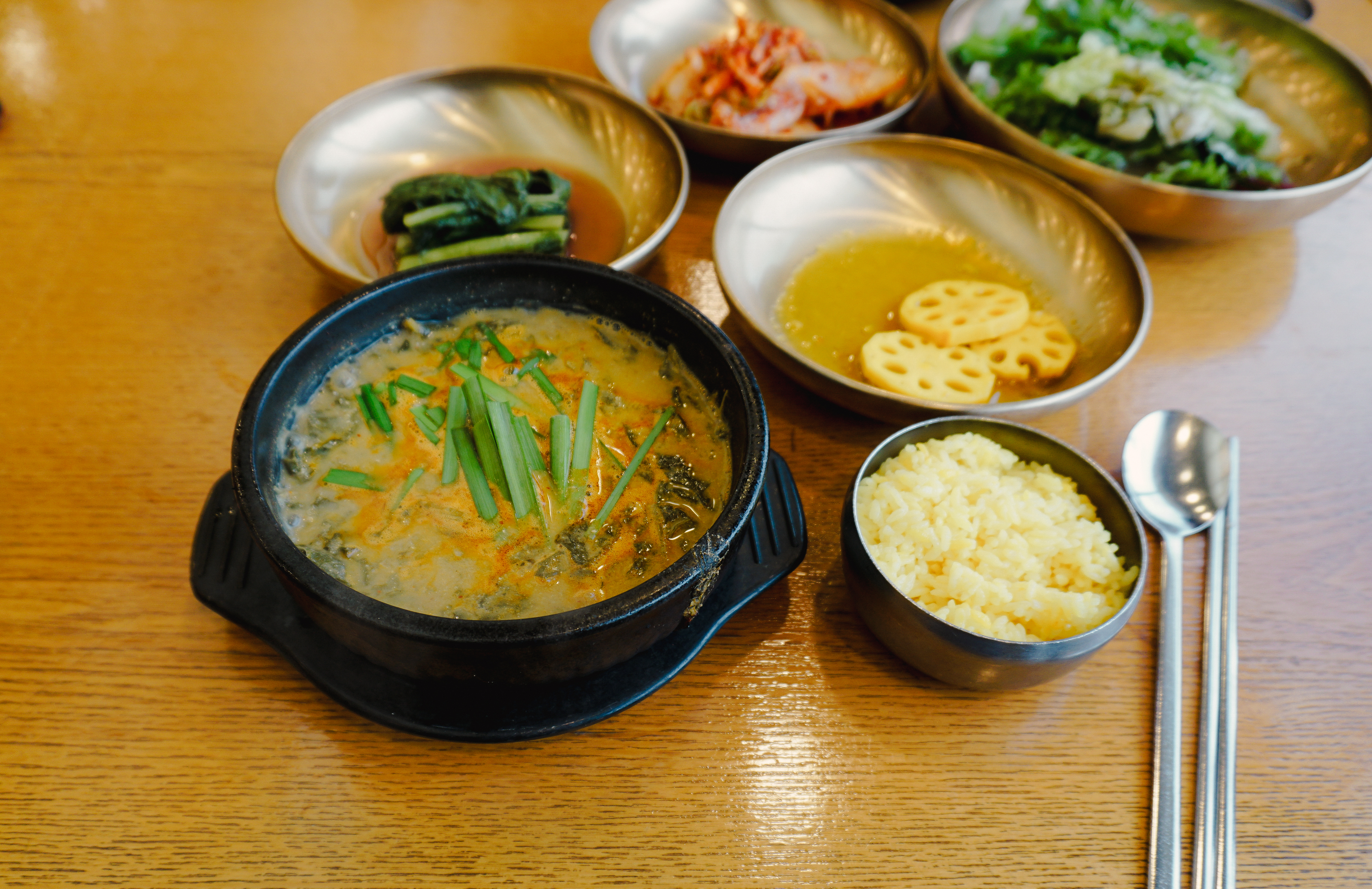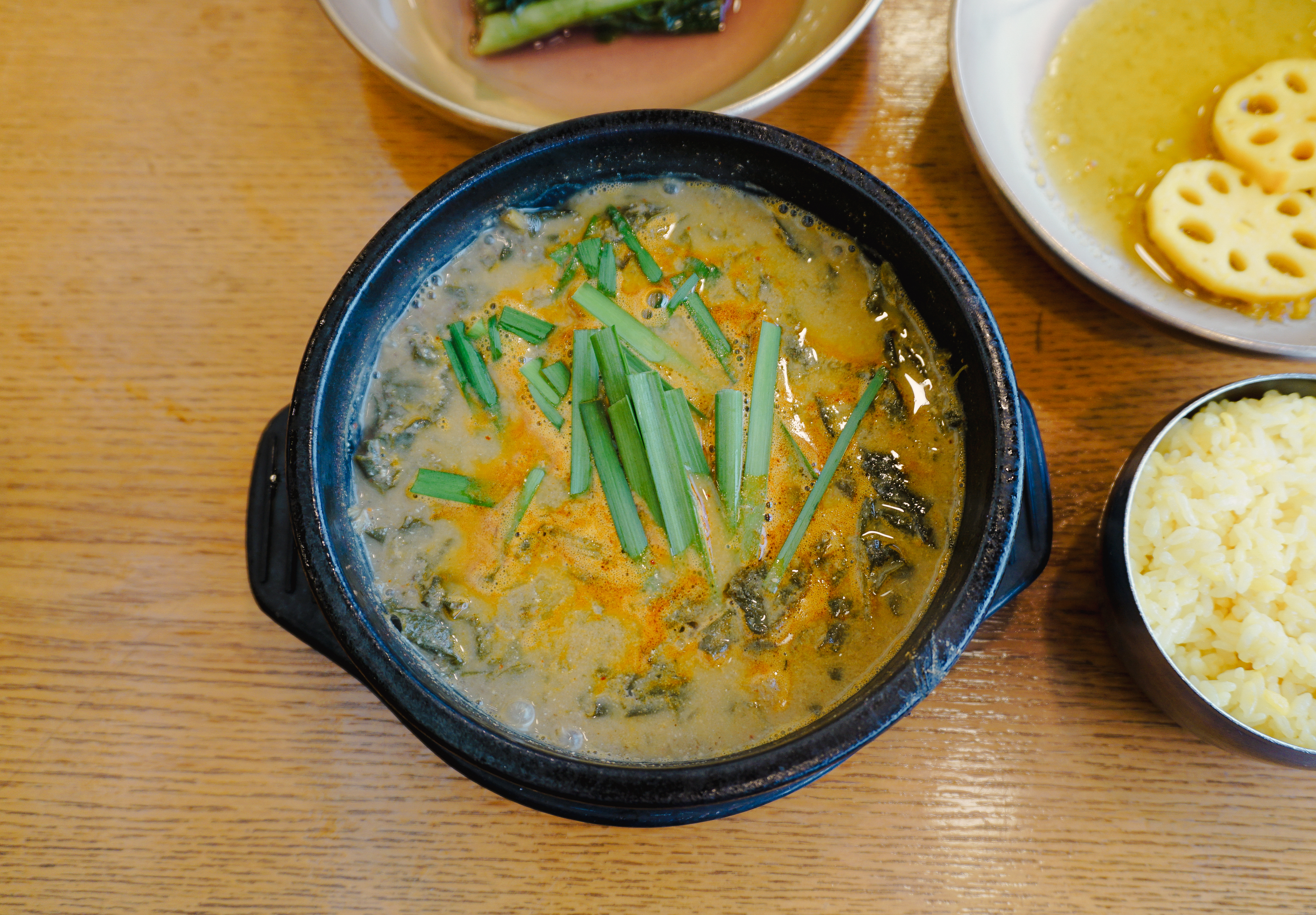 성남 청담 추어정의 메뉴는 위와 같이 나왔습니다. 노란 빛깔의 강황밥과 함께 샐러드, 연근, 갓김치, 배추김치가 반찬으로 나왔는데 맛이 괜찮더라고요. 가장 중요한 추어탕을 자세히 살펴보실까요?