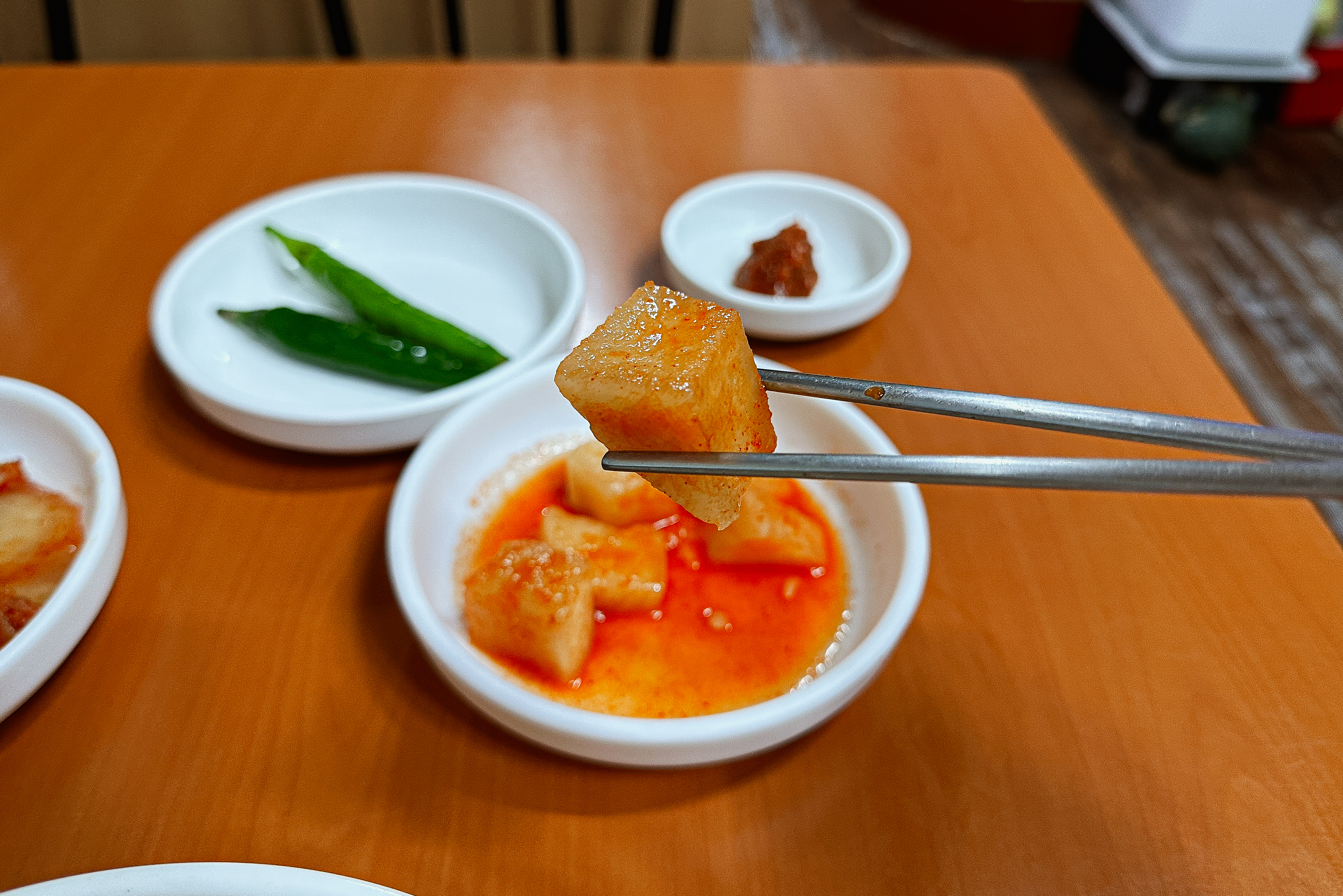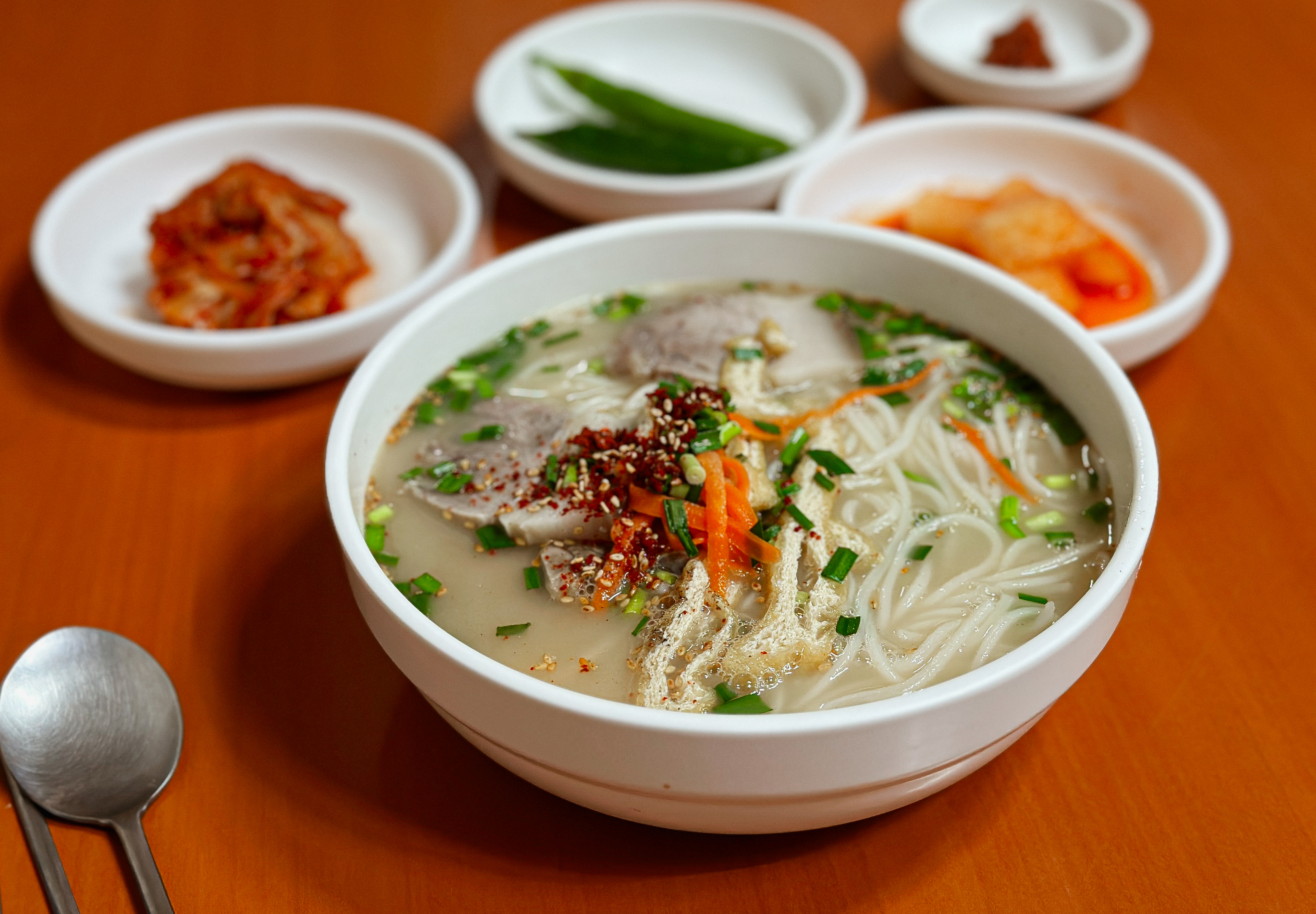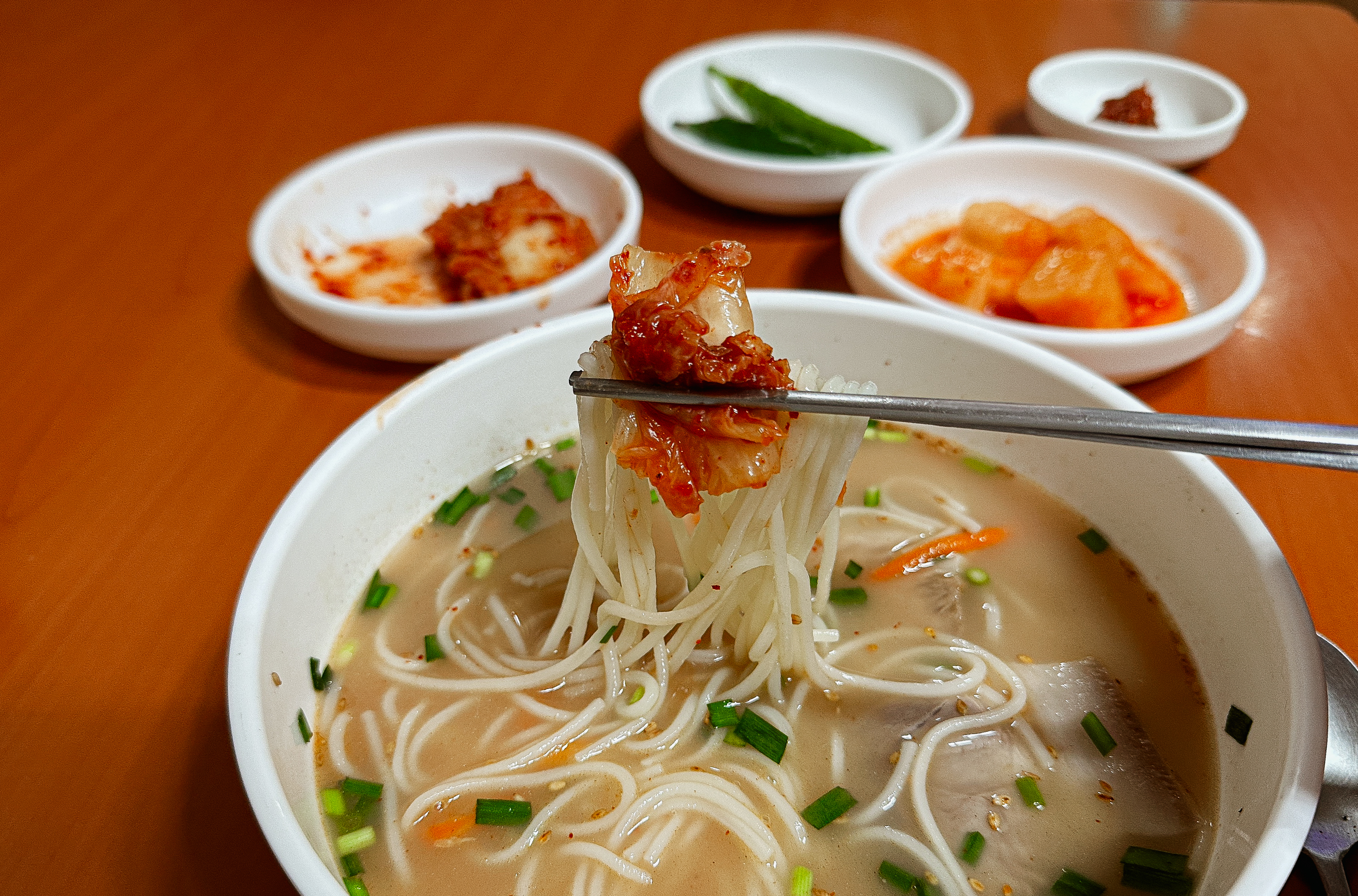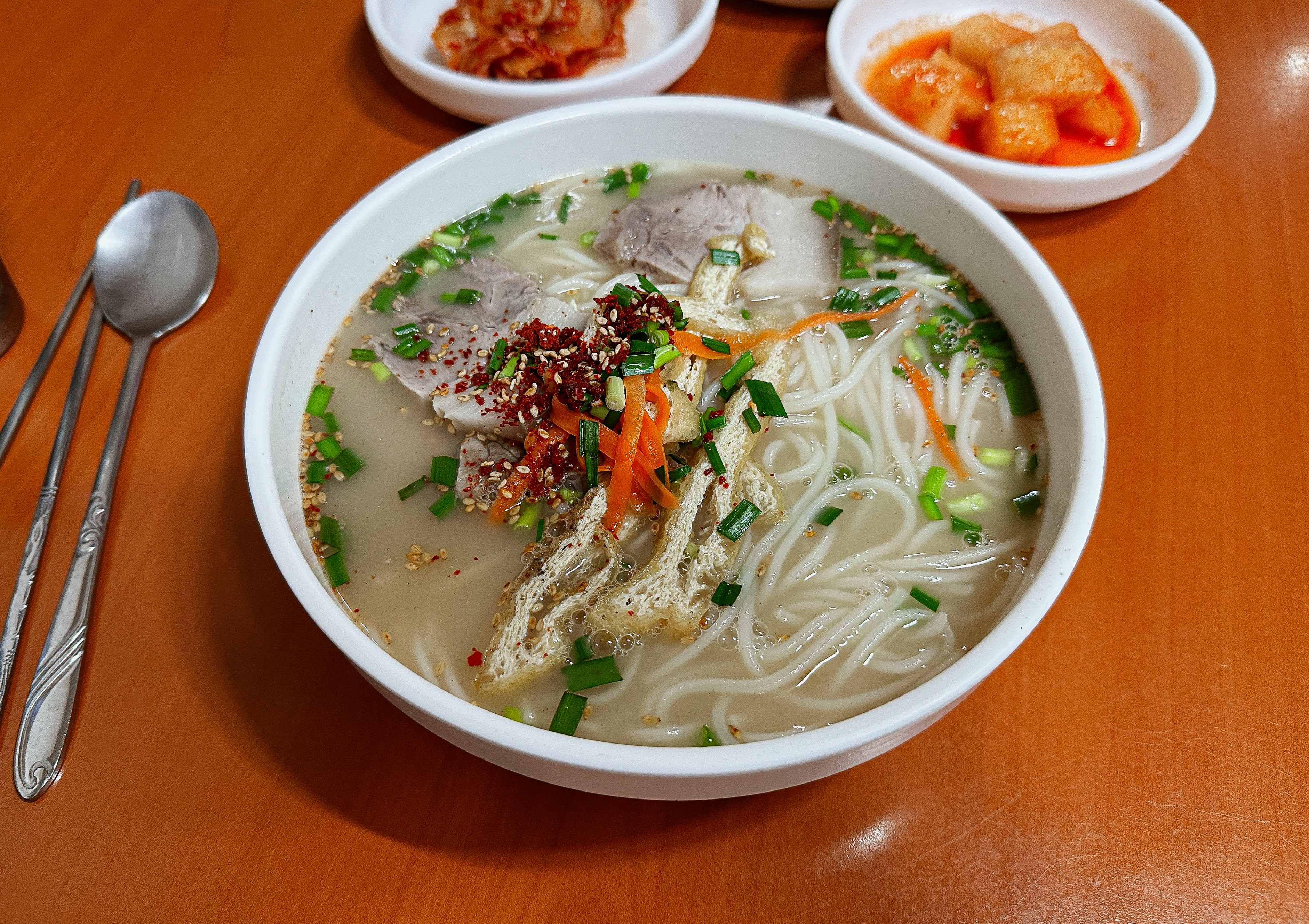 국수와 또 잘 어울리는 것이 배추김치였는데, 적당히 익은 김치는 양념도 맛있고 고기국수와도 잘 어울려서 좋았습니다. 자정에 가까운 시간에 우연히 발견한 가게였지만 생각보다 맛있어서 만족스럽게 이용한 가게였습니다.