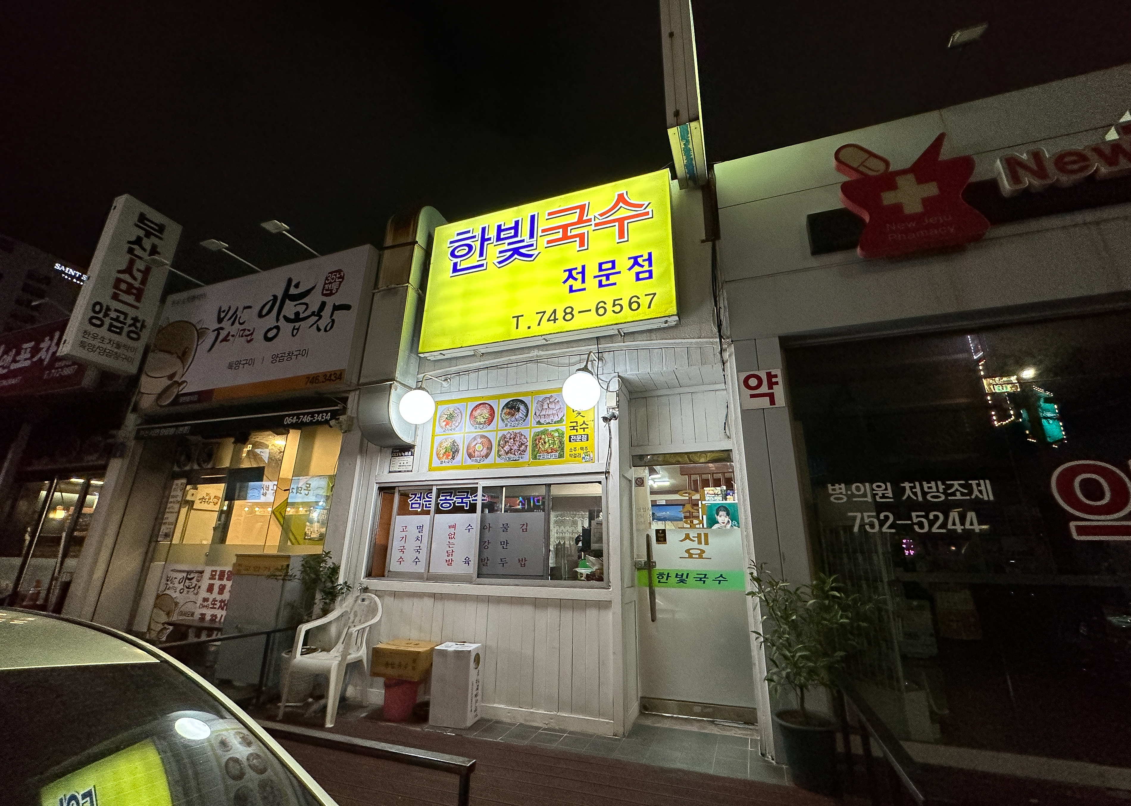 제주도 한빛국수는 제주공항 인근 연동의 번화가에 위치해 있어 심야시간에도 식사를 할 수 있는 가게였습니다. 저는 이 날 근처 호텔에 숙소를 잡고 늦은 저녁에 허기가 져서 식사할 만한 가게를 찾아보다가 한빛국수를 우연히 발견하게 되어 식사하러 들어갔습니다.