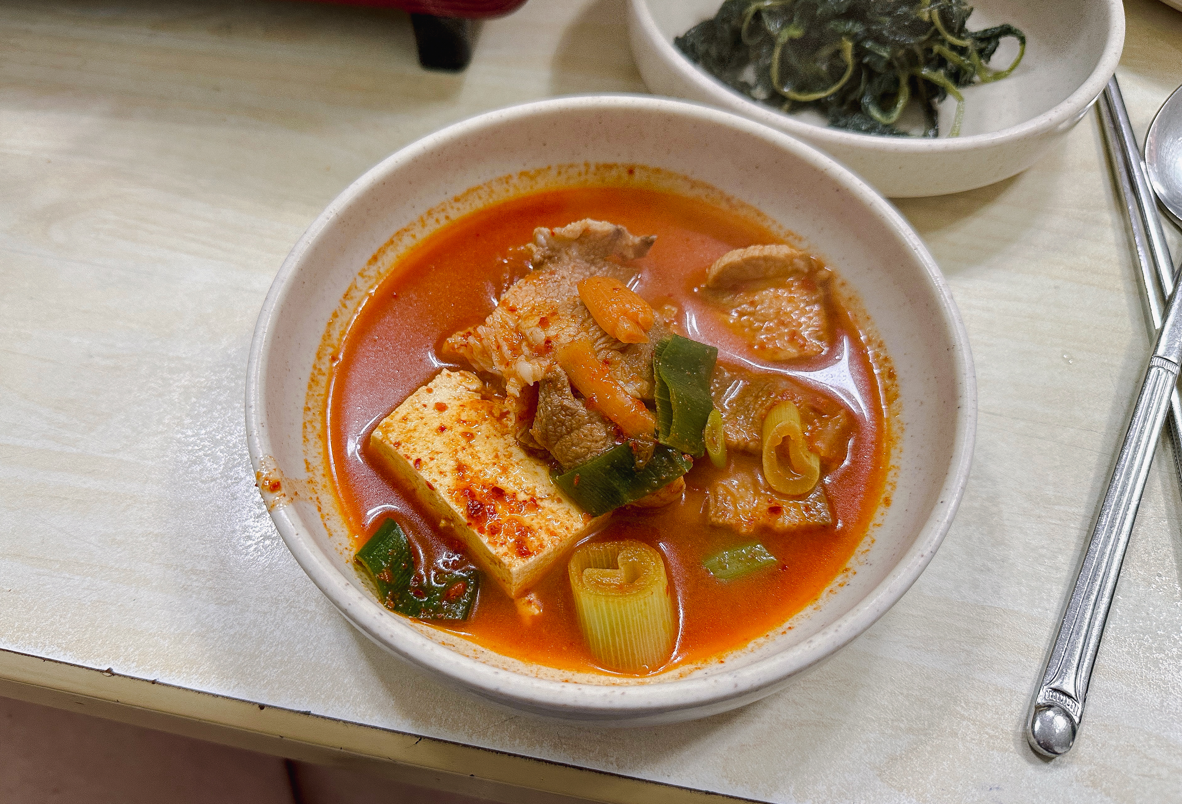 ※ 저희는 '김치찌개'와 '오징어볶음'을 주문했습니다.