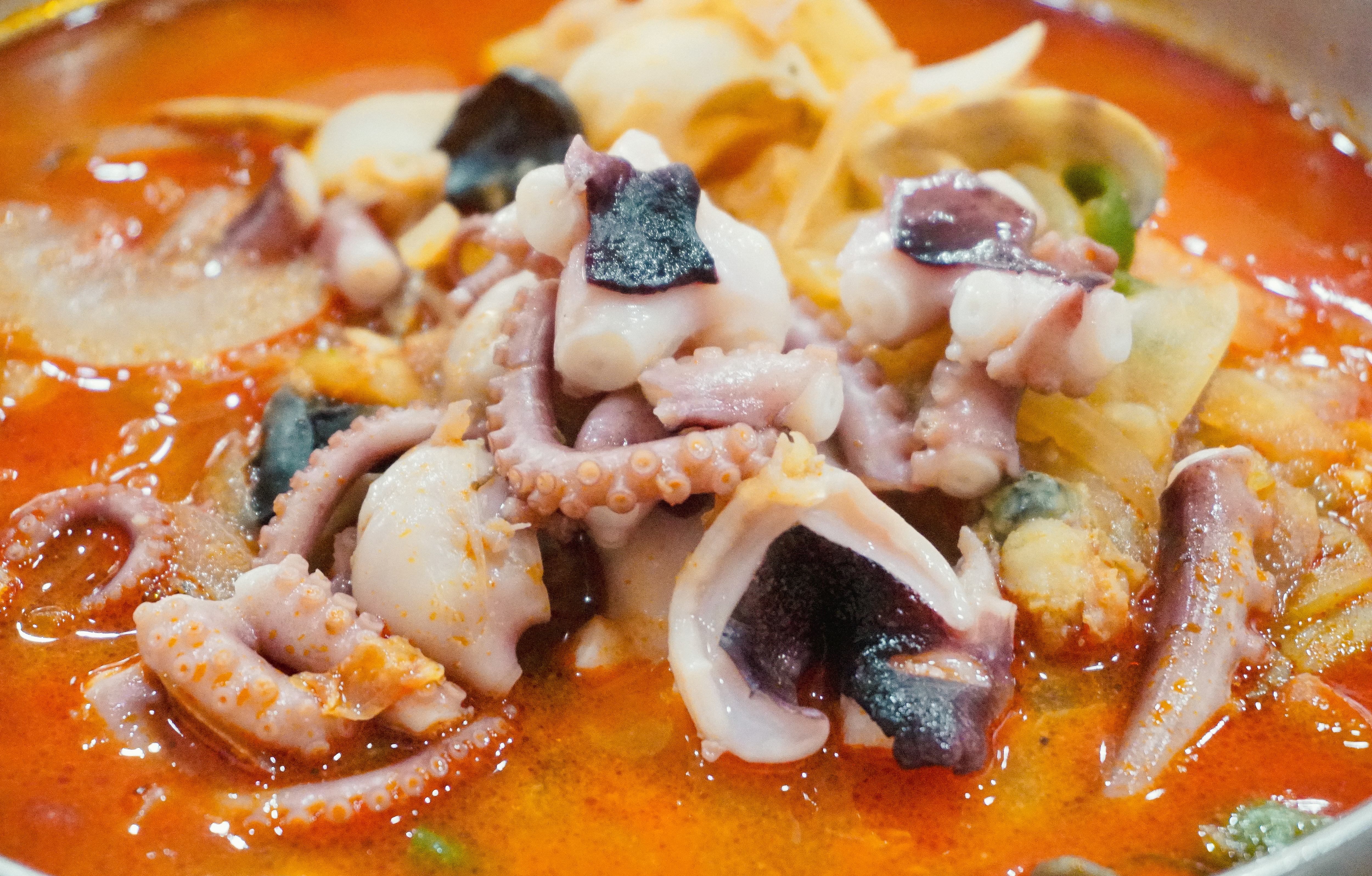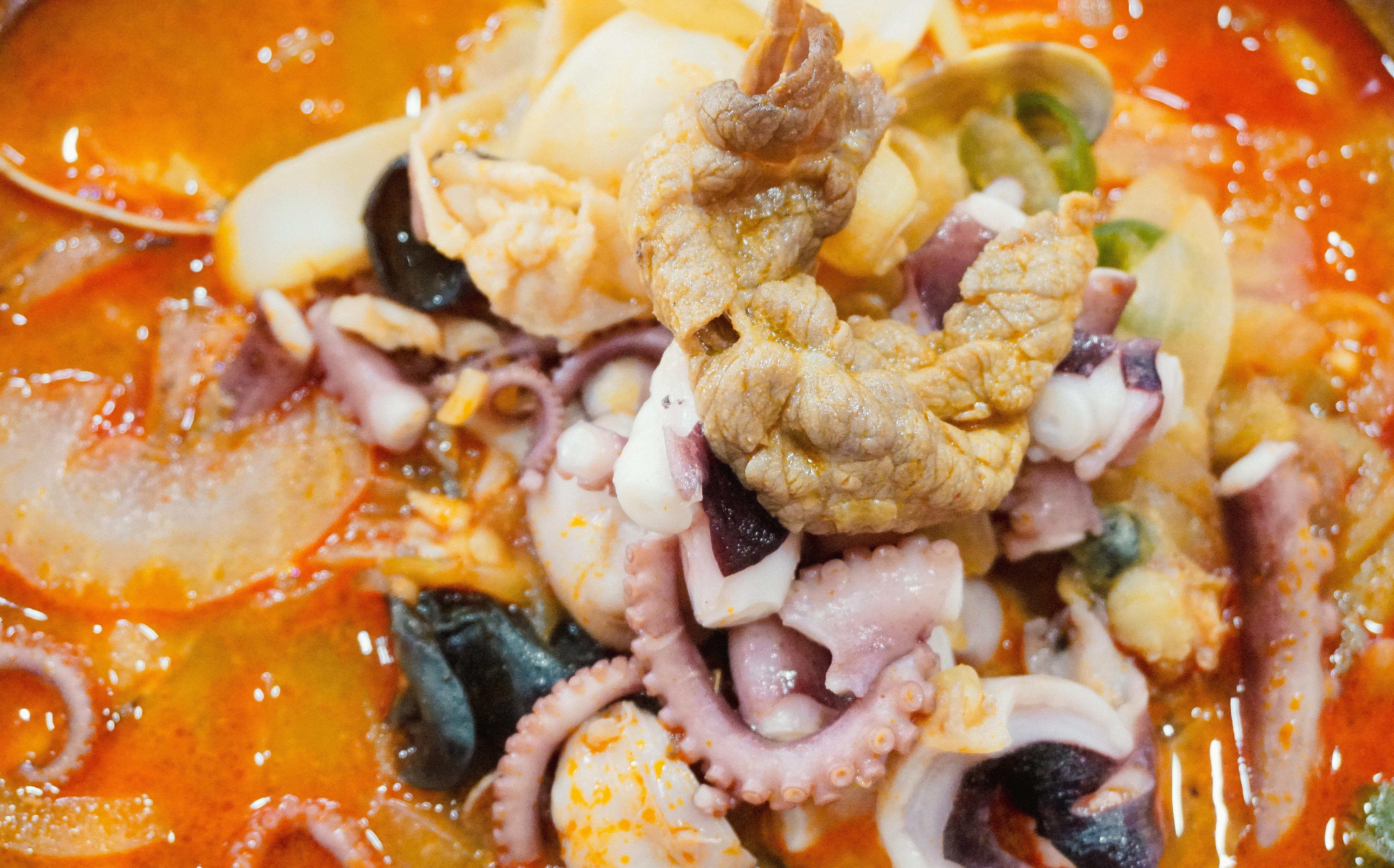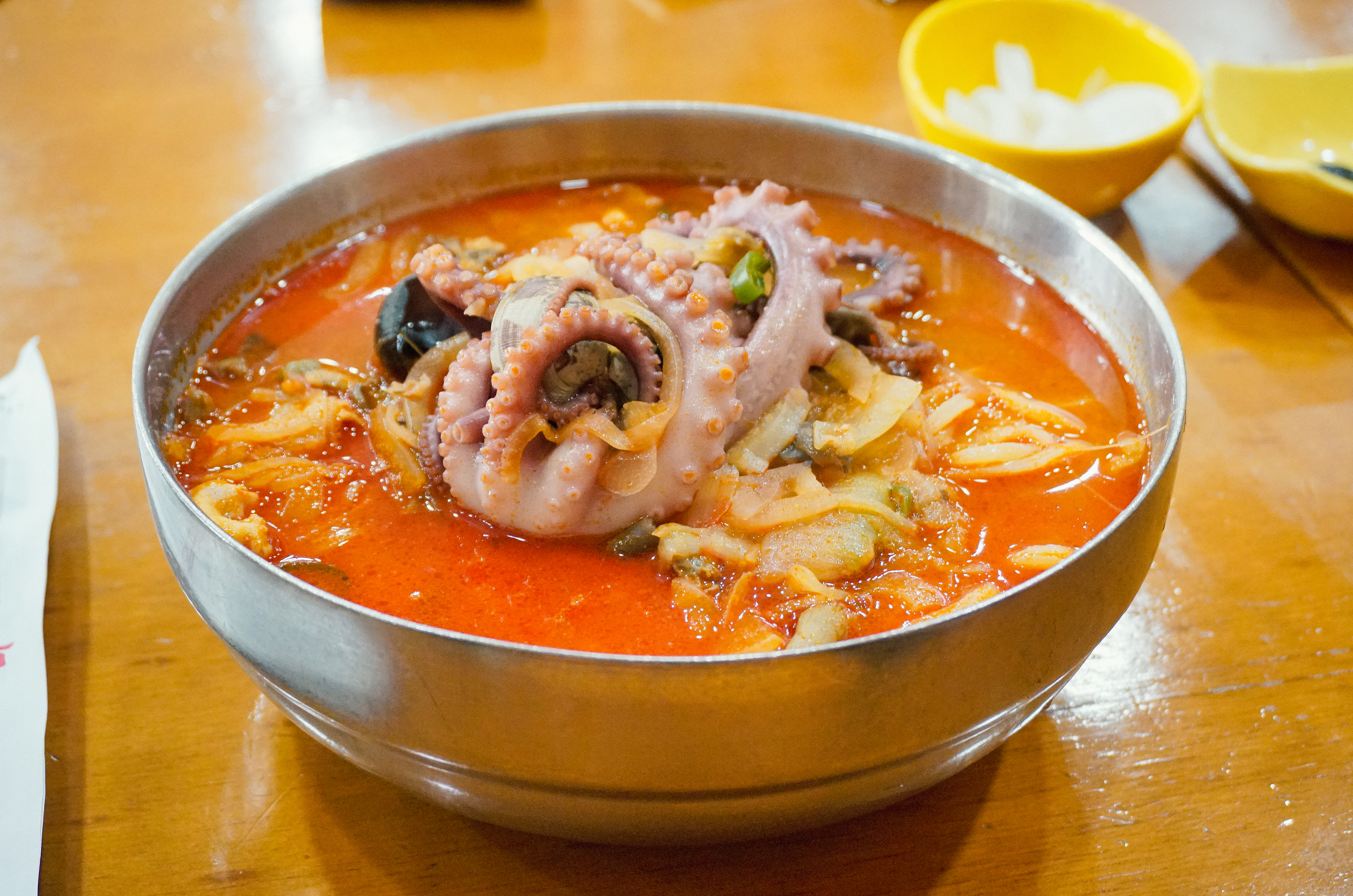 저희는 동춘옥의 차돌짬뽕과 낙지짬뽕을 주문했습니다. 낙지짬뽕은 금어기라 생낙지가 아니라 냉동을 쓴다고 했는데, 그래도 부드럽고 쫄깃한 식감의 낙지가 맛있었습니다. 처음에는 낙지가 통째로 나오는데, 가위로 먹기 좋게 잘라서 먹었습니다.