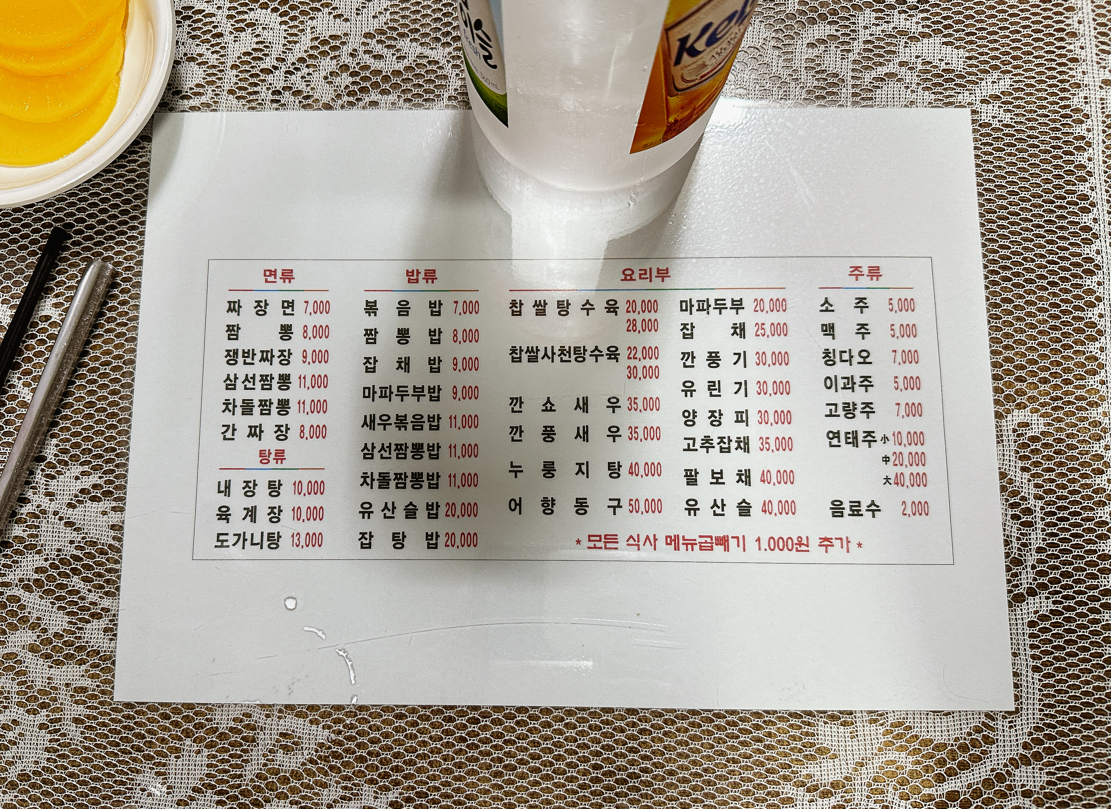 중국집에서 내장탕이라니 조금 특이한 경험이었지만, 맛있게 먹었습니다. 식사 내내 꿀빵부터 포도까지 다양하게 서비스 메뉴를 내어주셨고, 사장님도 친절하고 음식도 잘 나오는 편이었습니다. 이 날은 해장을 위해 내장탕으로 선택했는데, 다른 메뉴들도 기대가 되더라고요. 나중에 한 번 더 찾아가 봐야겠습니다.