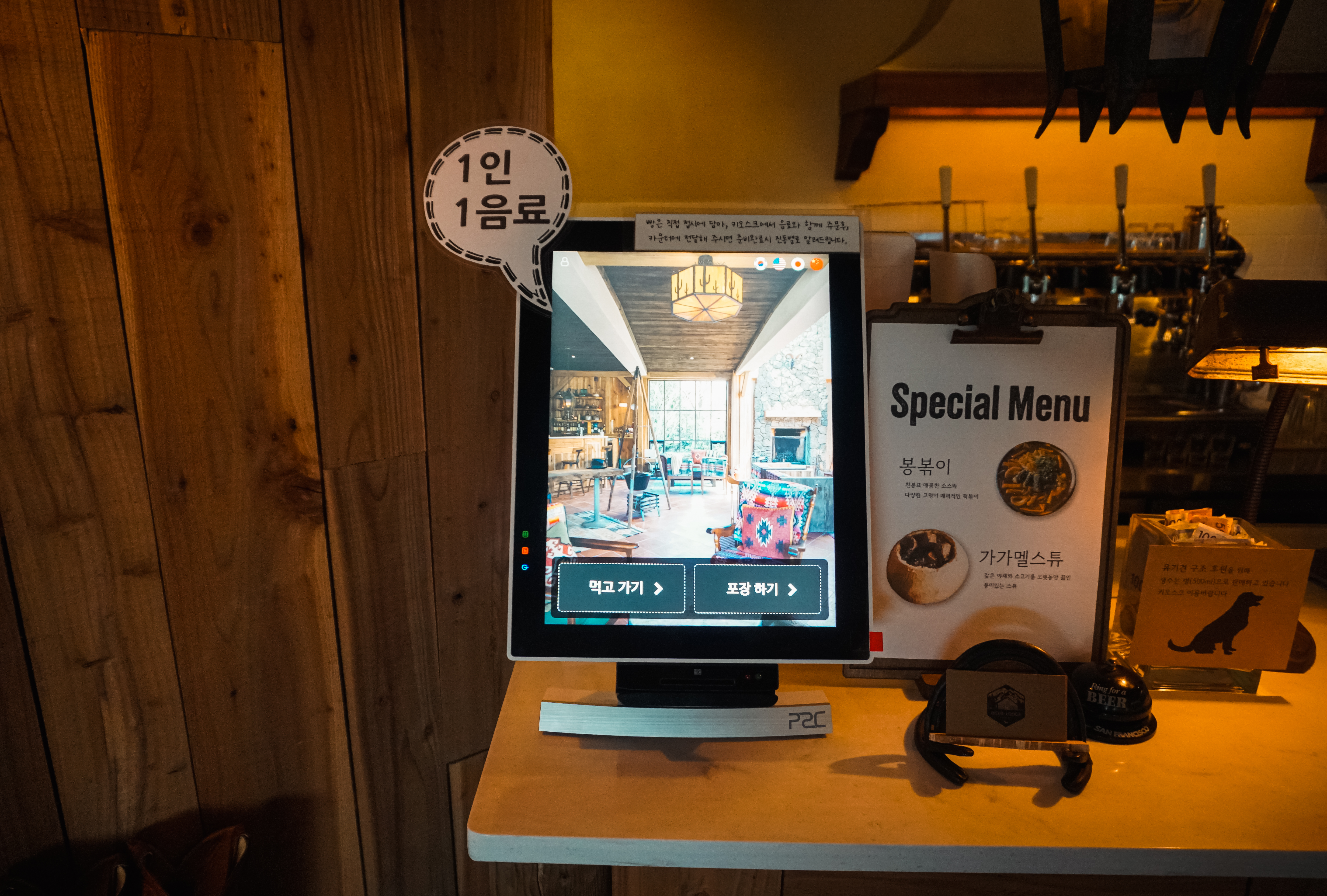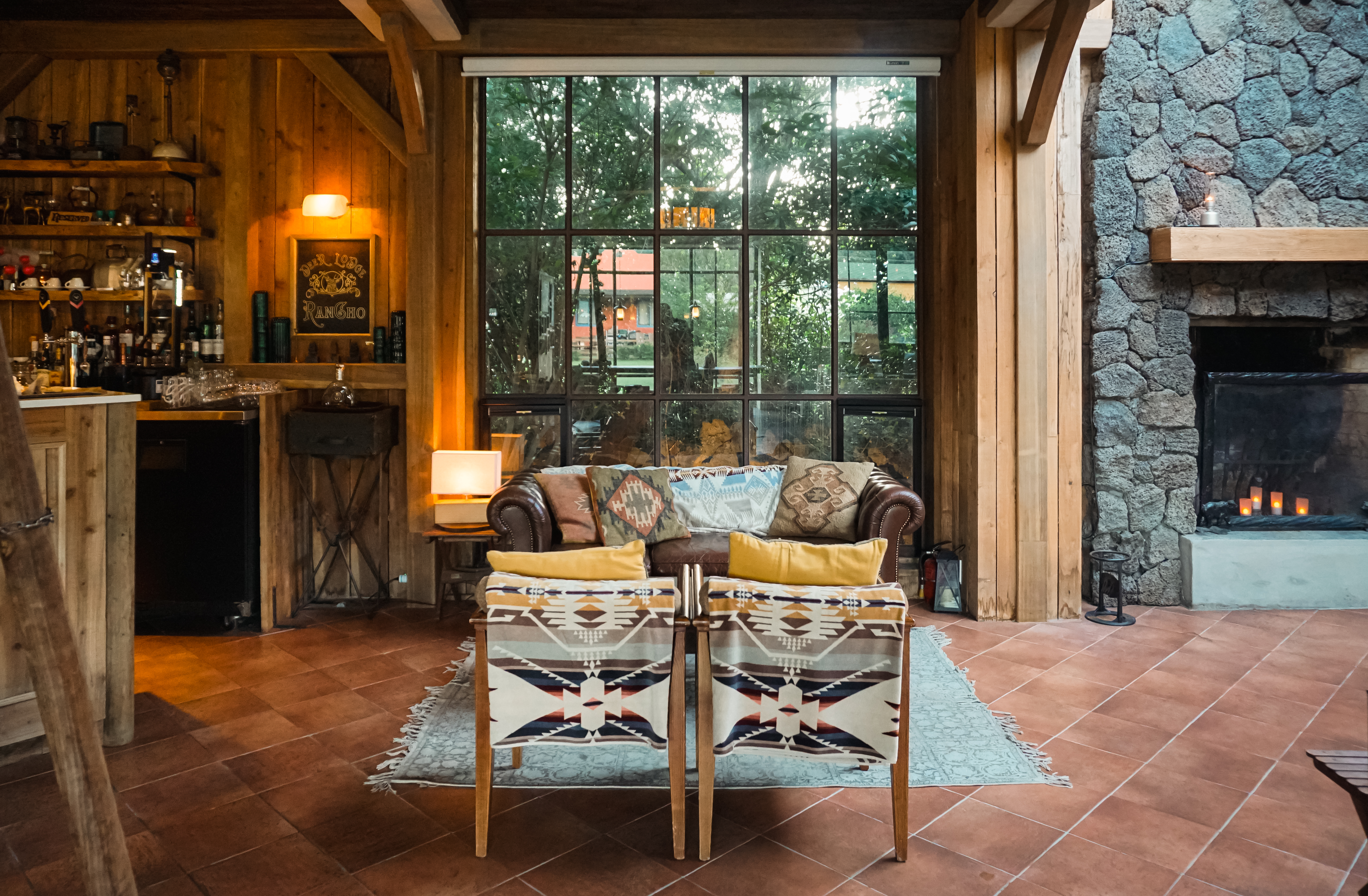 제주 친봉산장 내부는 마치 서부영화나 혹은 리조트의 내부를 보는 것 같은 고풍스러운 인테리어를 하고 있었습니다. 인테리어가 워낙 좋아서 카메라 앵글을 두는 곳마다 작품이(?) 되는 느낌이었습니다. 물론 저는 다음일정이 있어서 대충 사진만 담고 나왔는데, 조금 더 여유 있게 방문한다면 멋진 사진을 담을 수 있을 것 같은 장소였습니다.
