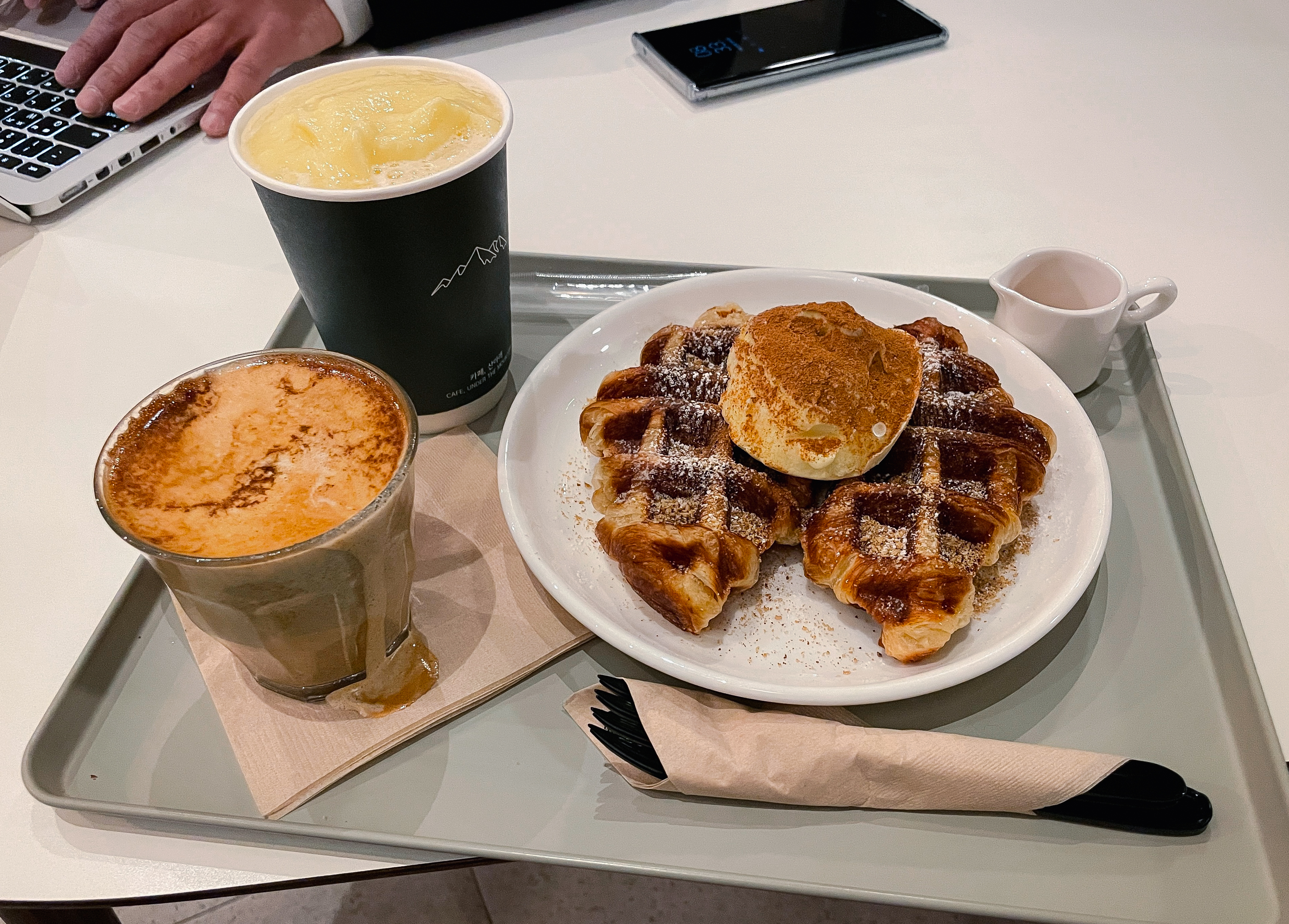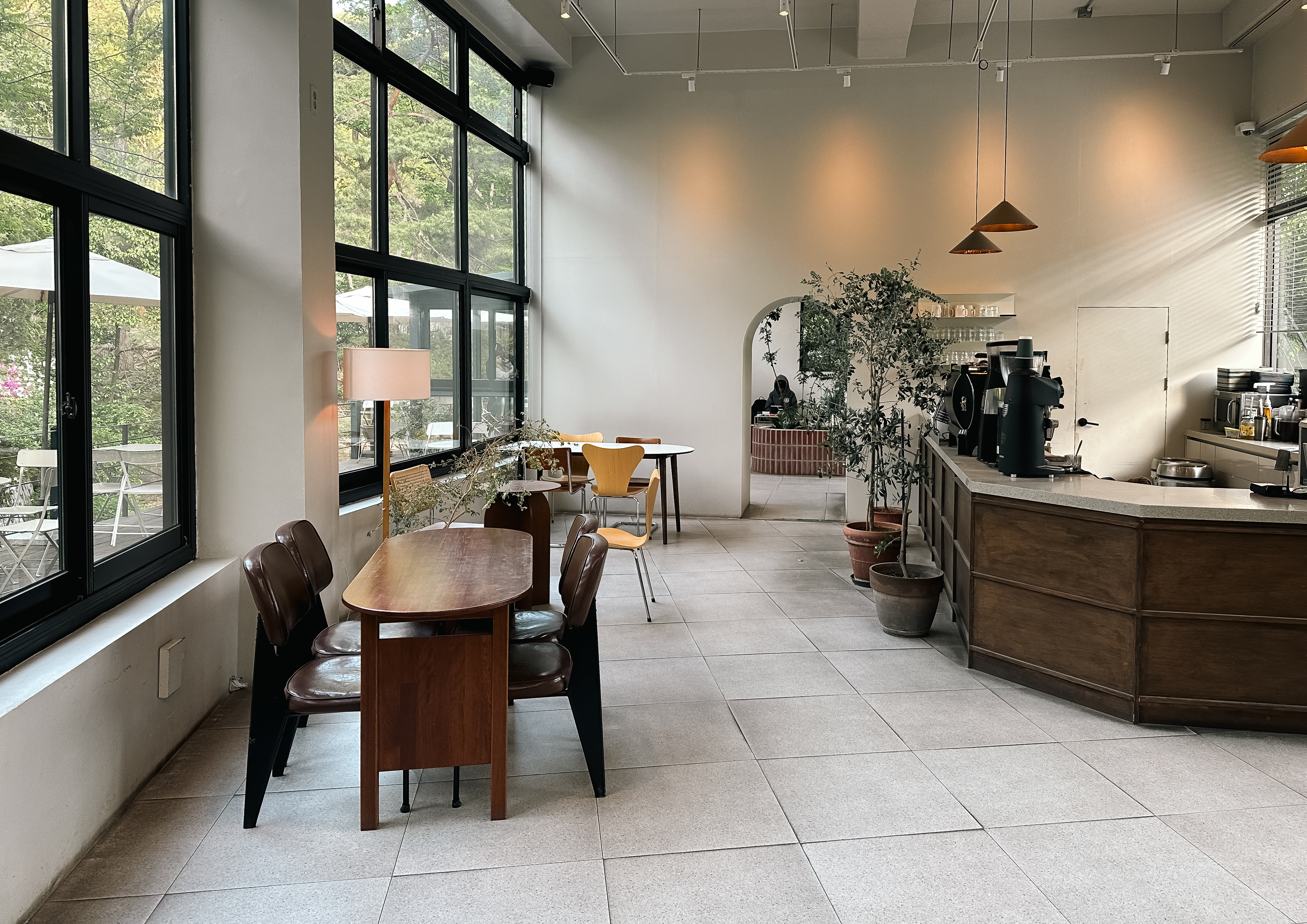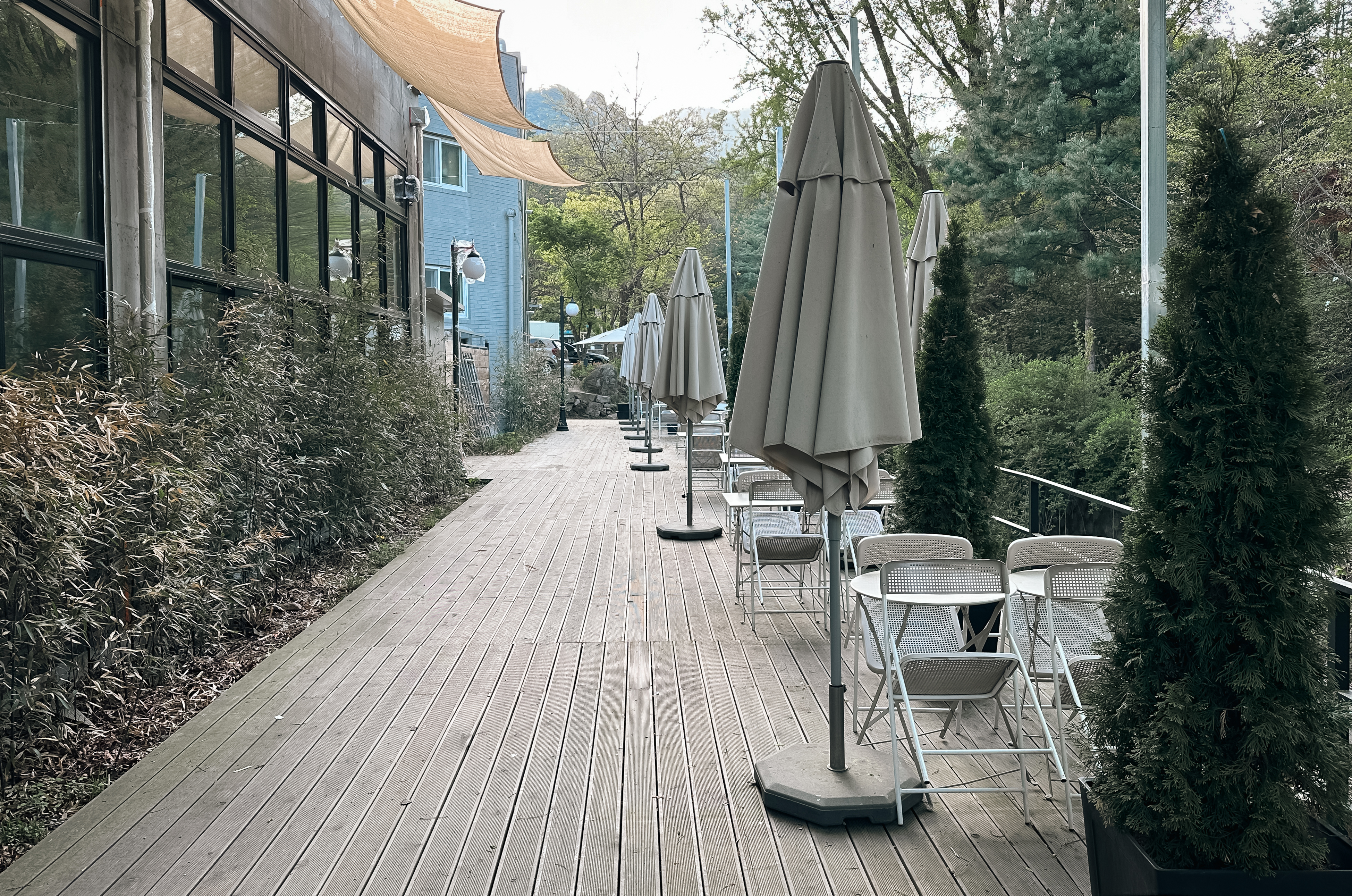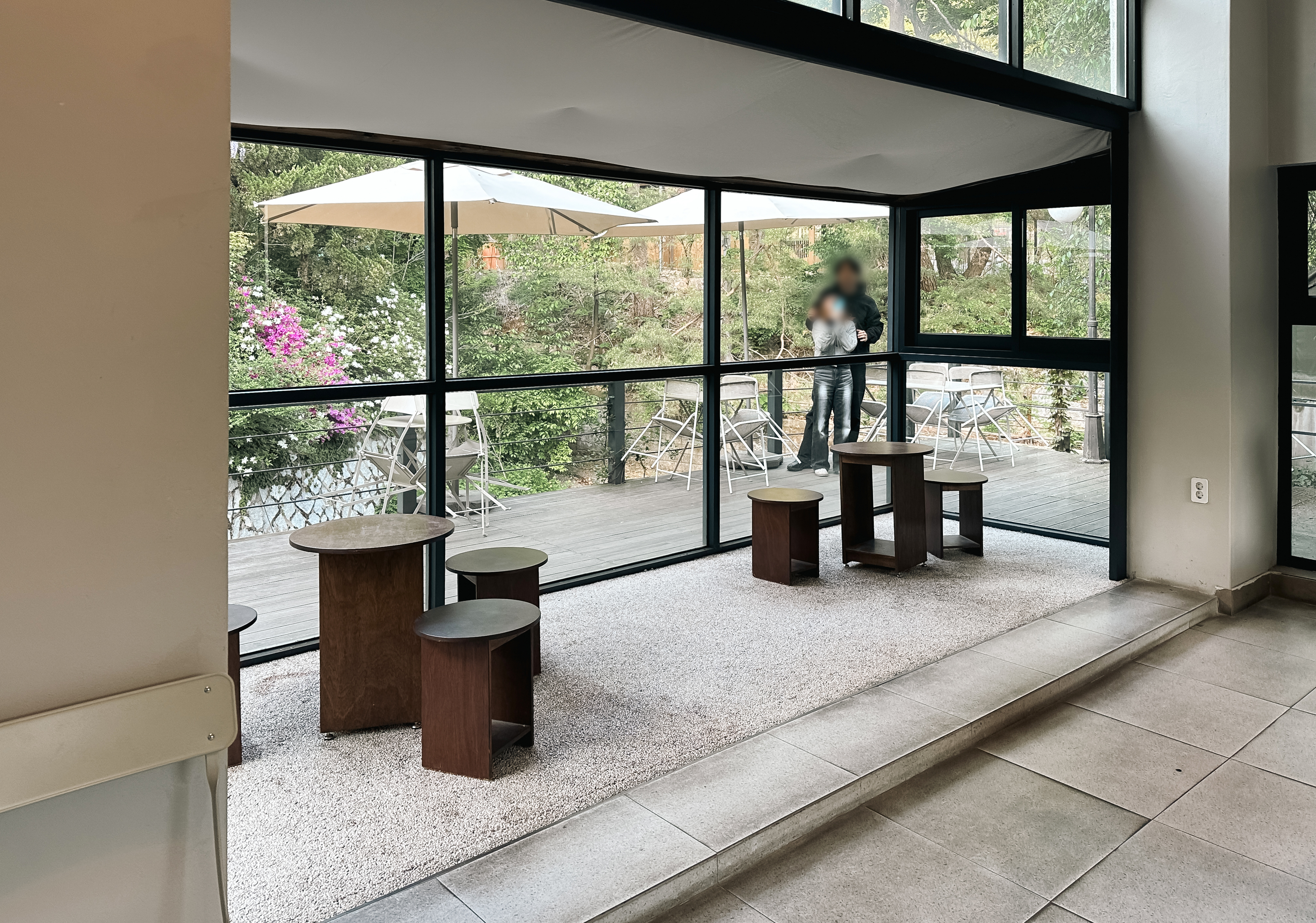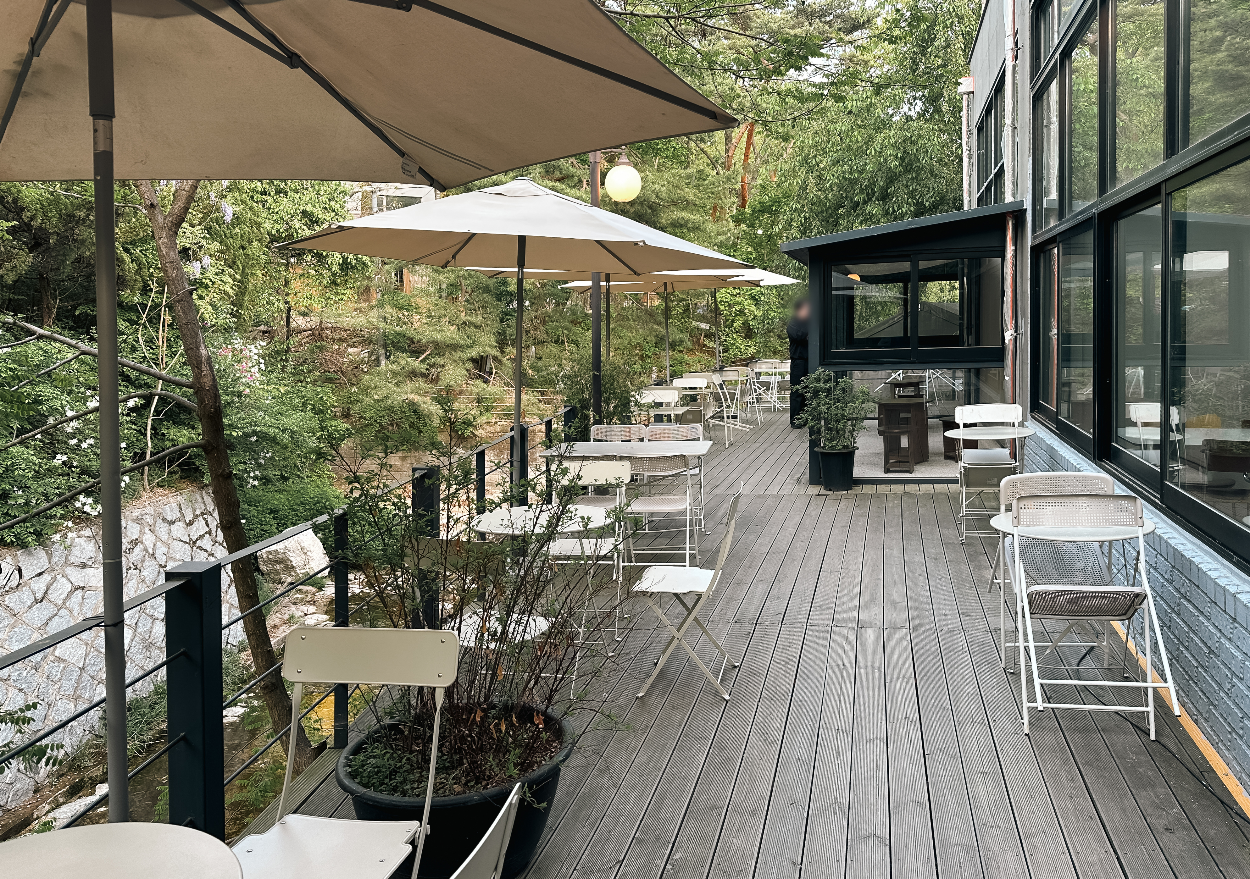 계곡뷰 카페라고 하지만, 지방의 계곡처럼 물이 많은 것은 아니고, 그냥 물이 흐른다는 느낌(?). 여름에는 더워서 나가기가 좀 망설여지는데, 요즘같이 선선한 날씨에는 바깥에서 커피를 마시는 것도 괜찮은 것 같더라고요.