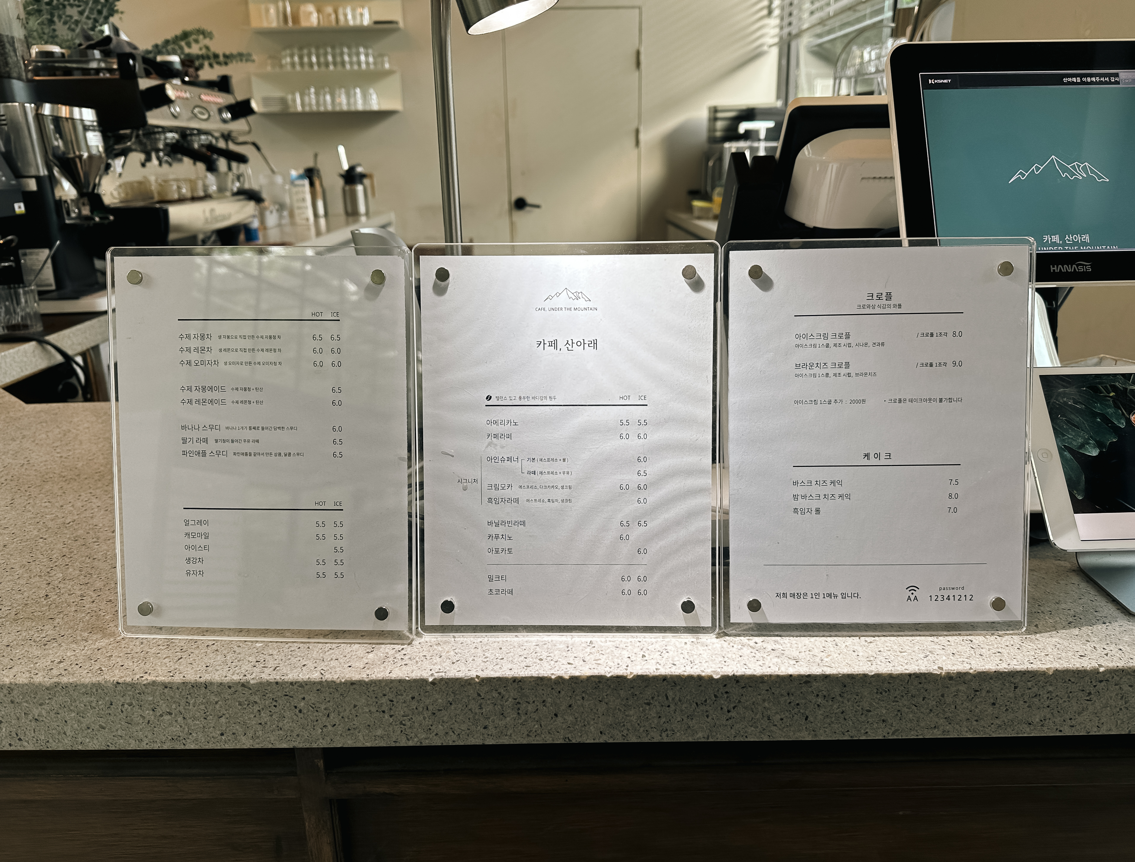 우이동 카페 산아래 카페의 메뉴는 위와 같이 제공되는데, 커피맛은 무난한 편이었습니다. 사실, 저를 비롯한 많은 분들이 분위기 좋은 카페에서 사진을 찍고자 하는 의도가 더 크다고 생각하기 때문에 이 부분은 간략하게 넘어가겠습니다.