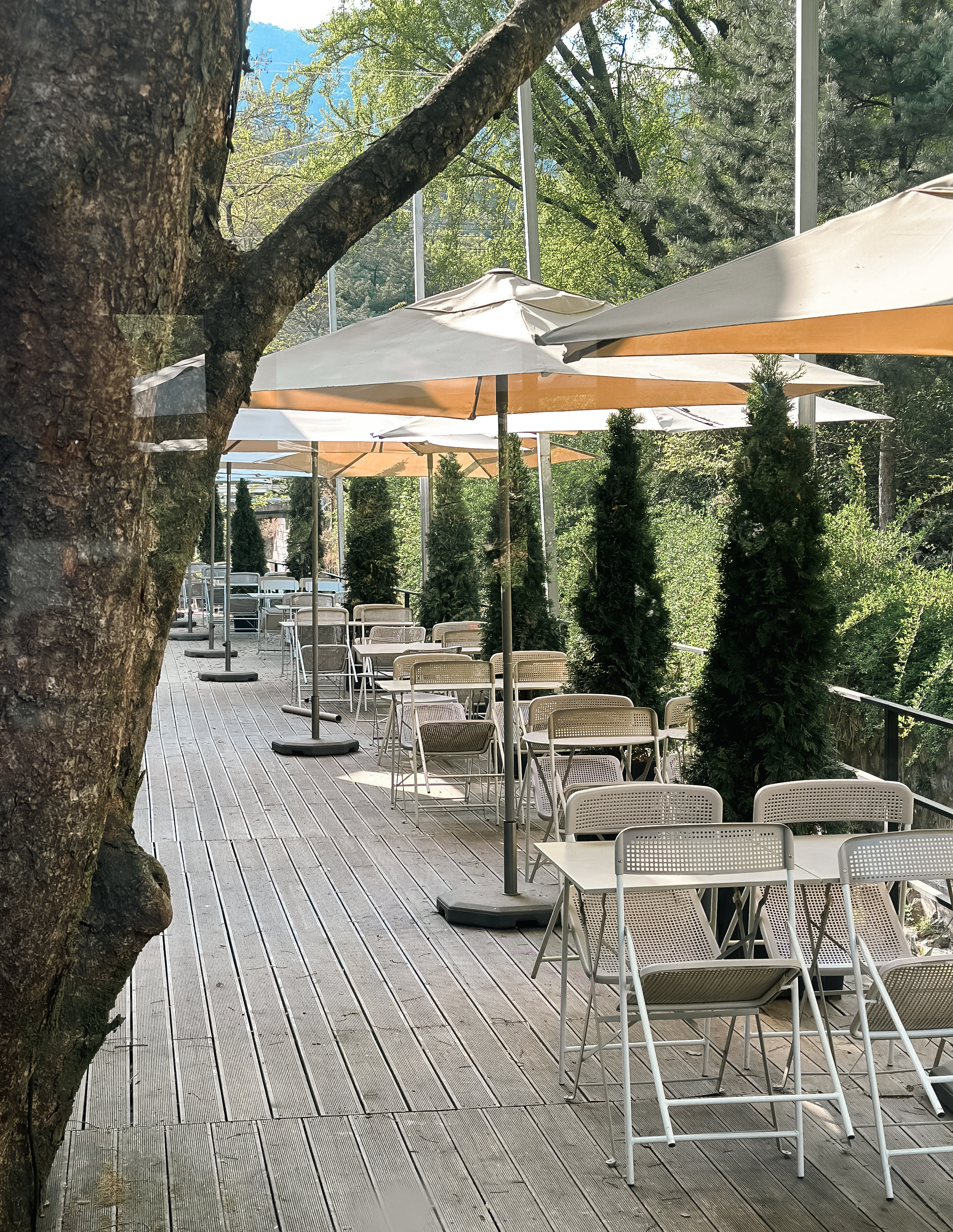 계곡뷰 카페라고 하지만, 지방의 계곡처럼 물이 많은 것은 아니고, 그냥 물이 흐른다는 느낌(?). 여름에는 더워서 나가기가 좀 망설여지는데, 요즘같이 선선한 날씨에는 바깥에서 커피를 마시는 것도 괜찮은 것 같더라고요.