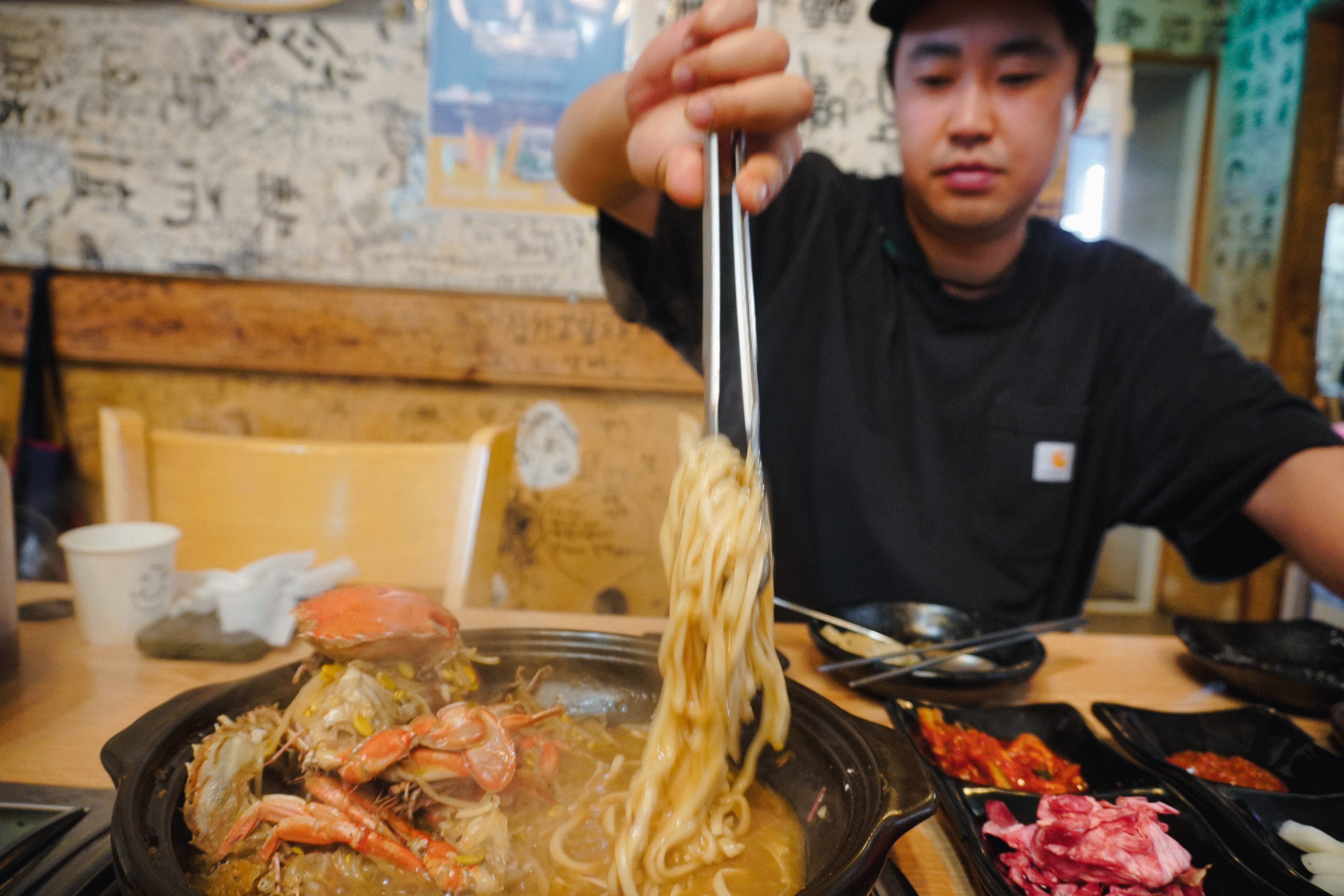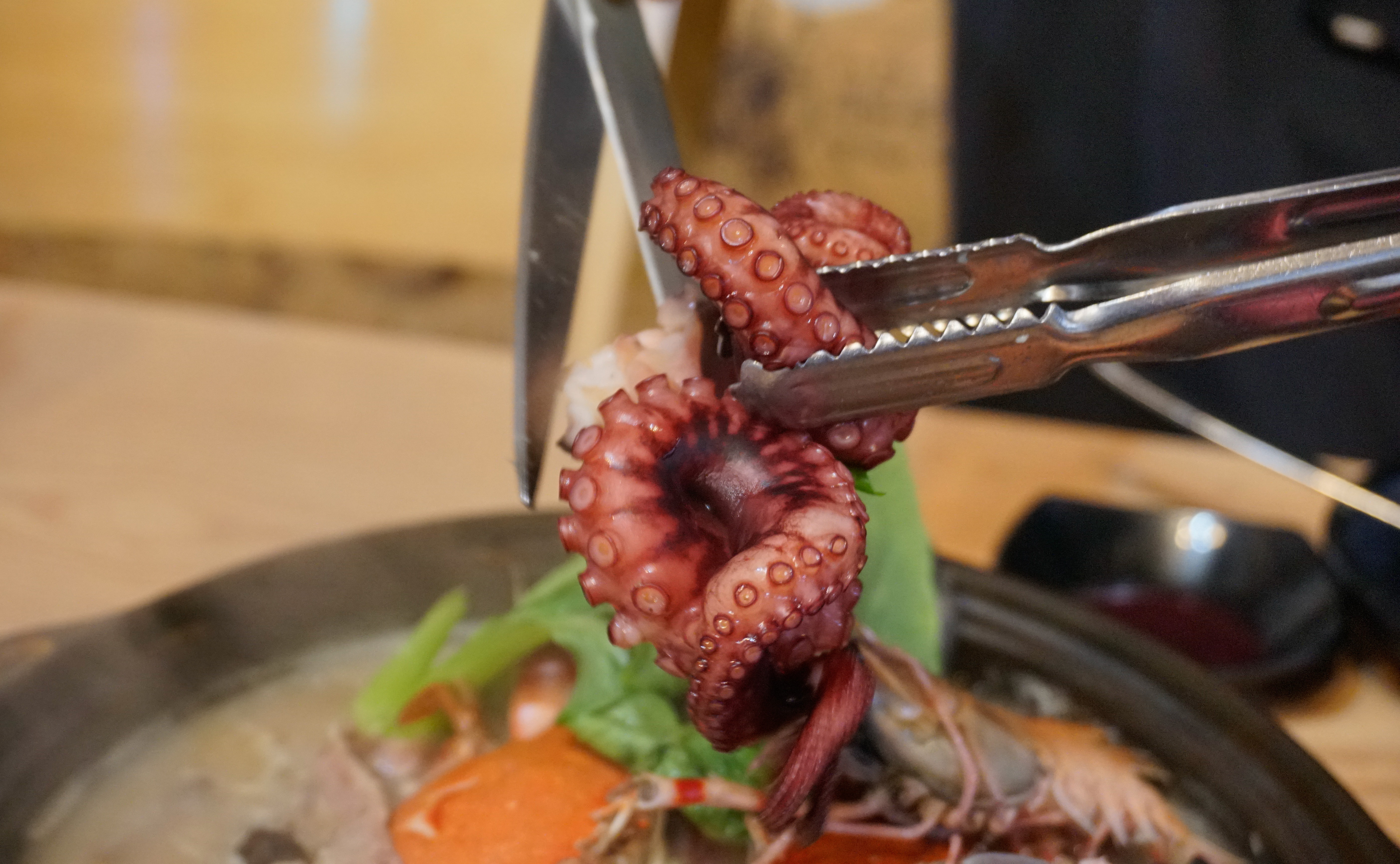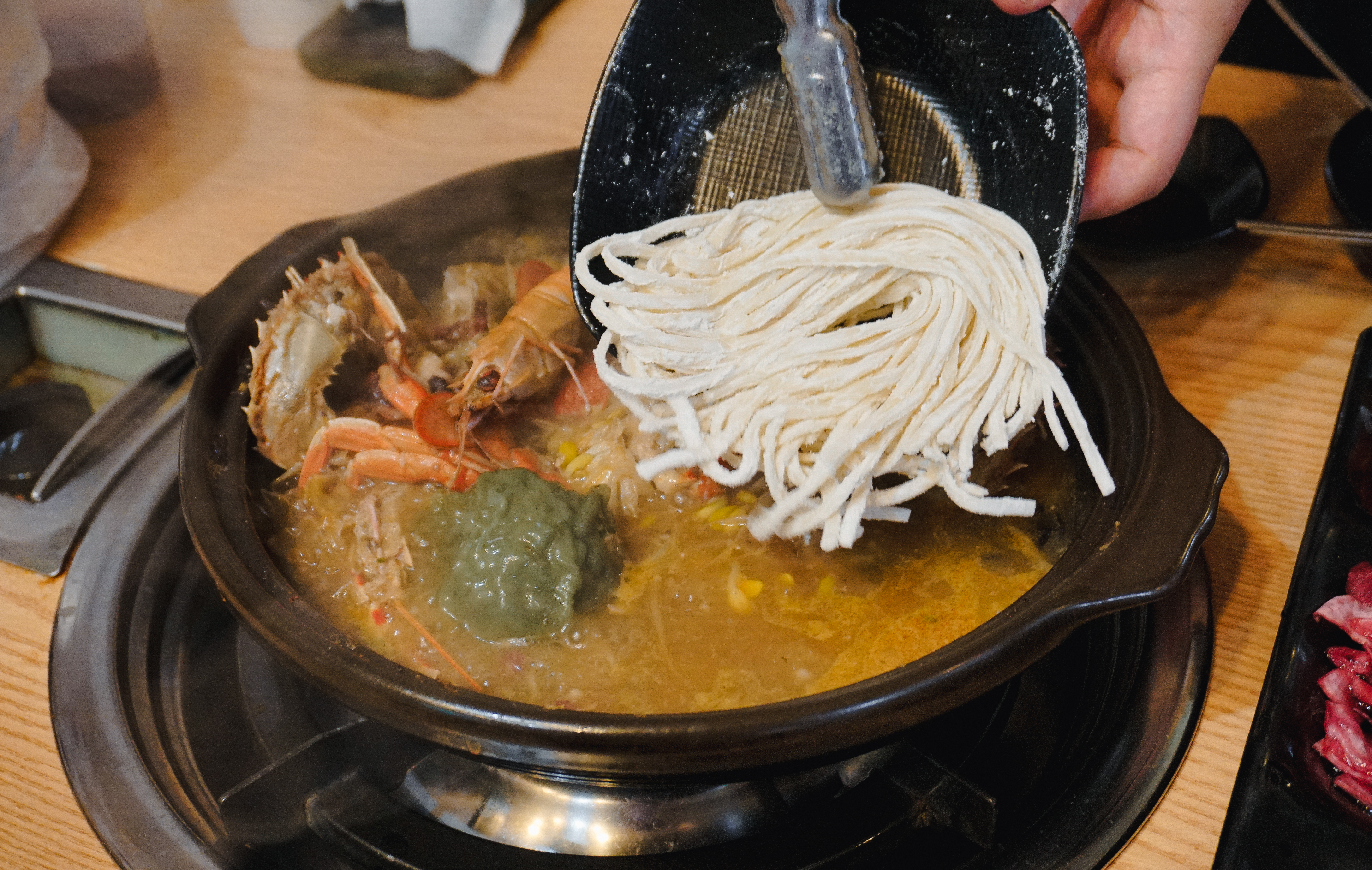 마지막 ➐ 칼국수(육수를 조금 더 넣고 칼국수 면을 끓여주었습니다). 해산물과 고기로 진하게 우려낸 육수에 칼국수까지 넣어 먹으니 배가 터질 것 같았습니다.