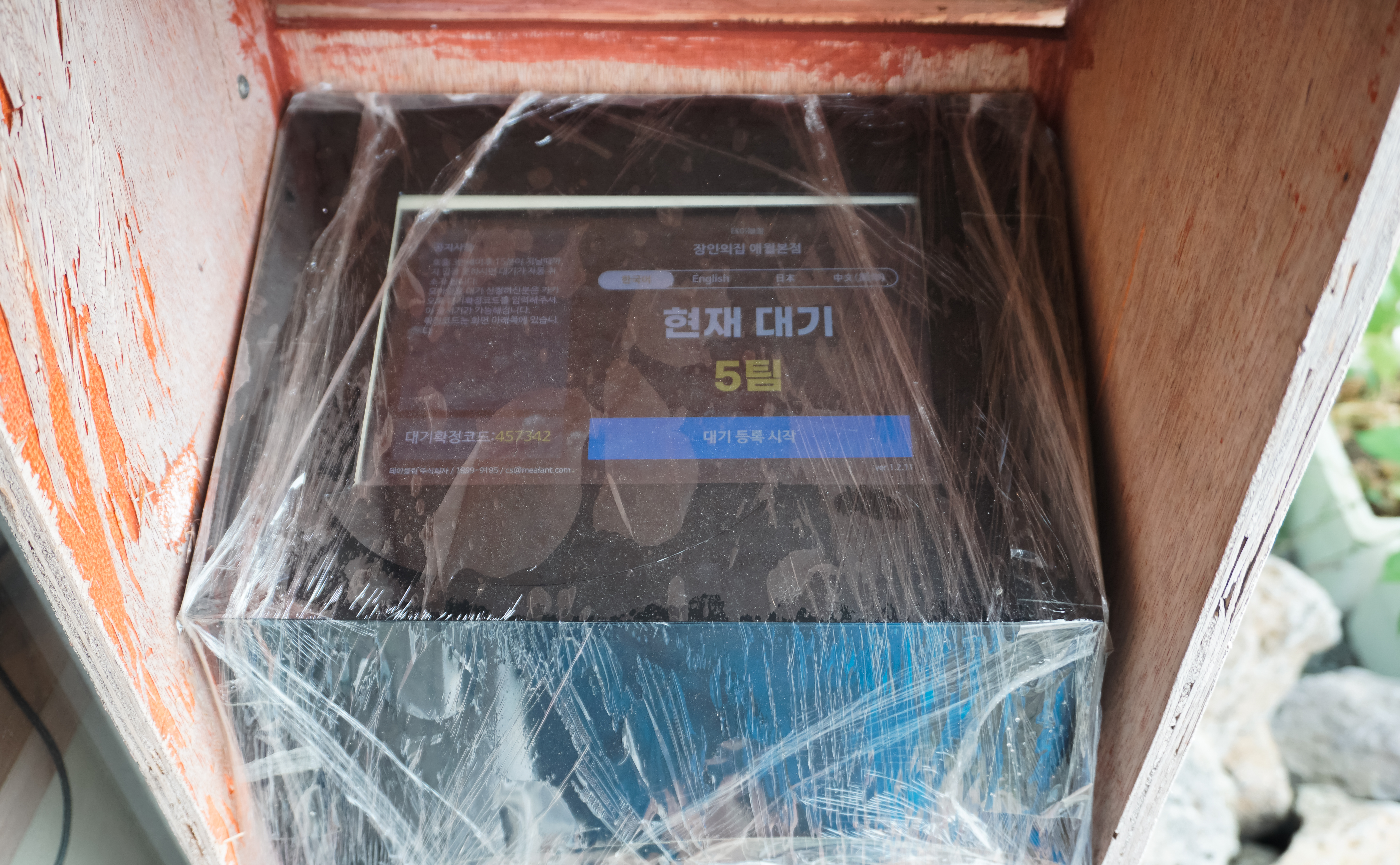 장인의집은 손님이 항상 많기때문에 가게 앞에있는 예약패드(테이블링)를 통해 대기를 등록해야 했습니다. 메신저인 카카오톡(KakaoTalk)을 통해 알림이 오면 가게 안으로 들어가 식사하는 시스템이었습니다. 저도 예약을 걸어두고 밖에서 사진도 찍고 기다리다가 가게 안으로 입장할 수 있었습니다.