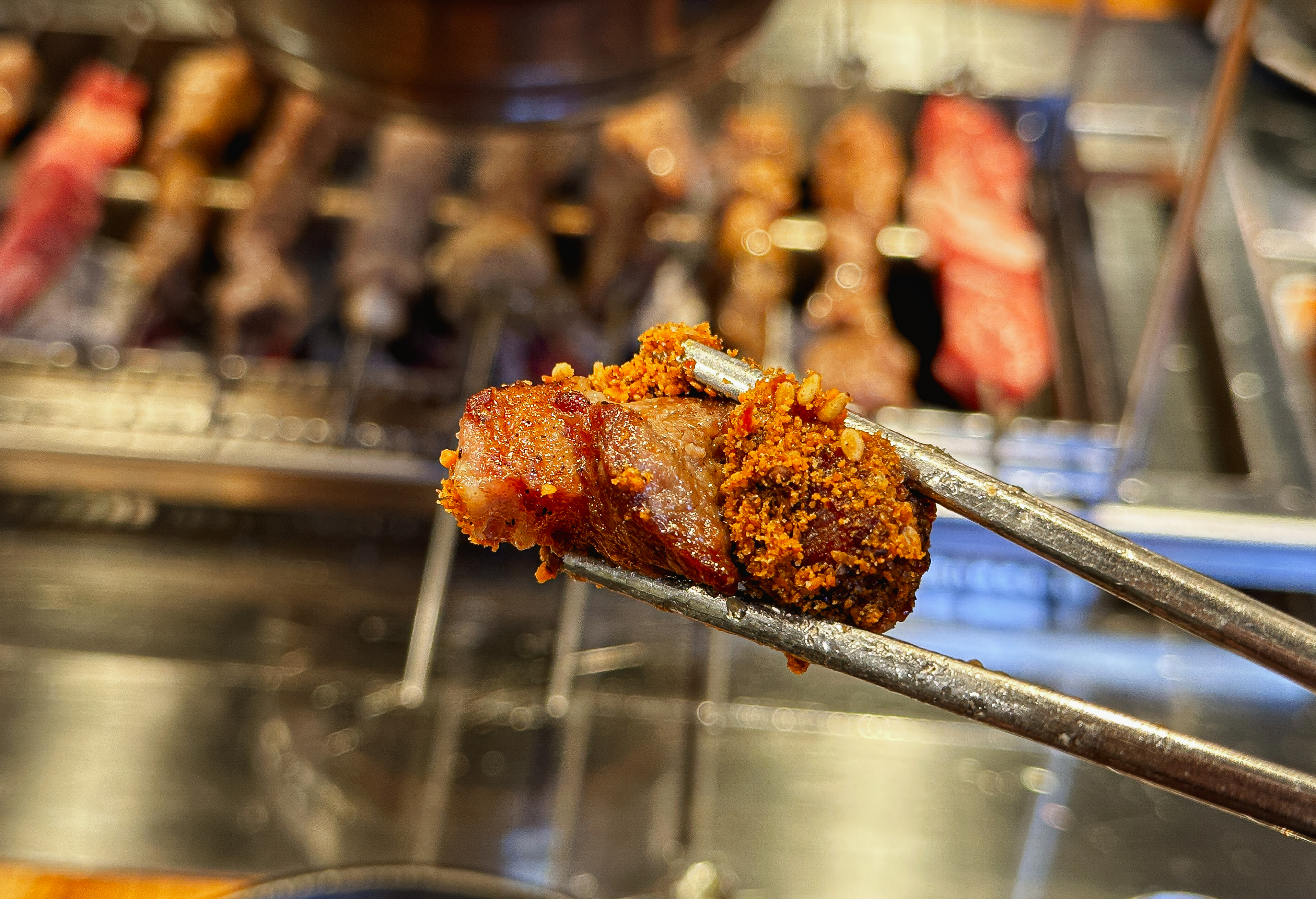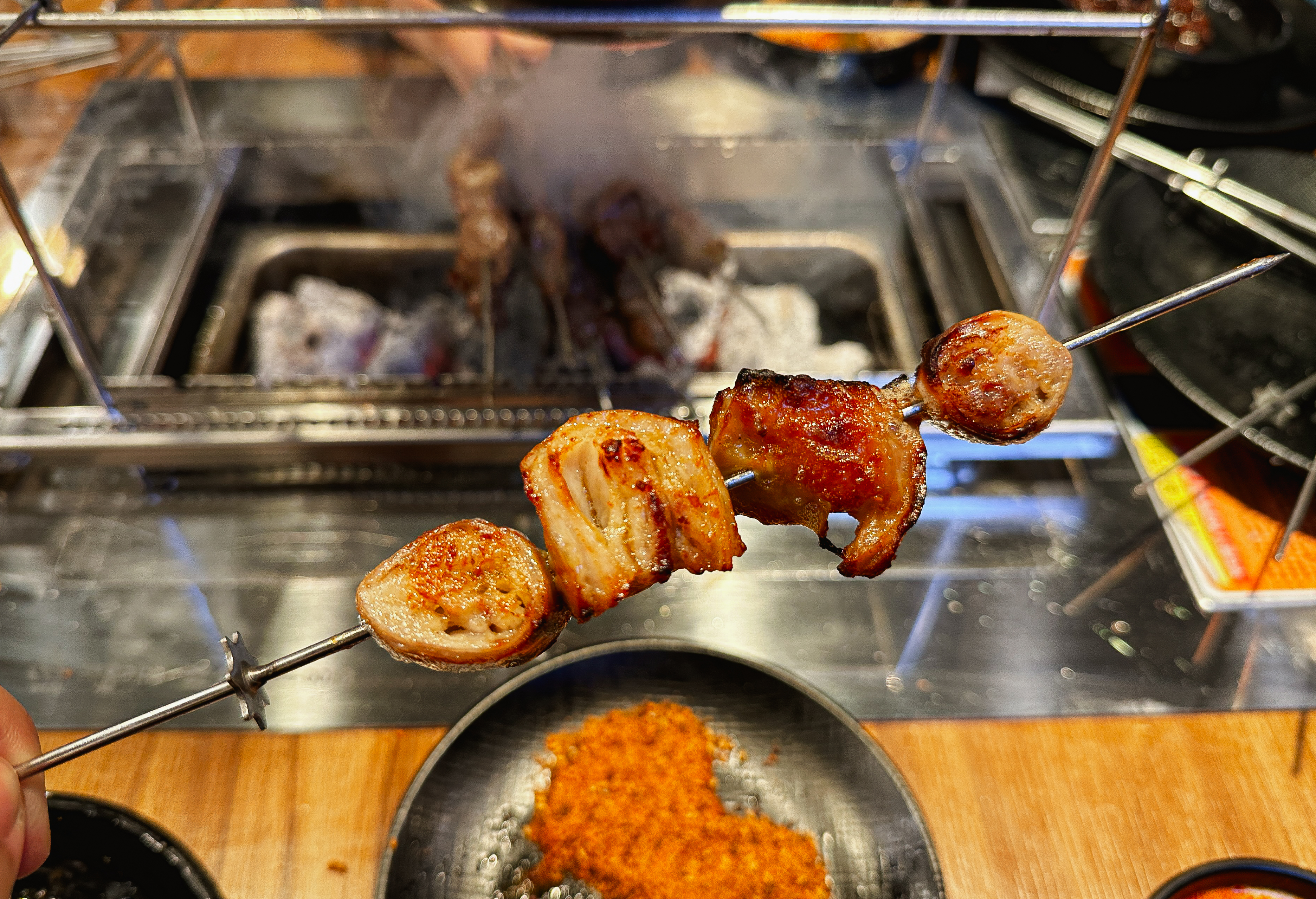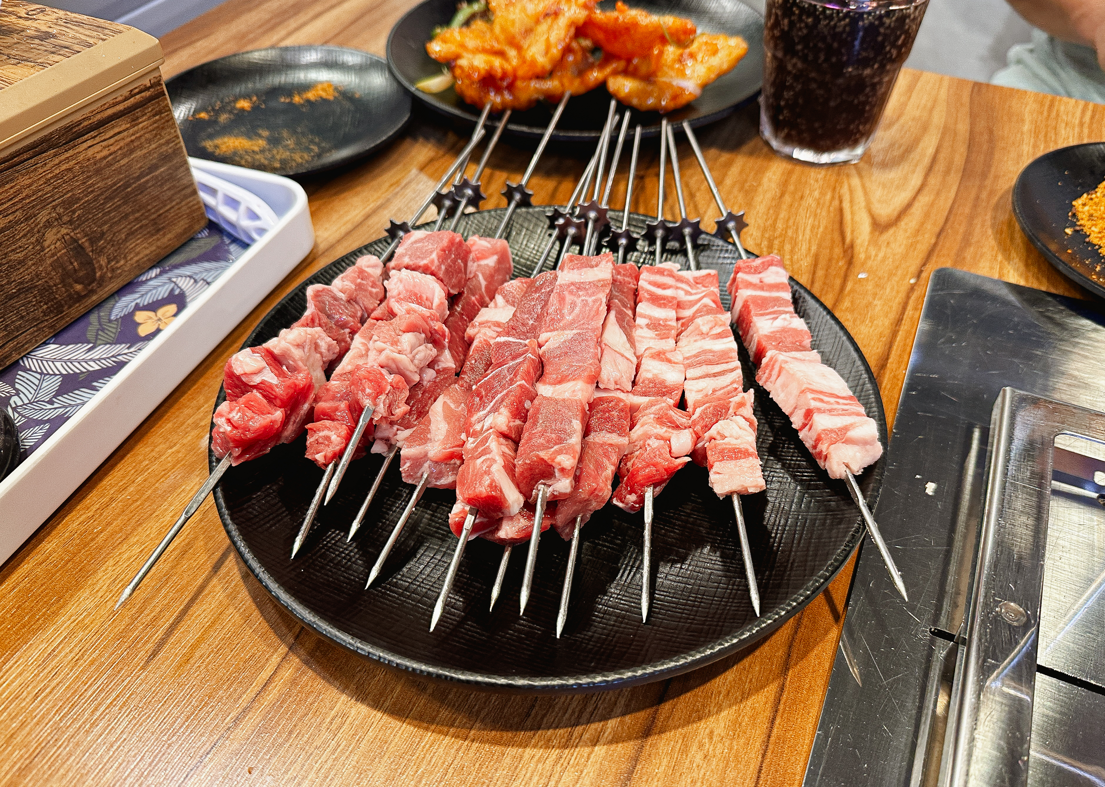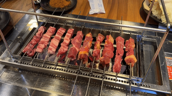 서산 천향양꼬치뷔페의 양꼬치는 톱니바퀴를 이용해 자동으로 돌려가며 양꼬치가 구워지도록 하고 있었는데, 생각보다 바깥쪽에 위치한 양꼬치는 잘 안 익어서 불편하더라고요. 숯불을 바깥쪽까지 잘 채워주셨다면 좀 더 좋았을 텐데 말이죠.