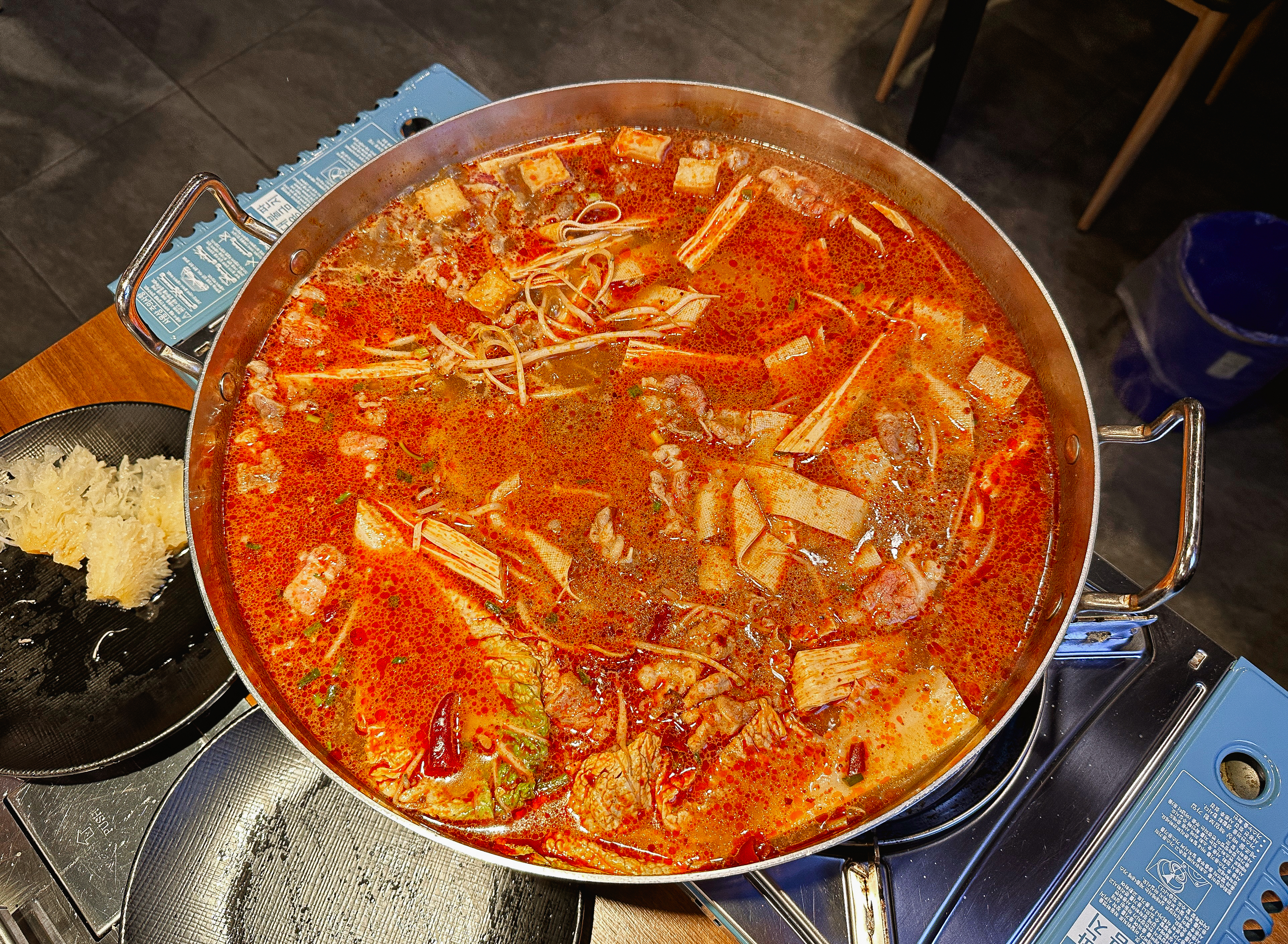 냉장고에서 골라온 양꼬치와 마라탕 재료를 불 위에 올려 익혀주었습니다. 쯔란과 큐민을 잔뜩 찍어서 먹었는데, 양꼬치가 약간 기름지지만 맛은 있어서 폭풍흡입 했던 것 같습니다. 마라탕도 마찬가지로 먹을만했습니다.