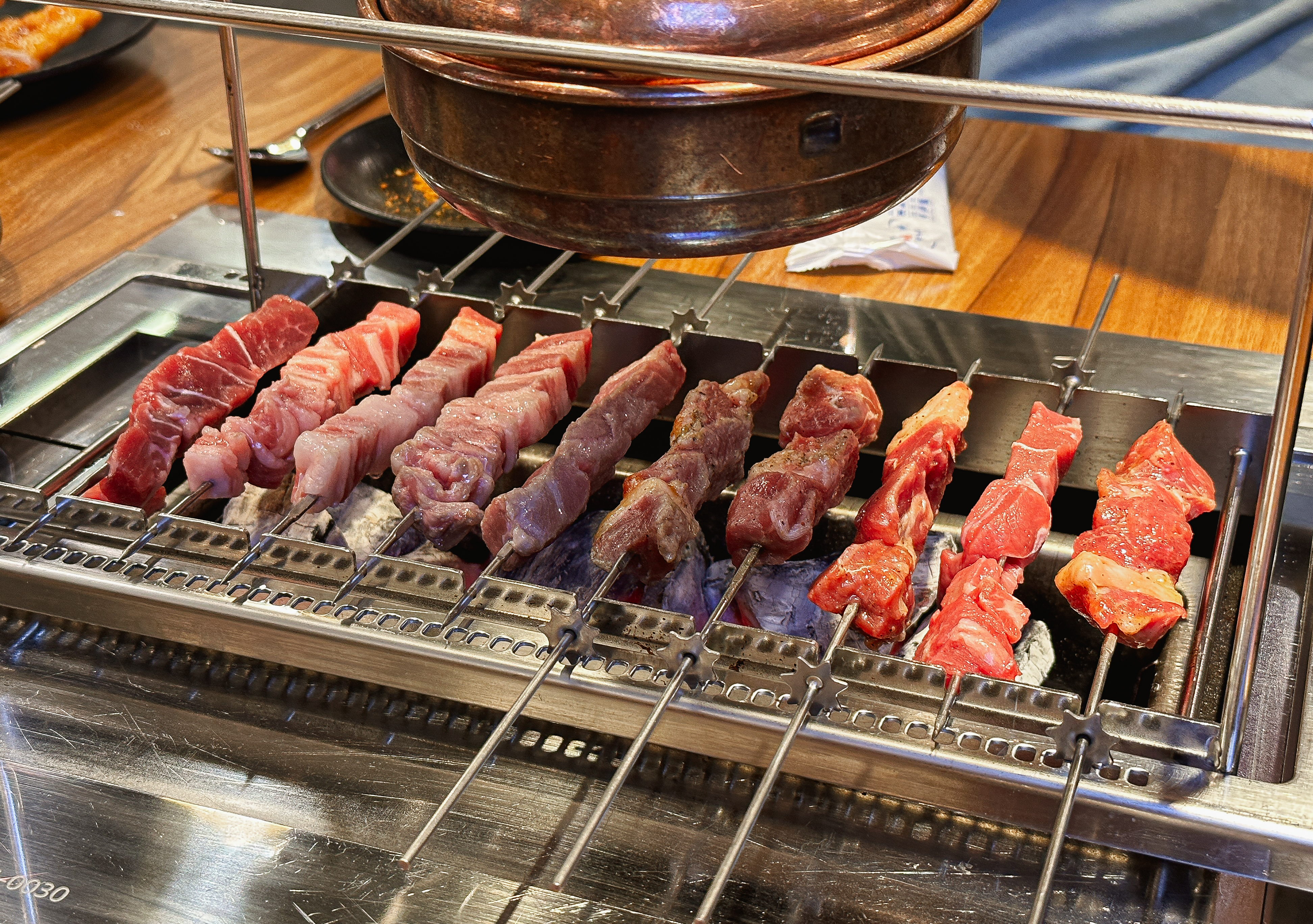 서산 천향양꼬치뷔페의 양꼬치는 톱니바퀴를 이용해 자동으로 돌려가며 양꼬치가 구워지도록 하고 있었는데, 생각보다 바깥쪽에 위치한 양꼬치는 잘 안 익어서 불편하더라고요. 숯불을 바깥쪽까지 잘 채워주셨다면 좀 더 좋았을 텐데 말이죠.