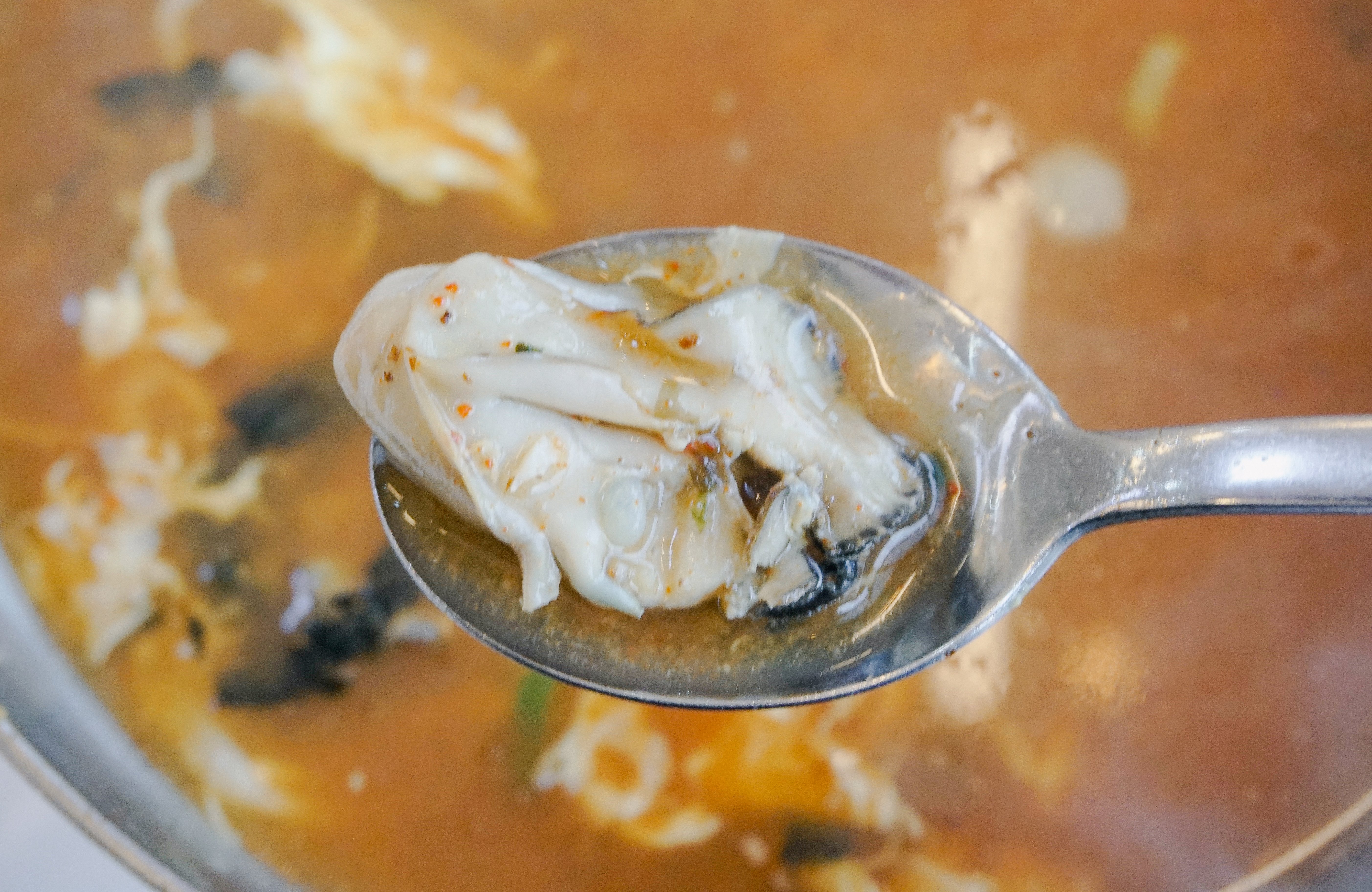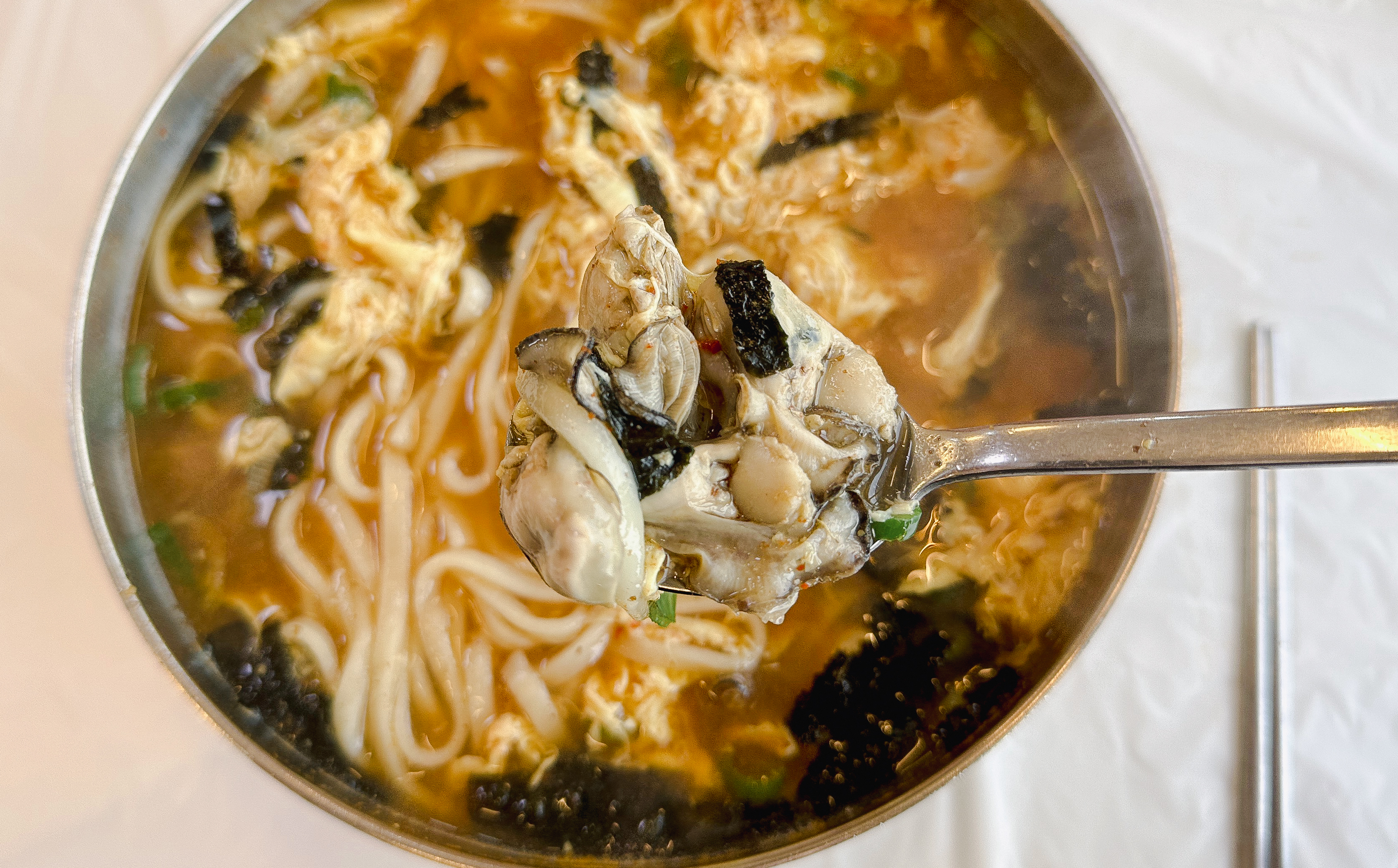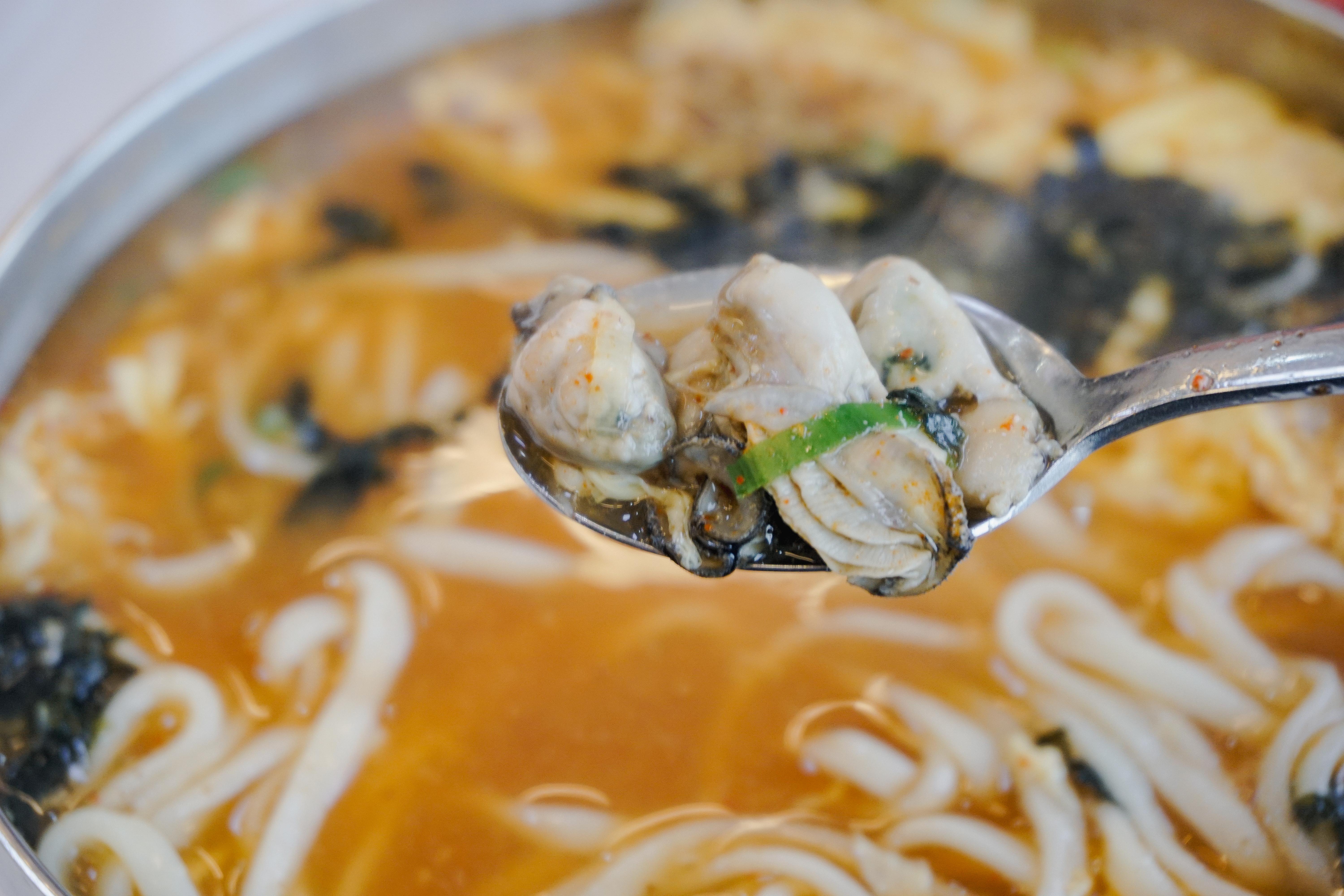 굴이 아직 엄청 실하다는 느낌을 주지는 않았는데, 적당한 크기로 먹기엔 좋았습니다. 먹다 보니 굴칼국수의 맛은 굴국밥보다는 묽은 느낌이어서 "조금 더 진하게(고소하게) 끓여내면 더 맛있었을 것 같은데..." 라는 생각이 들었습니다.