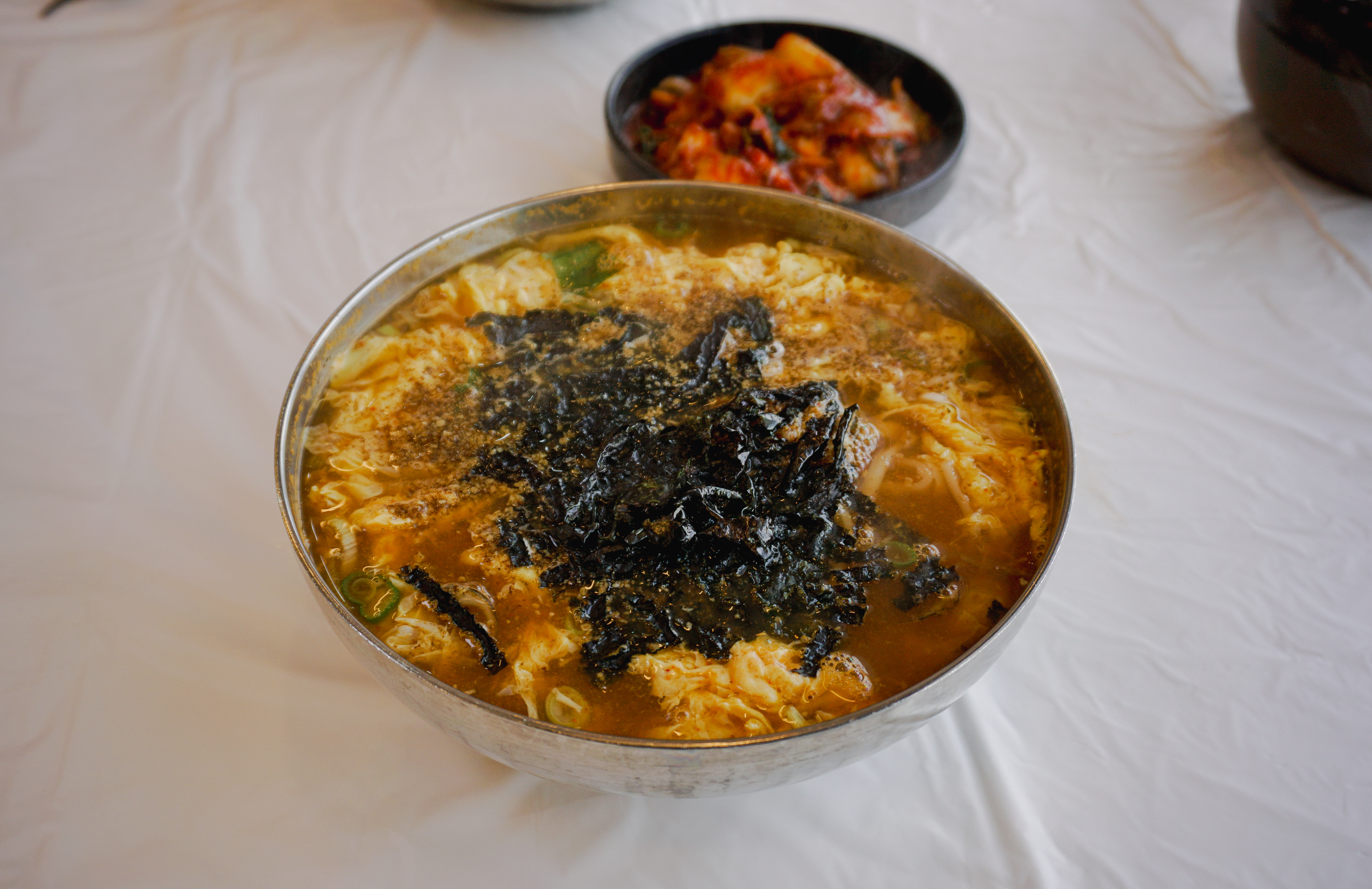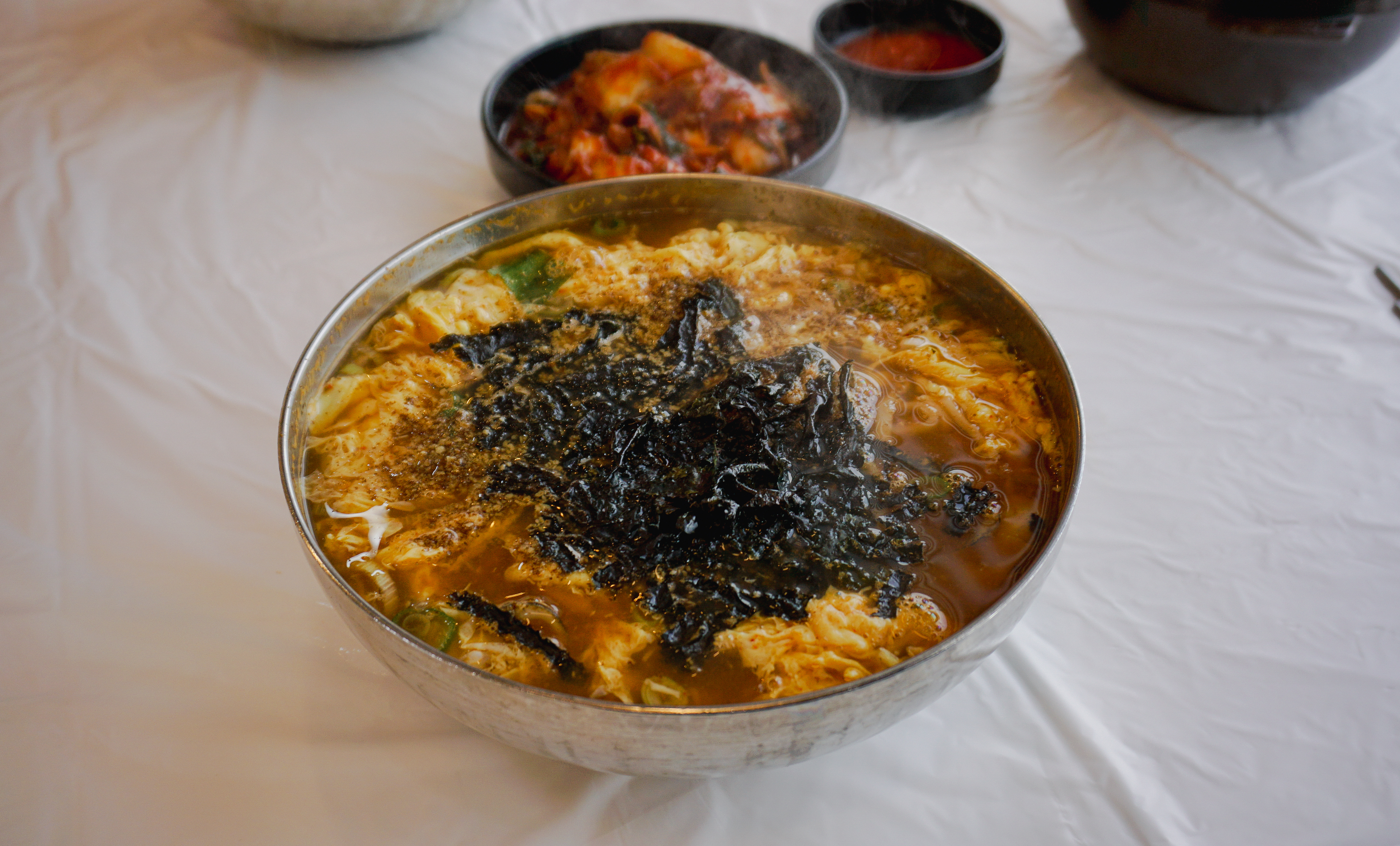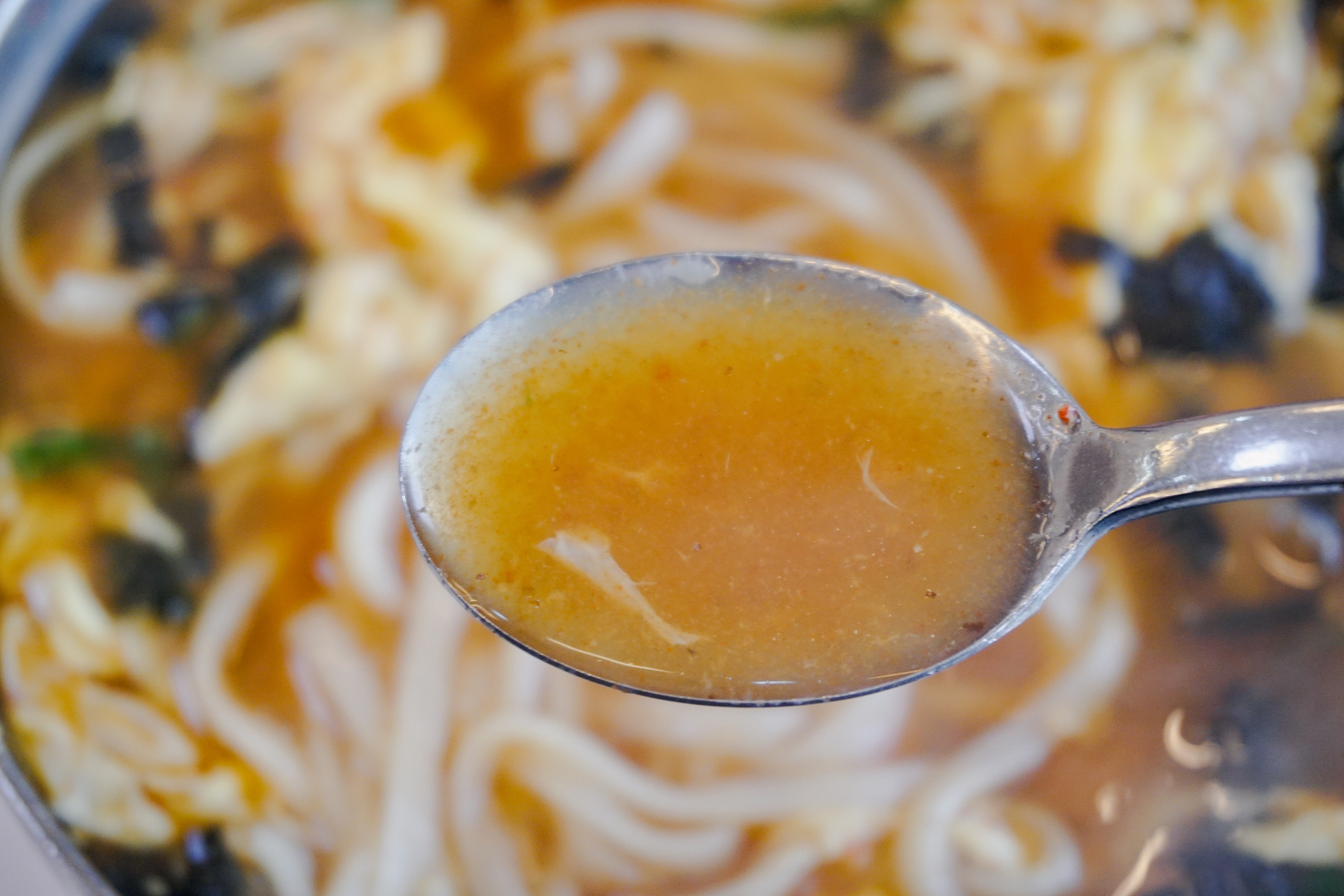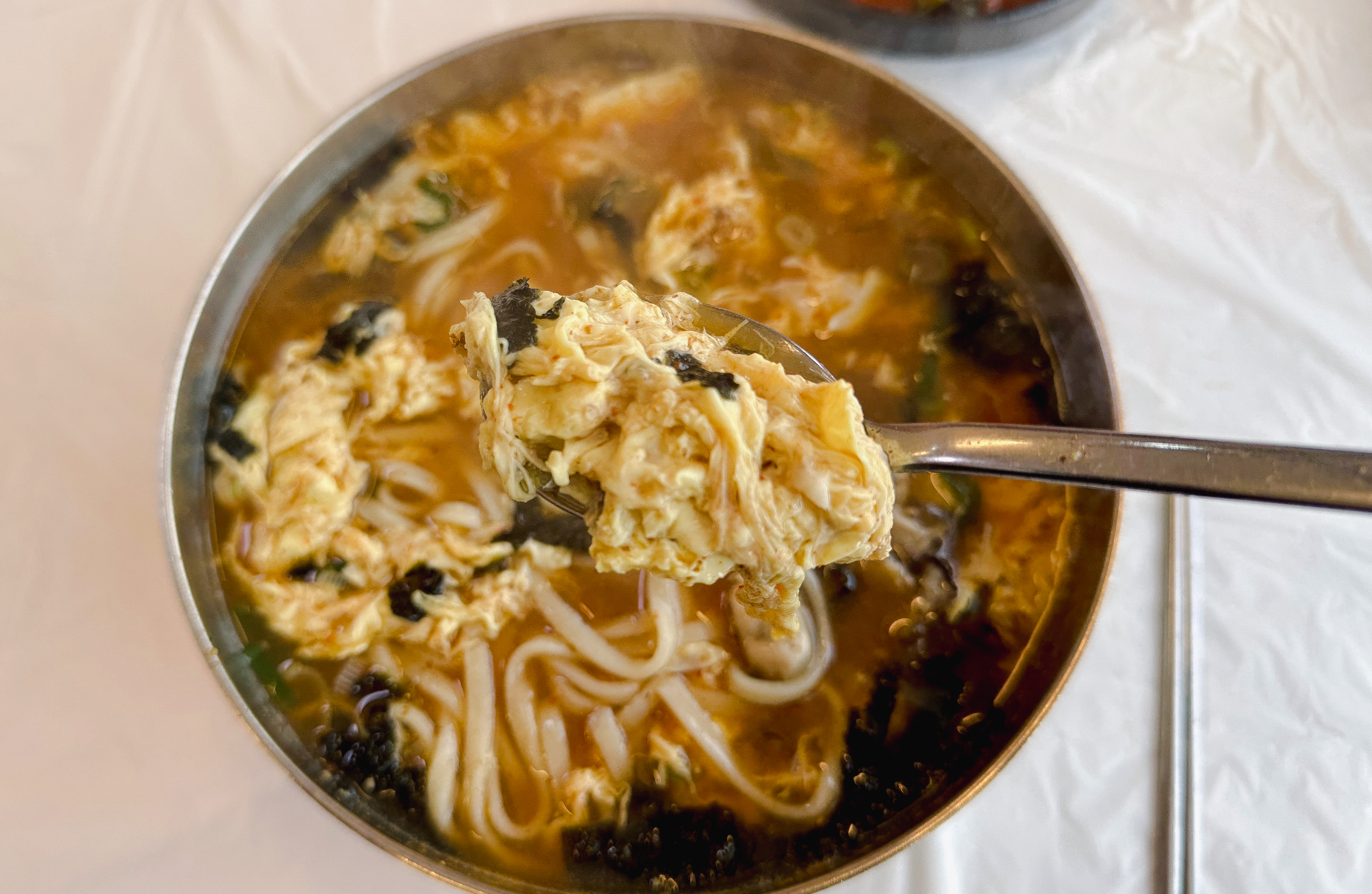 굴 칼국수의 국물은 잔치국수에 굴의 감칠맛이 첨가된 느낌이랄까요? 국물의 농도가 진하진 않았고, 적당히 시원한 느낌이 드는 정도였습니다. 김가루와 달걀물을 풀어서 더 잔치국수느낌이 많이 들었고, 굴은 겉보기엔 적은 듯하였으나, 바닥에 가라앉아 있어서 실제로 먹다 보면 꽤 많이 나오더라고요.