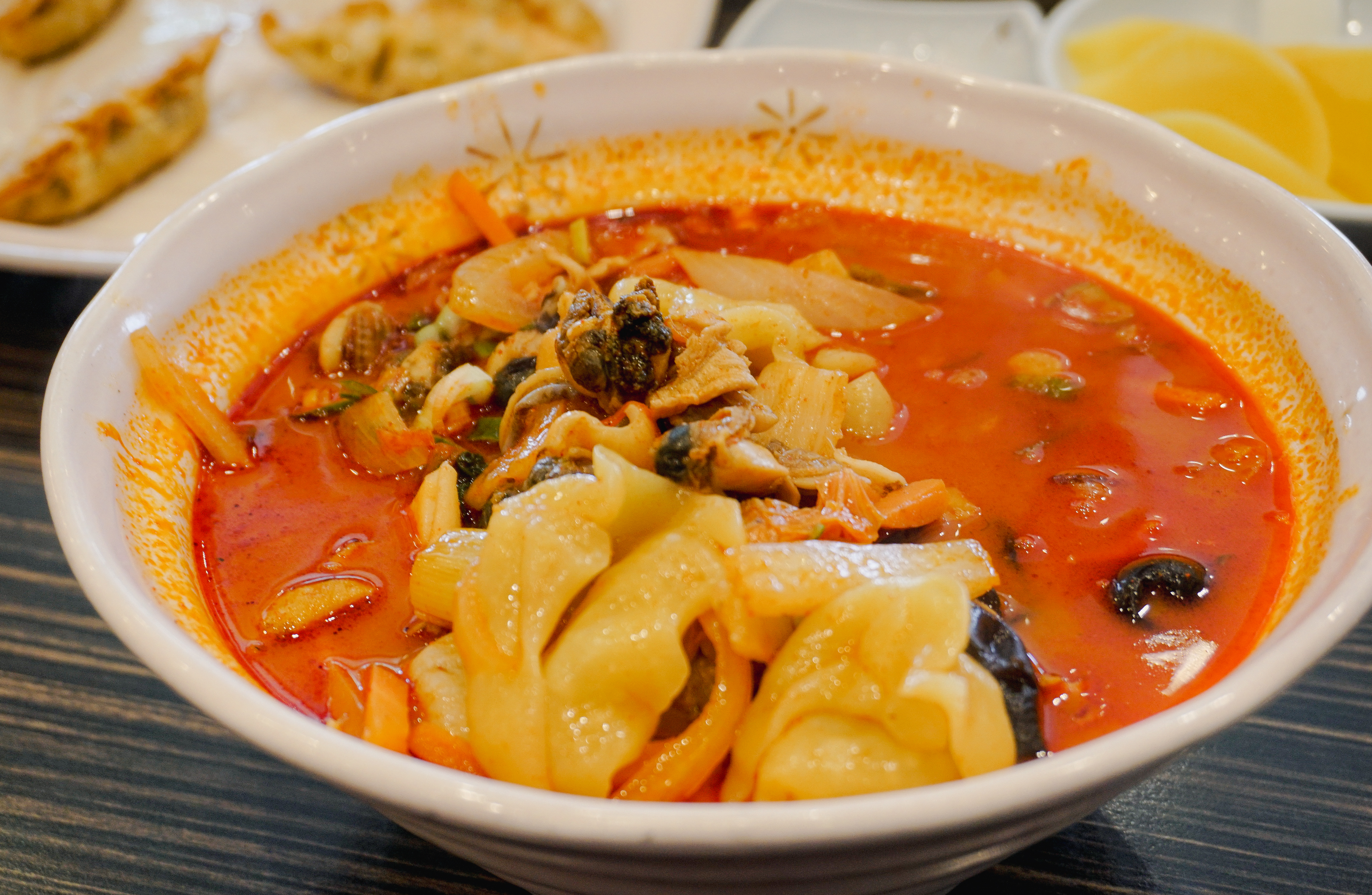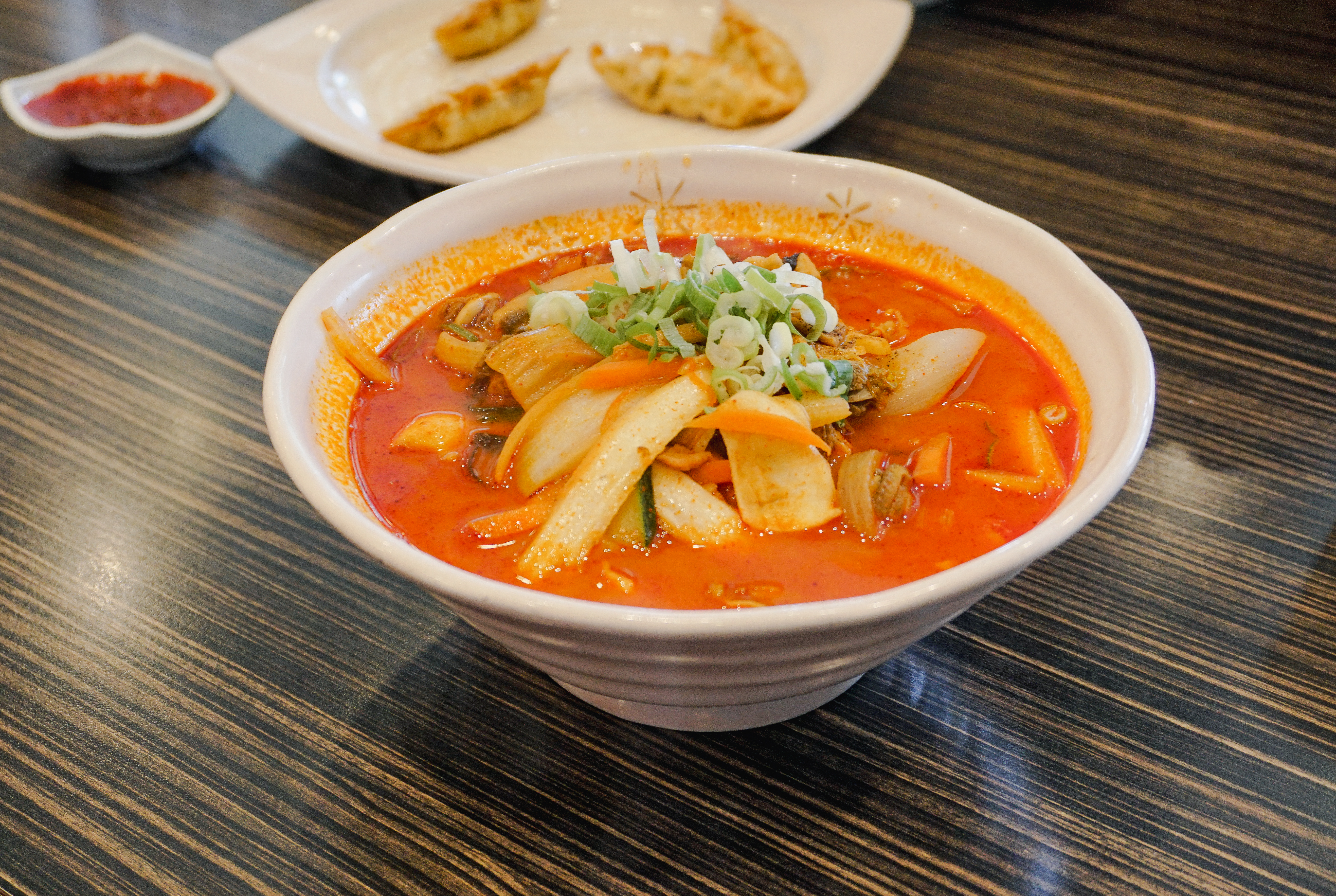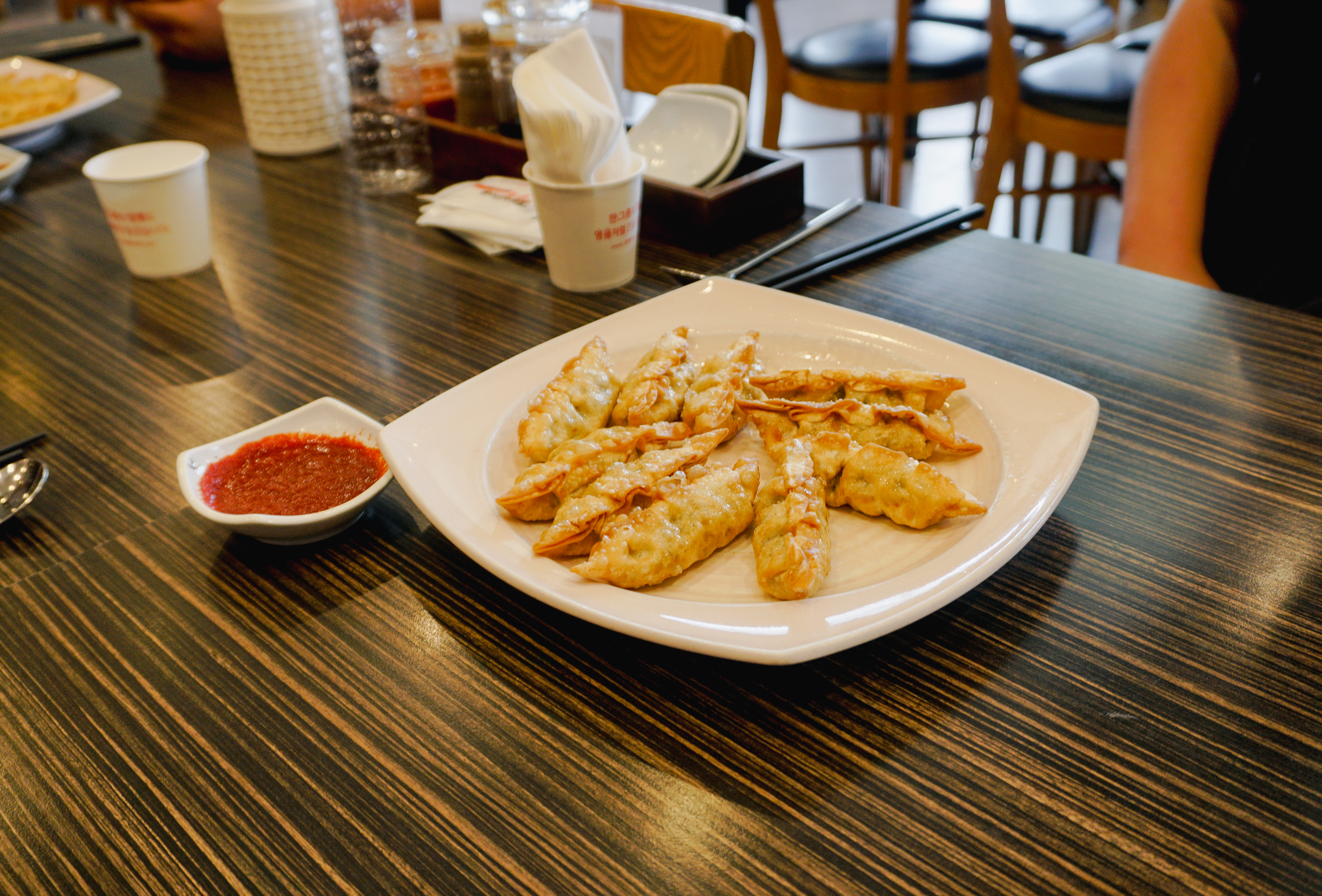 군만두는 얇고 긴 형태로 나왔는데, 갓 튀겨내 그런지 바삭하면서 맛있더라고요. 군만두 자체로도 간이 되어있지만, 고춧가루 팍팍 풀어놓은 간장에 찍어먹으면 또 별미죠.
